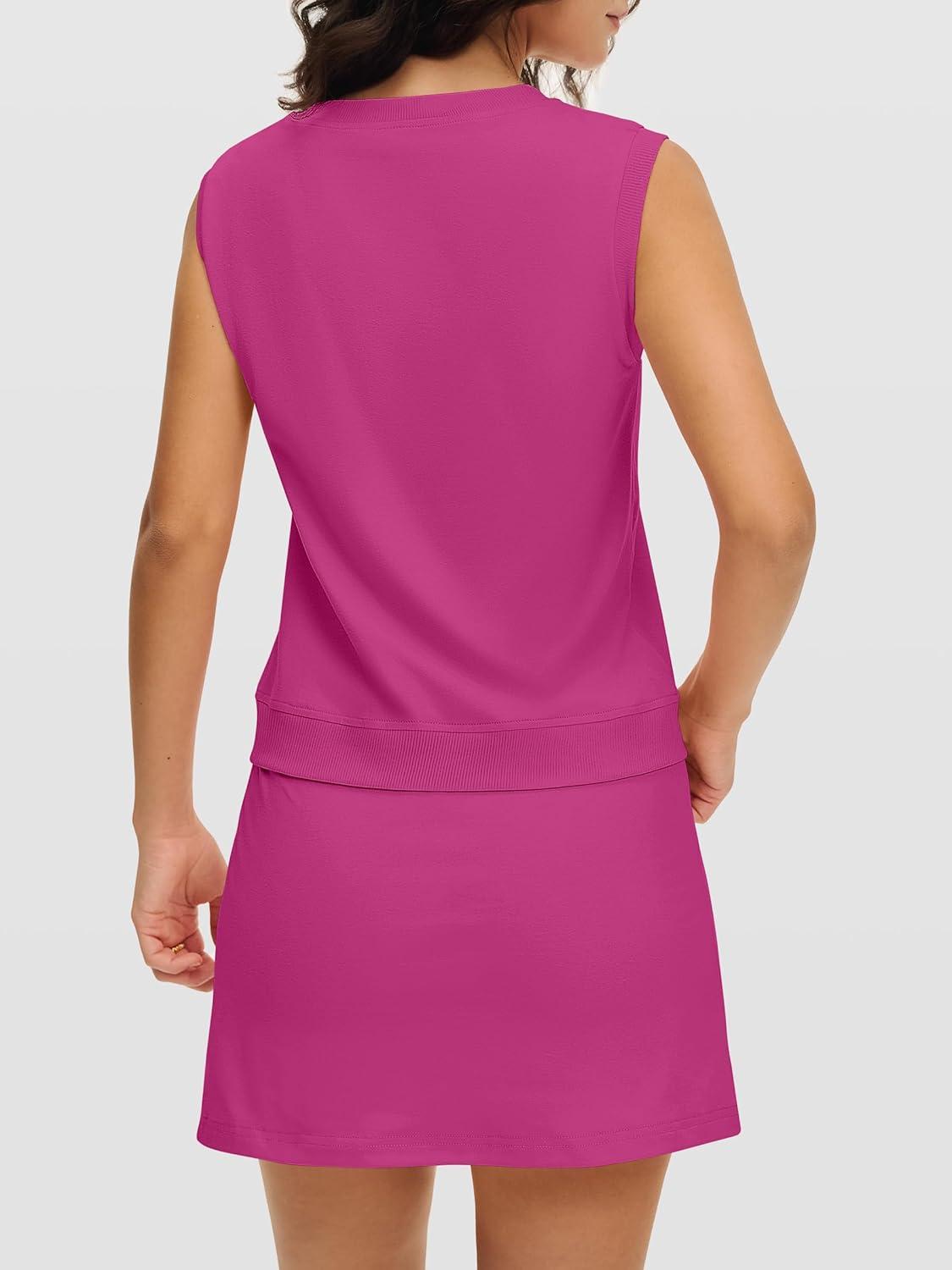 ANRABESS Women Two Piece Skirt Sets Summer Outfits Athletic Workout Tennis Lined Skort Short Set Travel Vacation Clothes(Hot Pink)