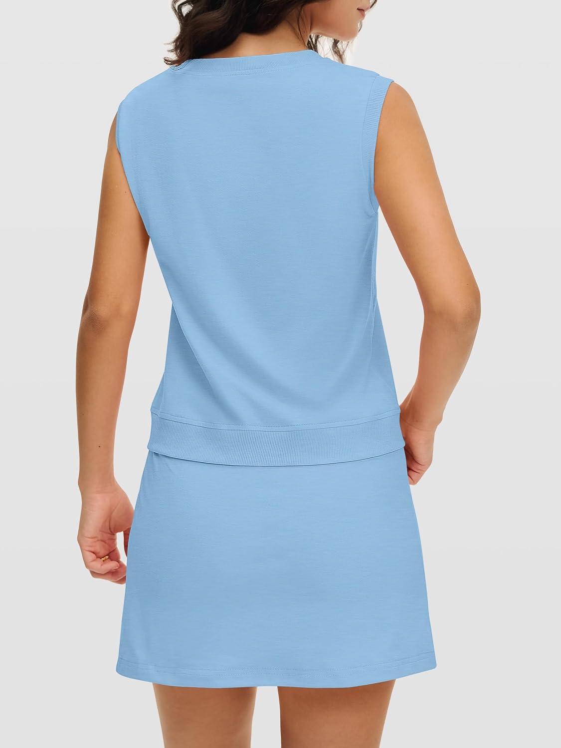 imageANRABESS Women Two Piece Skirt Sets Summer Outfits Athletic Workout Tennis Lined Skort Short Set Travel Vacation ClothesSky Blue