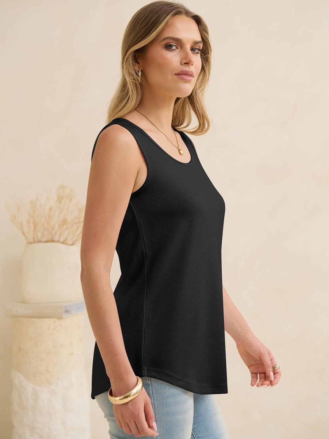 ANRABESS Women Waffle Knit Tank Tops Sleeveless Scoop Neck Flowy Casual Tunic Shirts 2026 Summer Beach Vacation Clothes(Black)