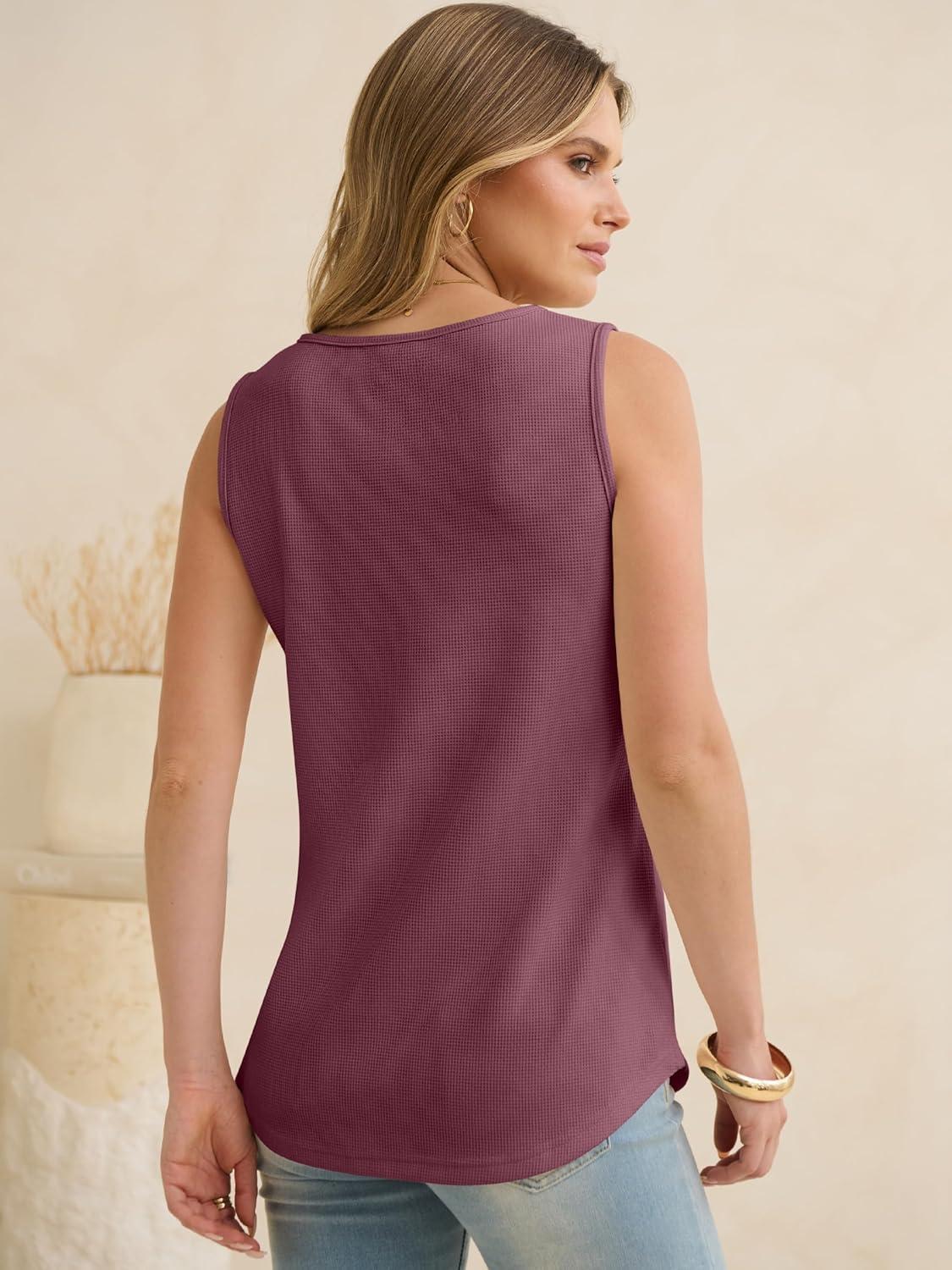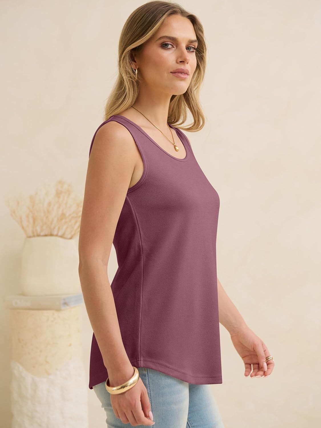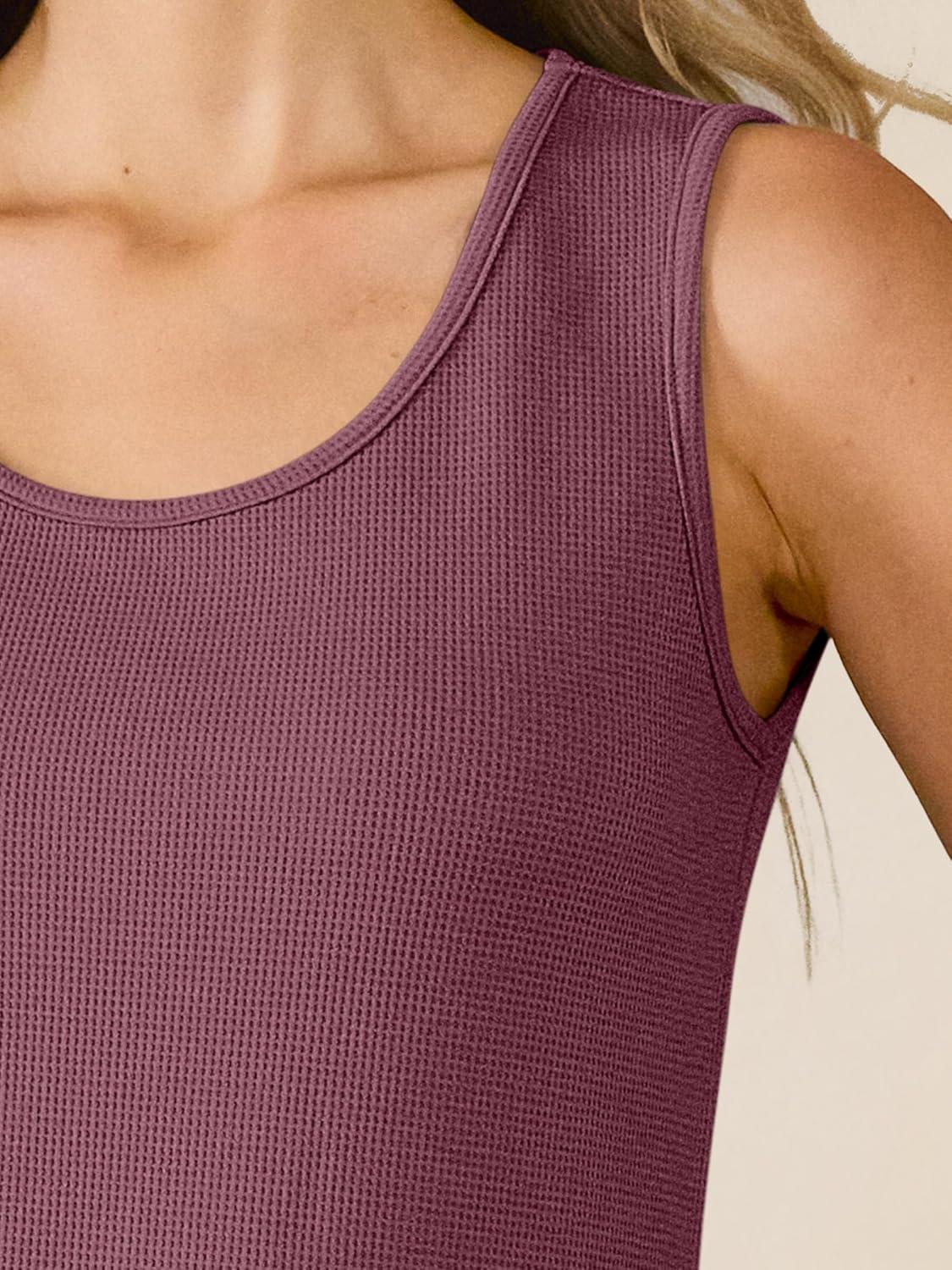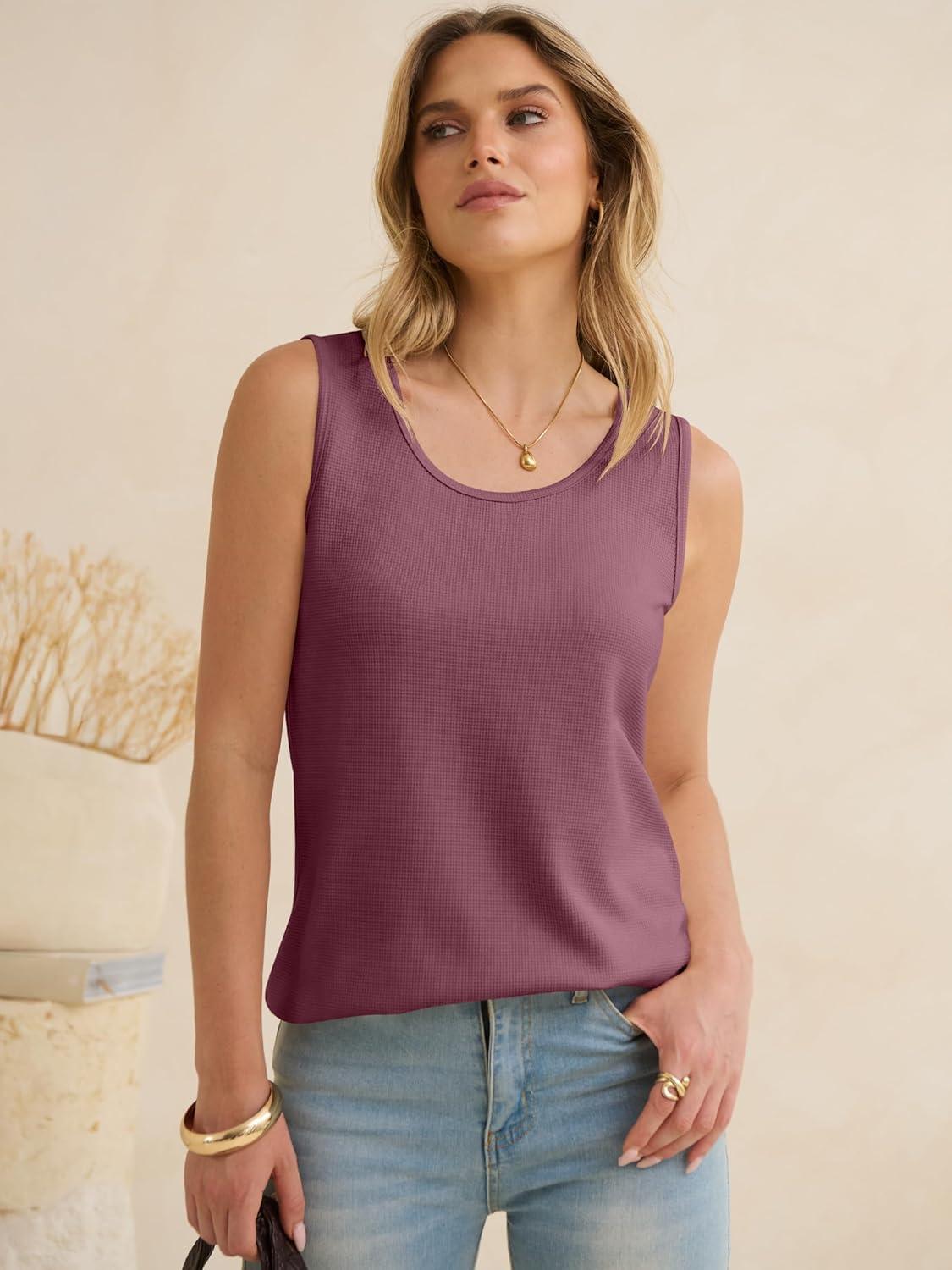 ANRABESS Women Waffle Knit Tank Tops Sleeveless Scoop Neck Flowy Casual Tunic Shirts 2026 Summer Beach Vacation Clothes(Mauve)