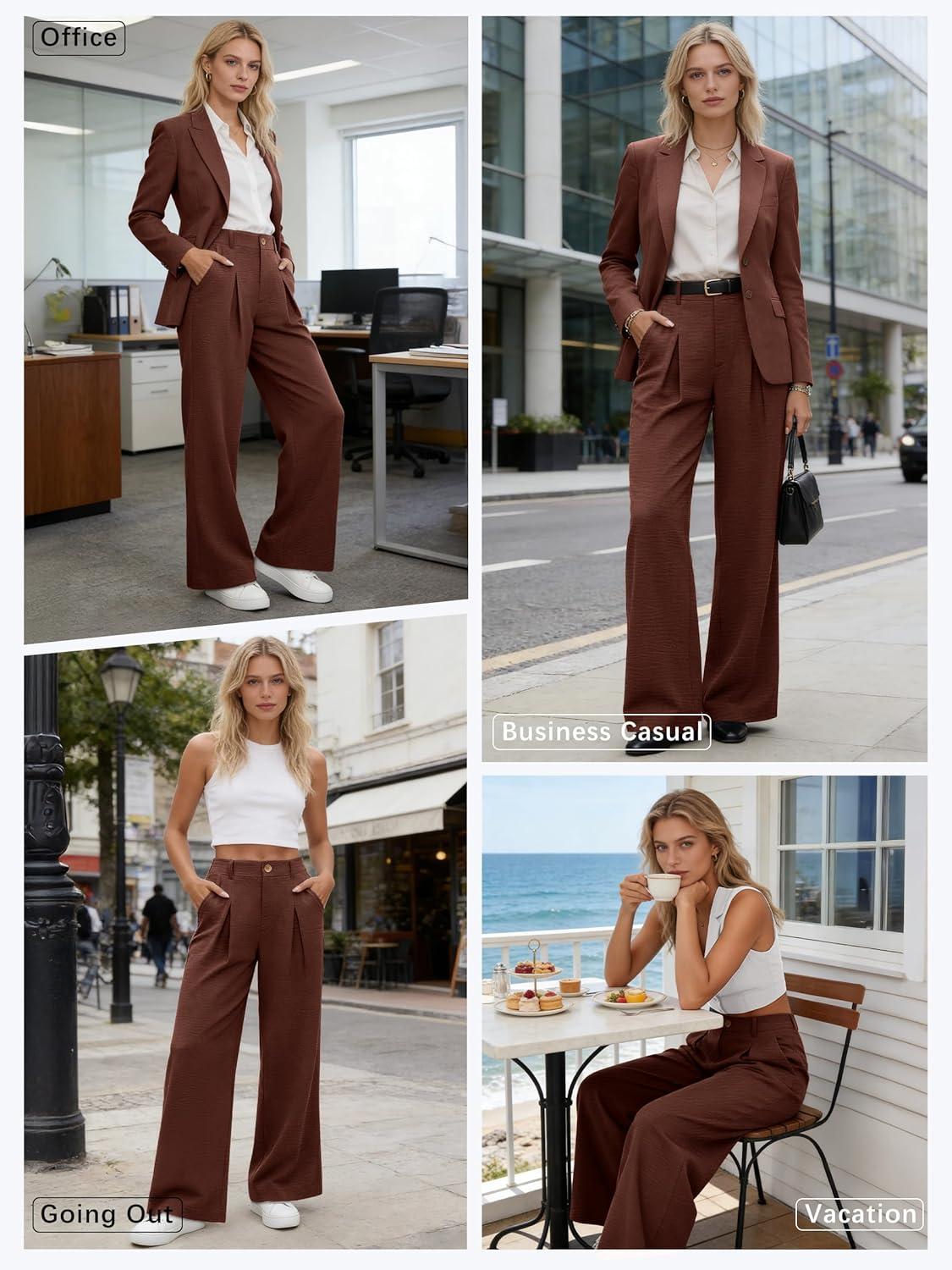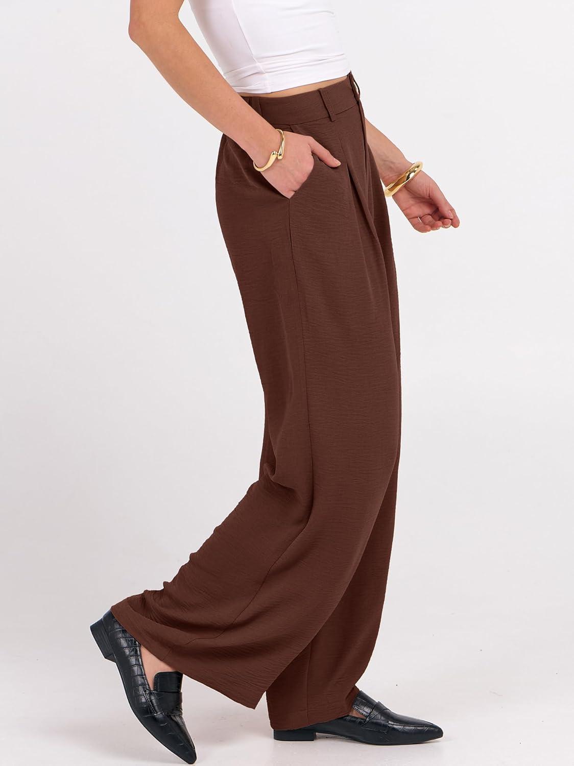 ANRABESS Women Wide Leg Dress Pants 2026 Summer High Waisted Business Casual Work Trousers Dressy Office Palazzo Pants Slacks(Coffee)