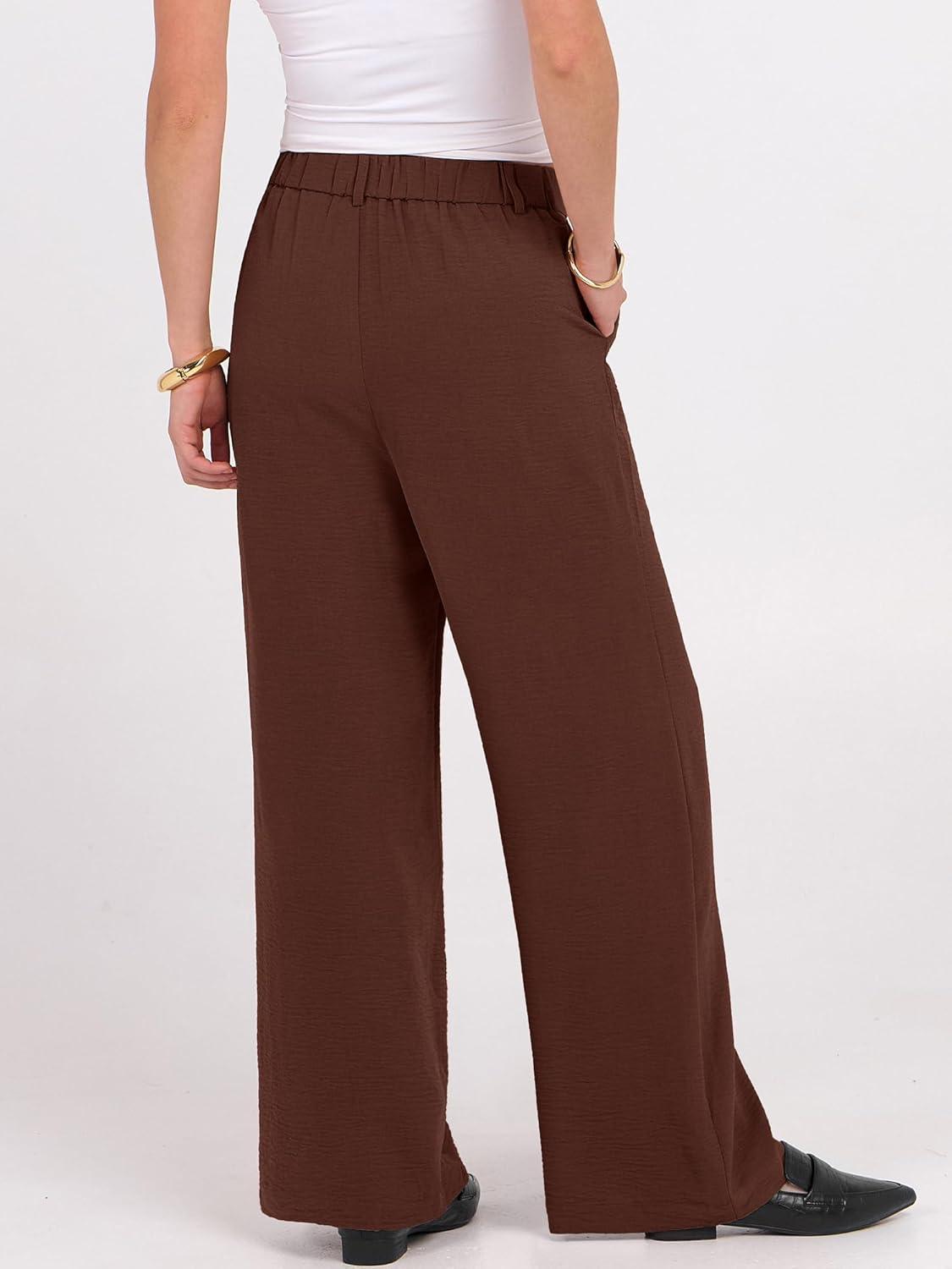 imageANRABESS Women Wide Leg Dress Pants 2026 Summer High Waisted Business Casual Work Trousers Dressy Office Palazzo Pants SlacksCoffee