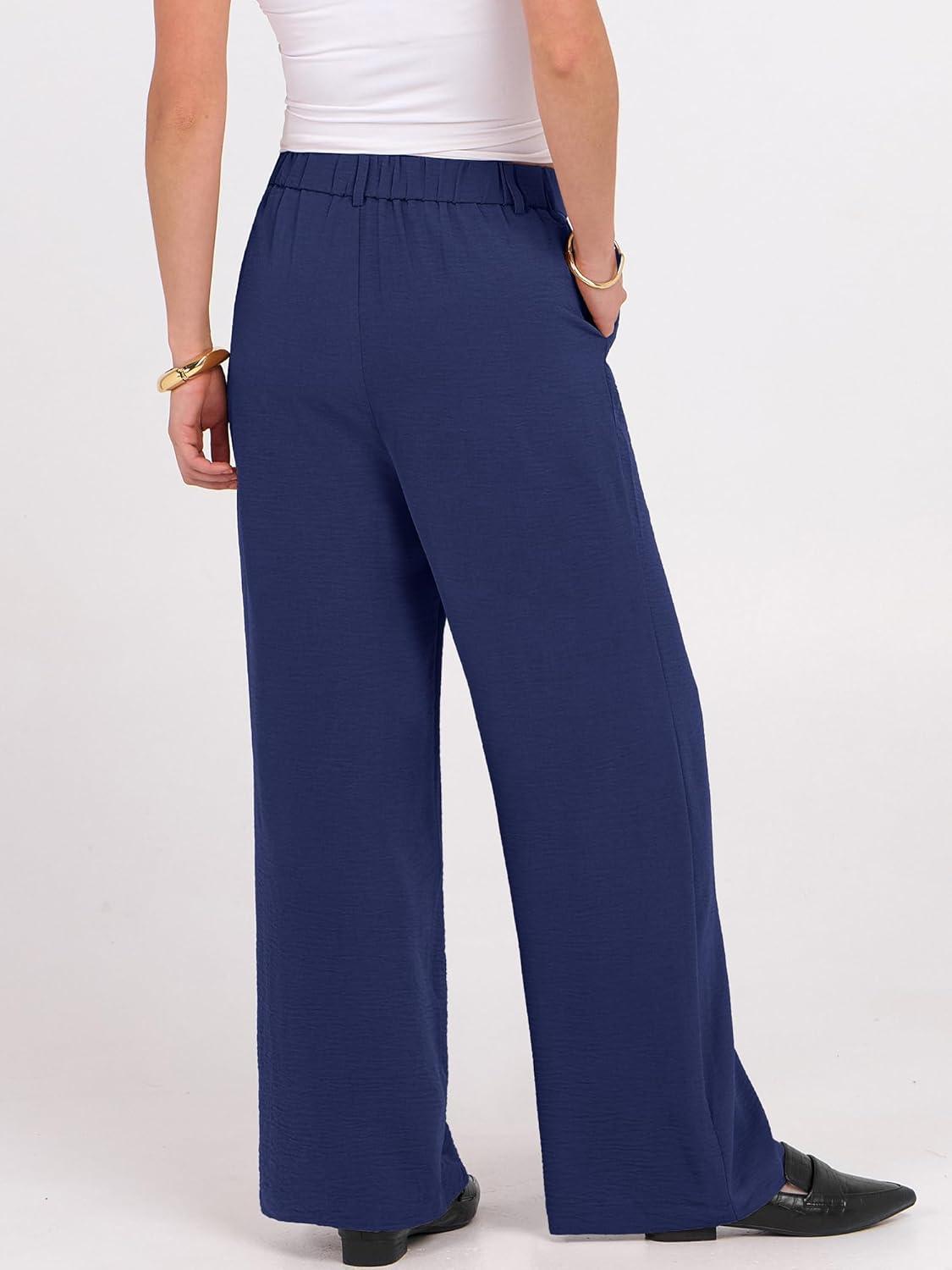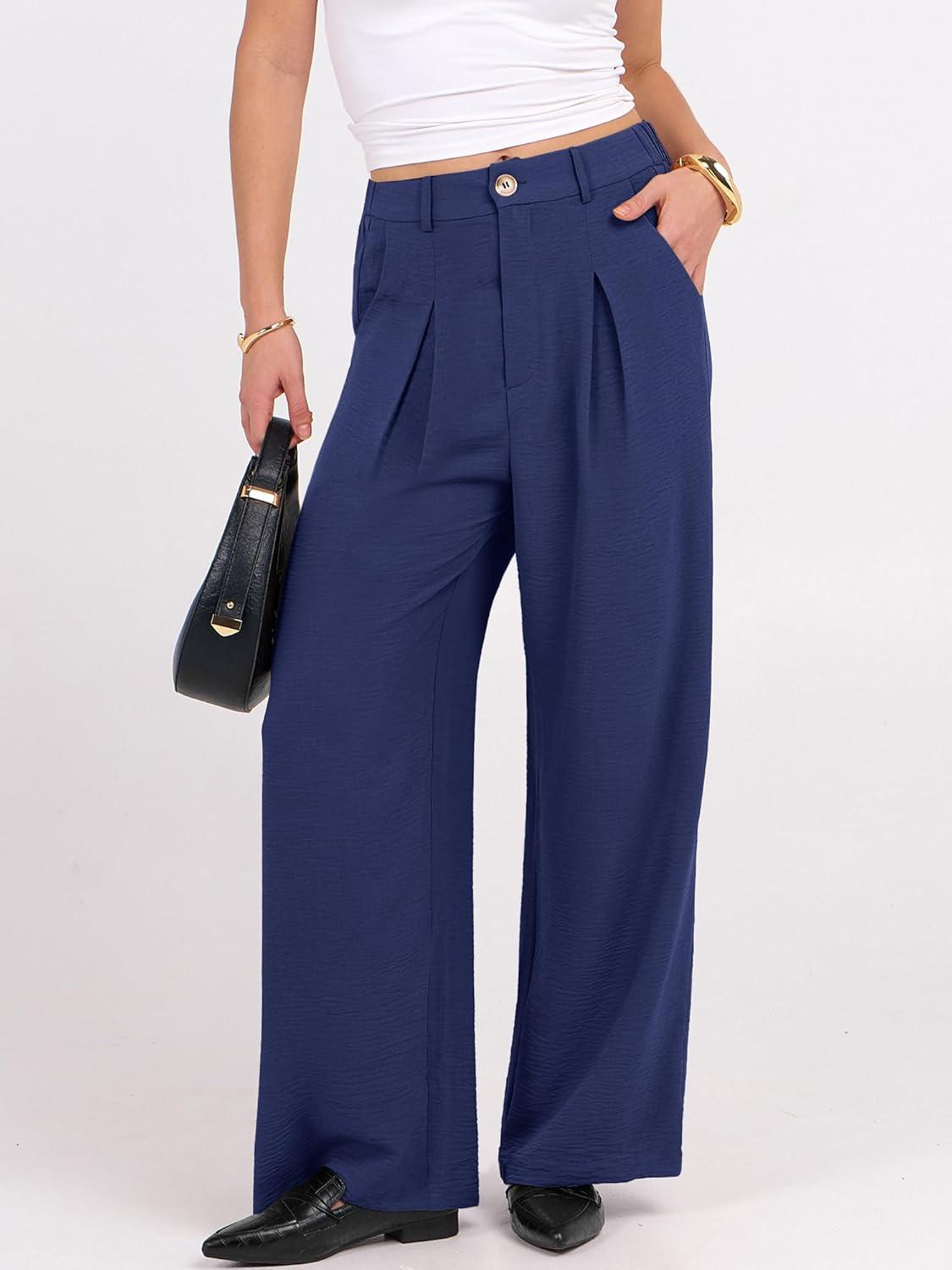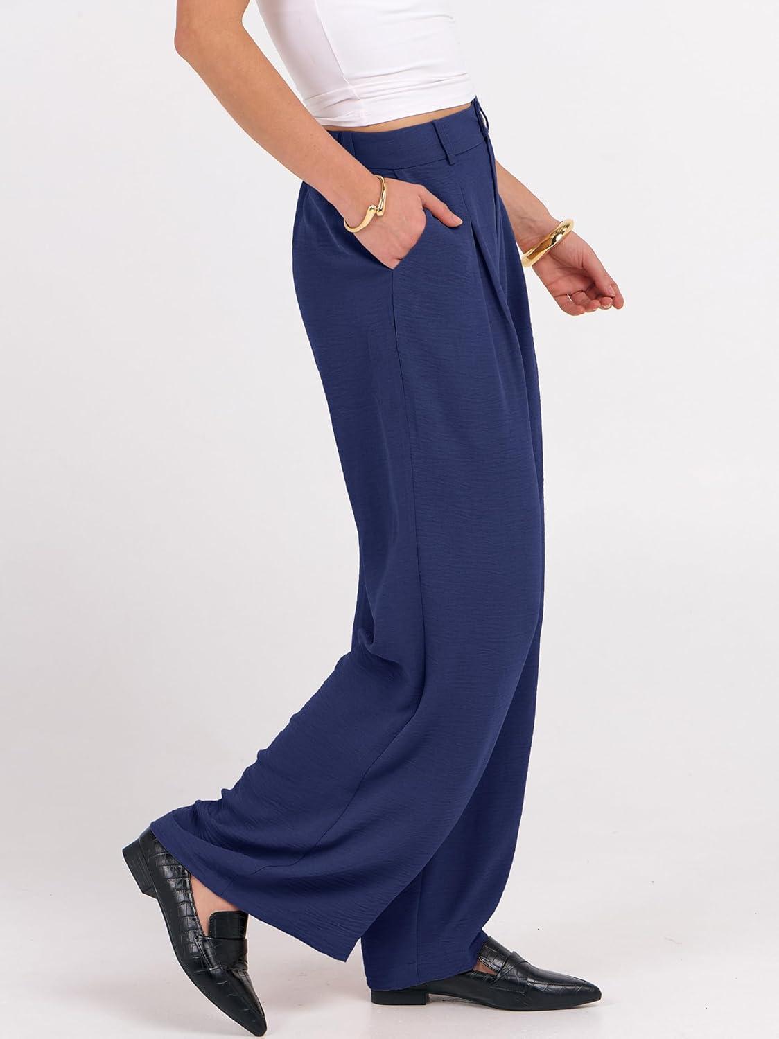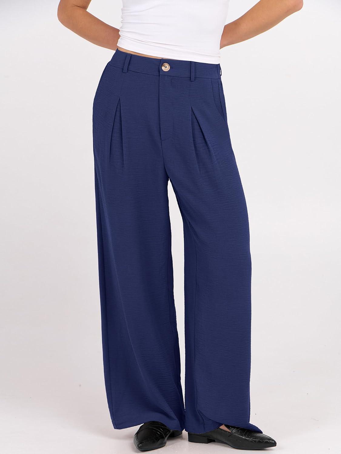 ANRABESS Women Wide Leg Dress Pants 2026 Summer High Waisted Business Casual Work Trousers Dressy Office Palazzo Pants Slacks(Deep Blue)