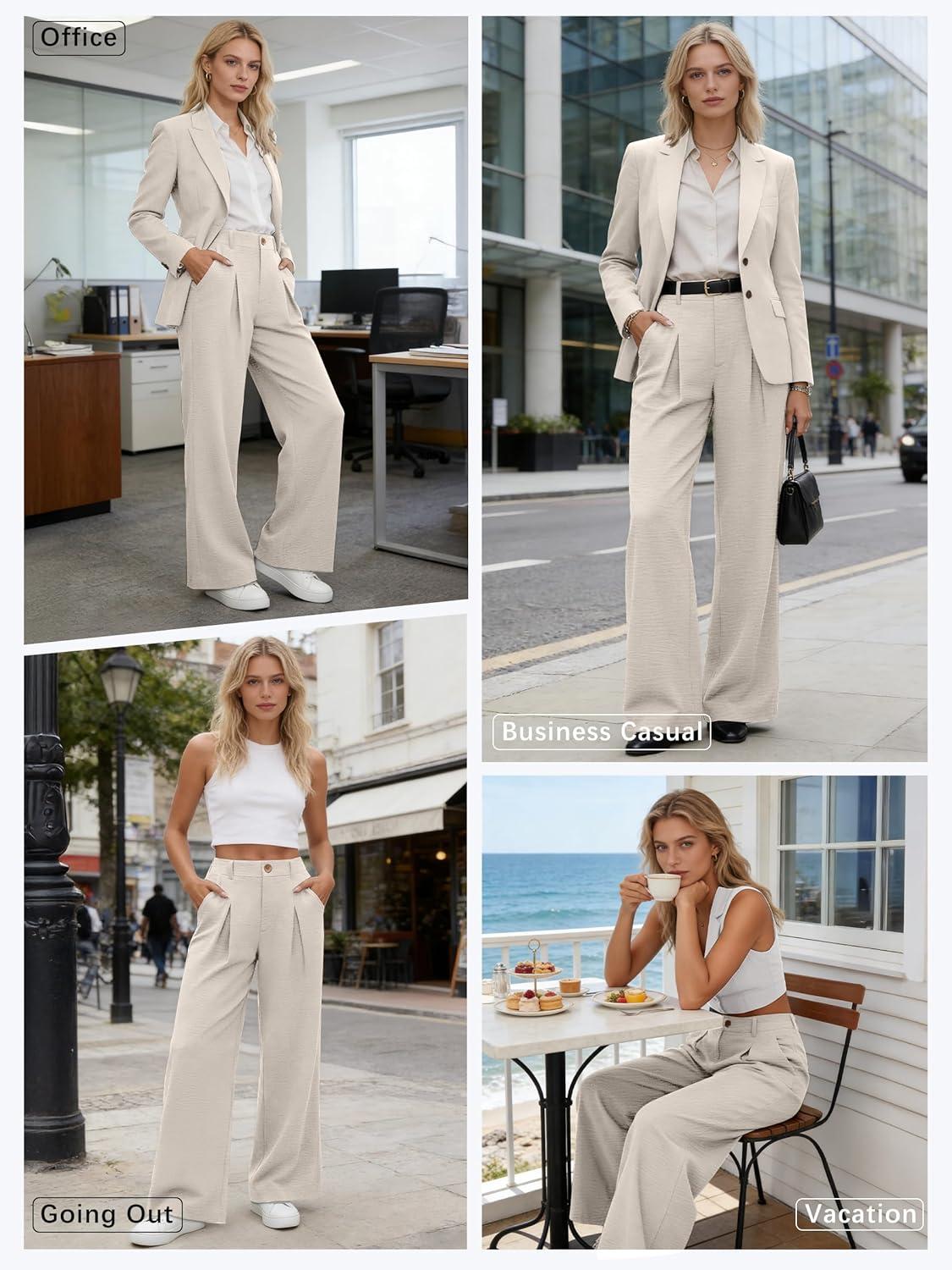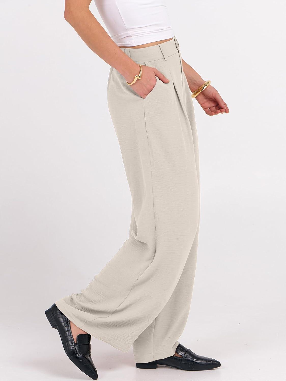 ANRABESS Women Wide Leg Dress Pants 2026 Summer High Waisted Business Casual Work Trousers Dressy Office Palazzo Pants Slacks(Light Beige Yellow)