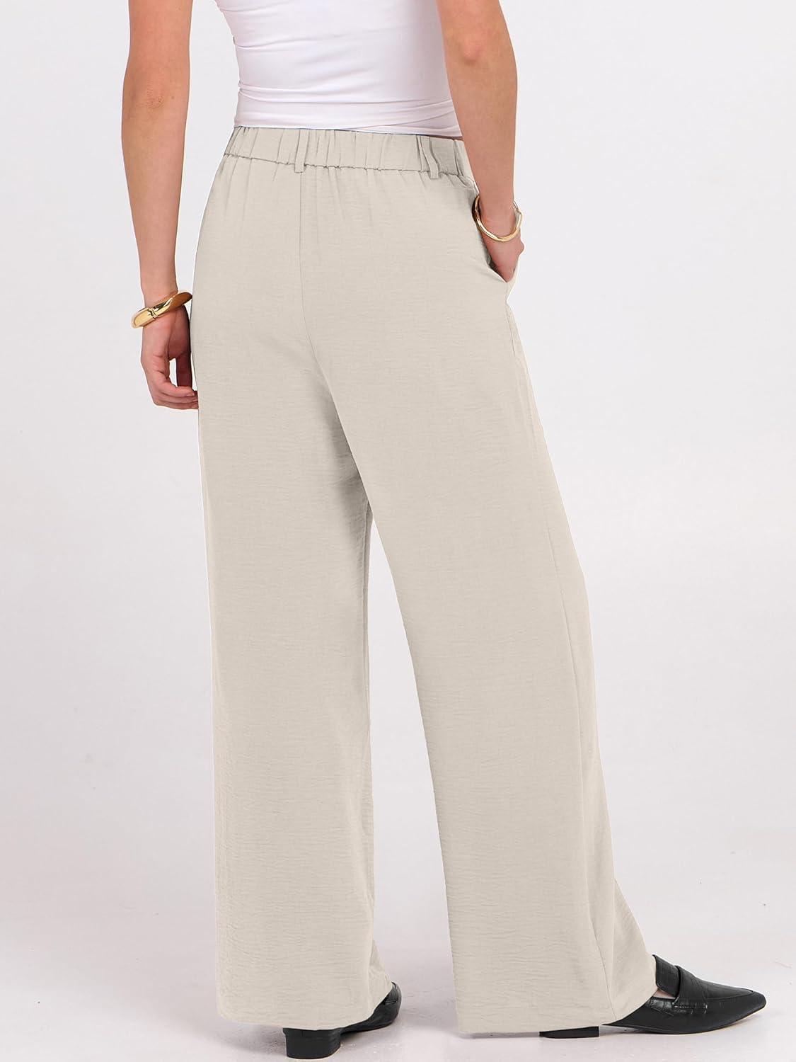 imageANRABESS Women Wide Leg Dress Pants 2026 Summer High Waisted Business Casual Work Trousers Dressy Office Palazzo Pants SlacksLight Beige Yellow