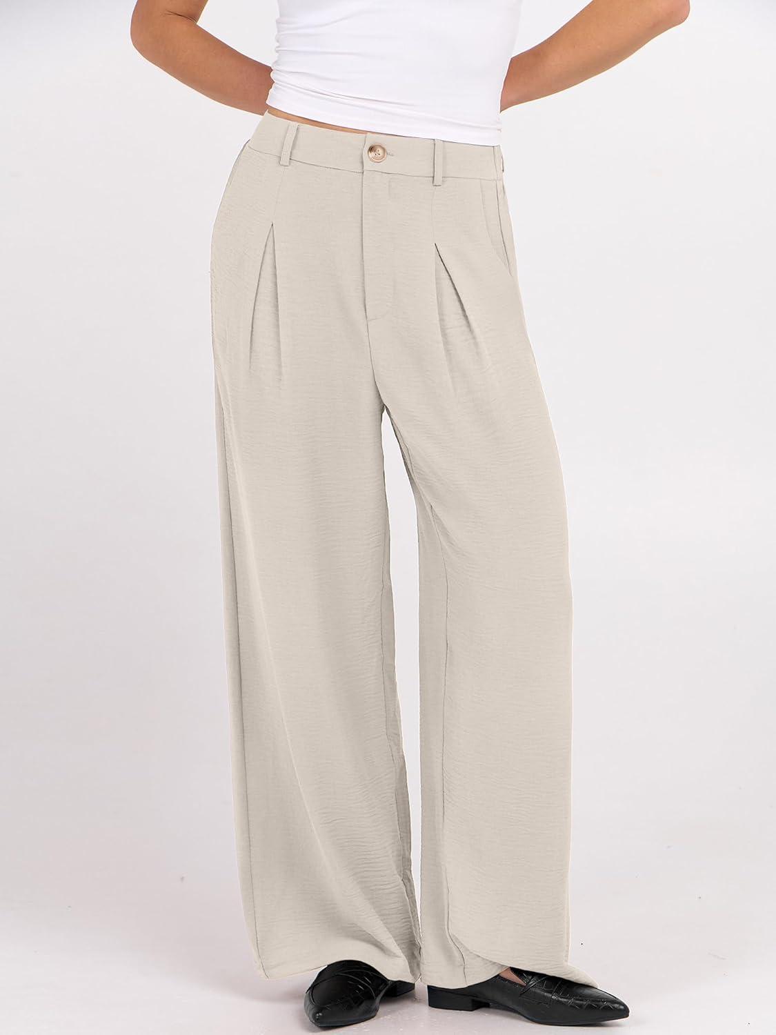 imageANRABESS Women Wide Leg Dress Pants 2026 Summer High Waisted Business Casual Work Trousers Dressy Office Palazzo Pants SlacksTan