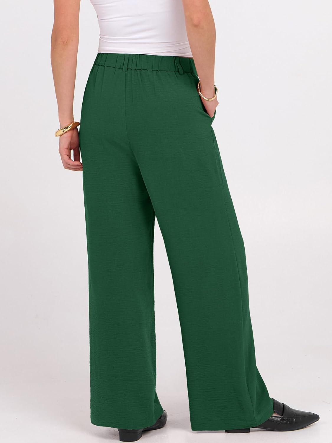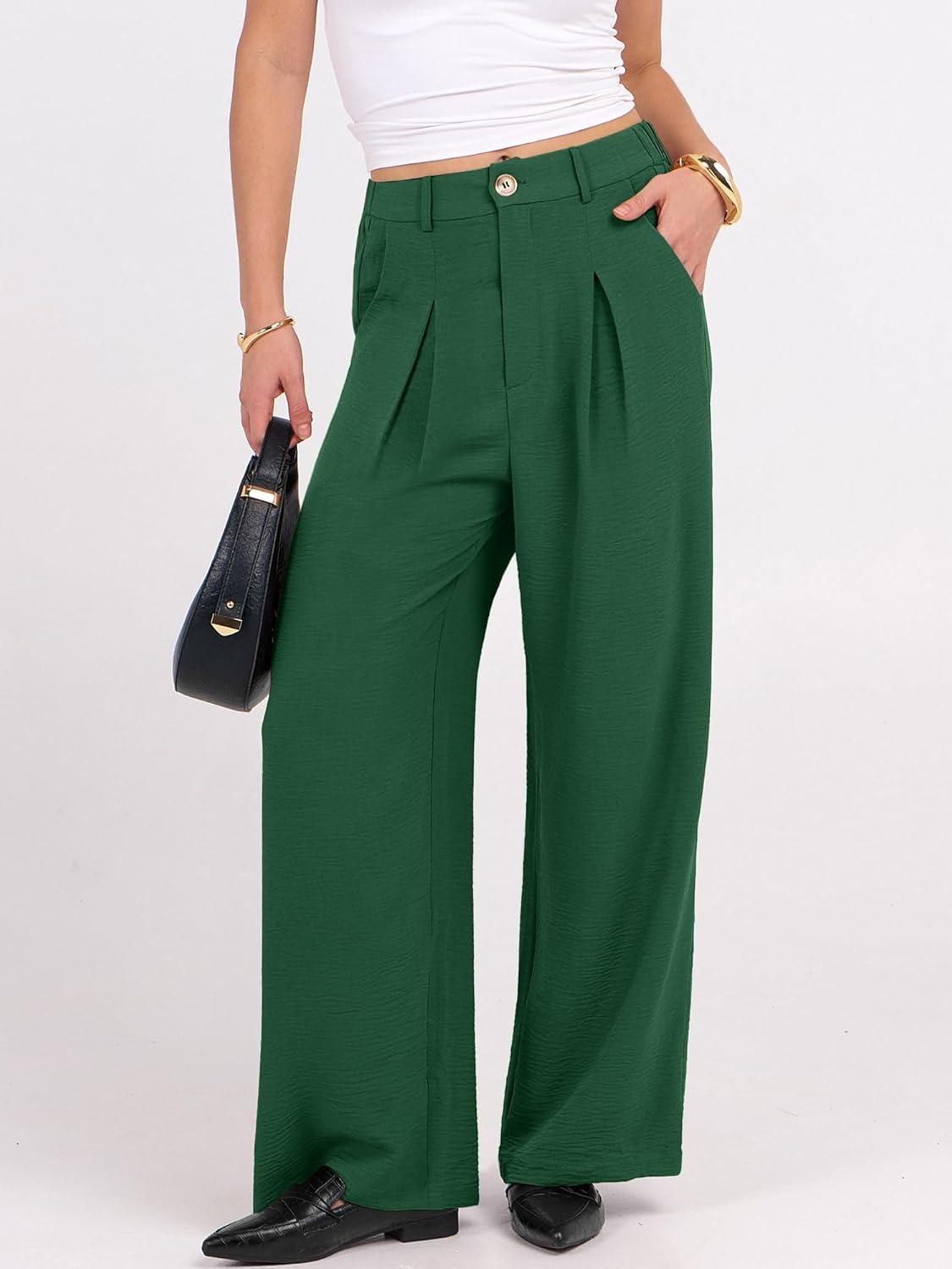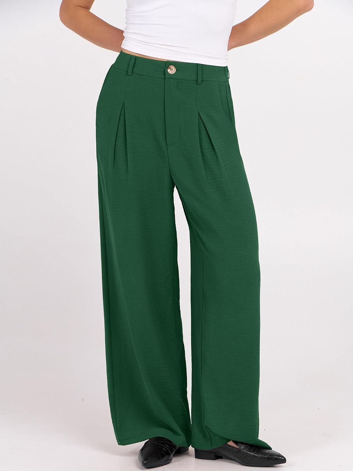 imageANRABESS Women Wide Leg Dress Pants Lightweight High Waisted Business Casual Trousers Dressy Office Work Palazzo Pants SlacksGreen Forest