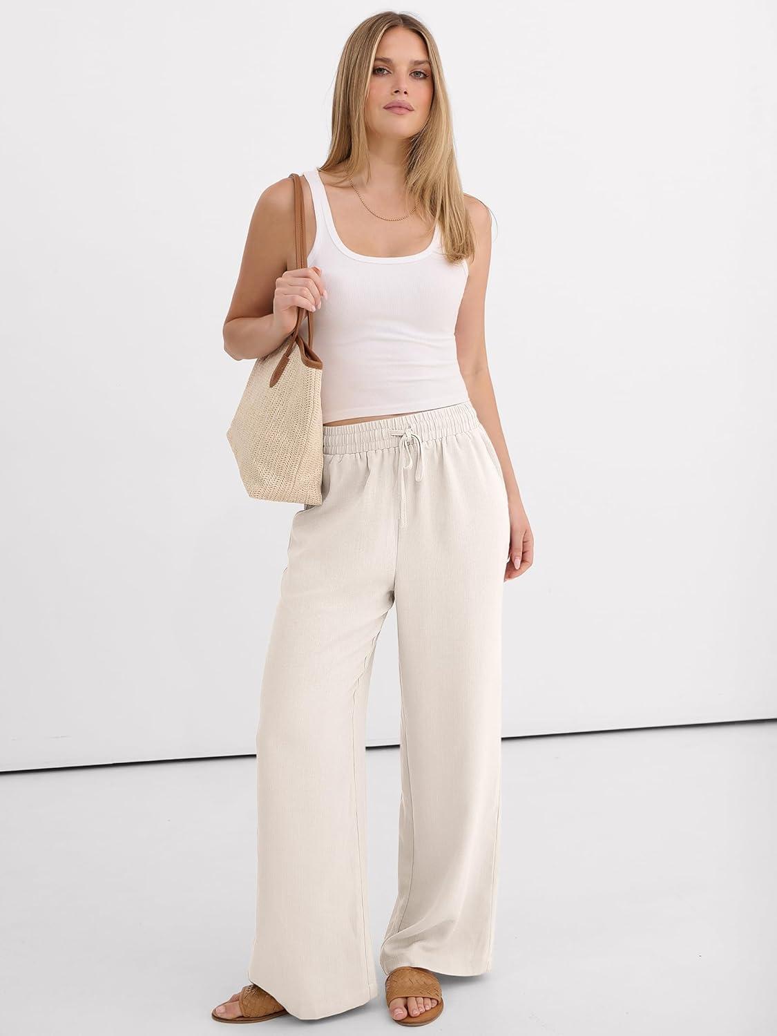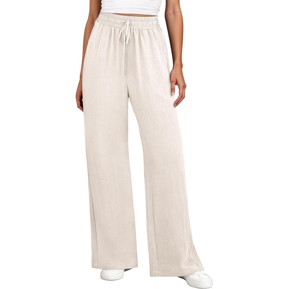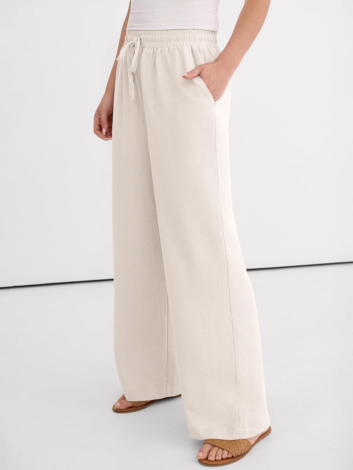 imageANRABESS Women Wide Leg Palazzo Pants 2026 Summer Casual Loose Elastic High Waisted Flowy Lounge Beach Trousers Work OutfitsBeige
