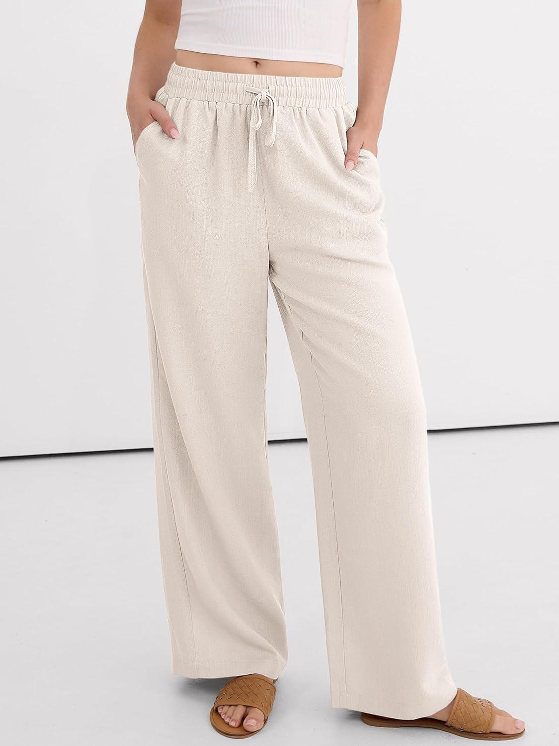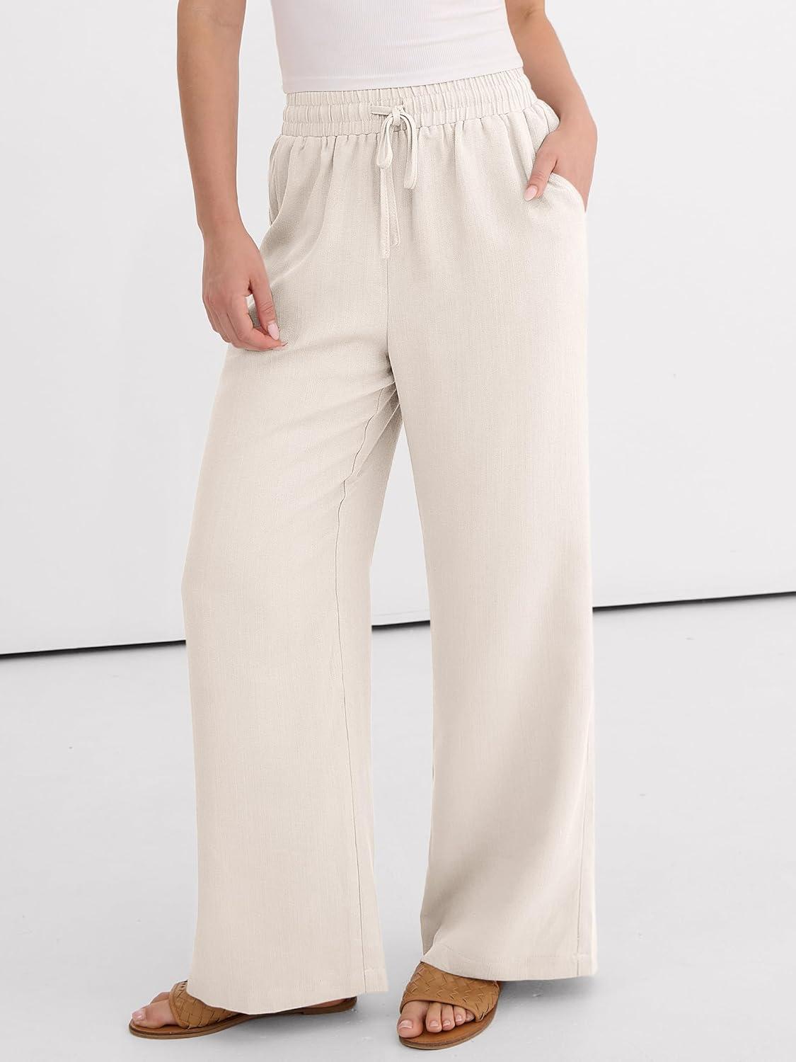ANRABESS Women Wide Leg Palazzo Pants 2026 Summer Casual Loose Elastic High Waisted Flowy Lounge Beach Trousers Work Outfits(Beige)