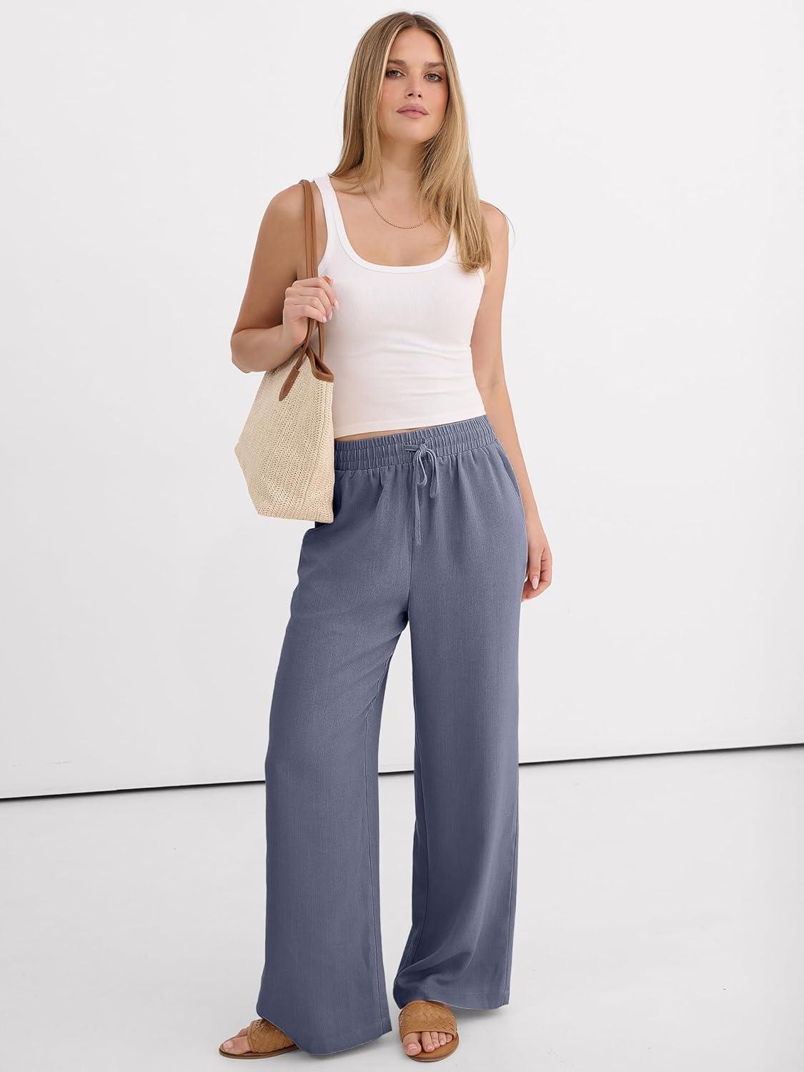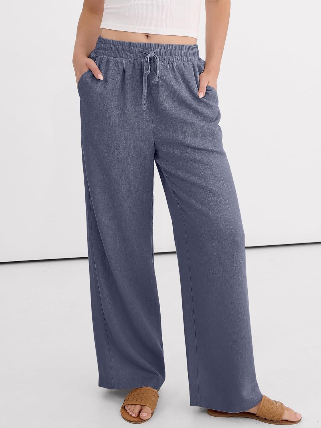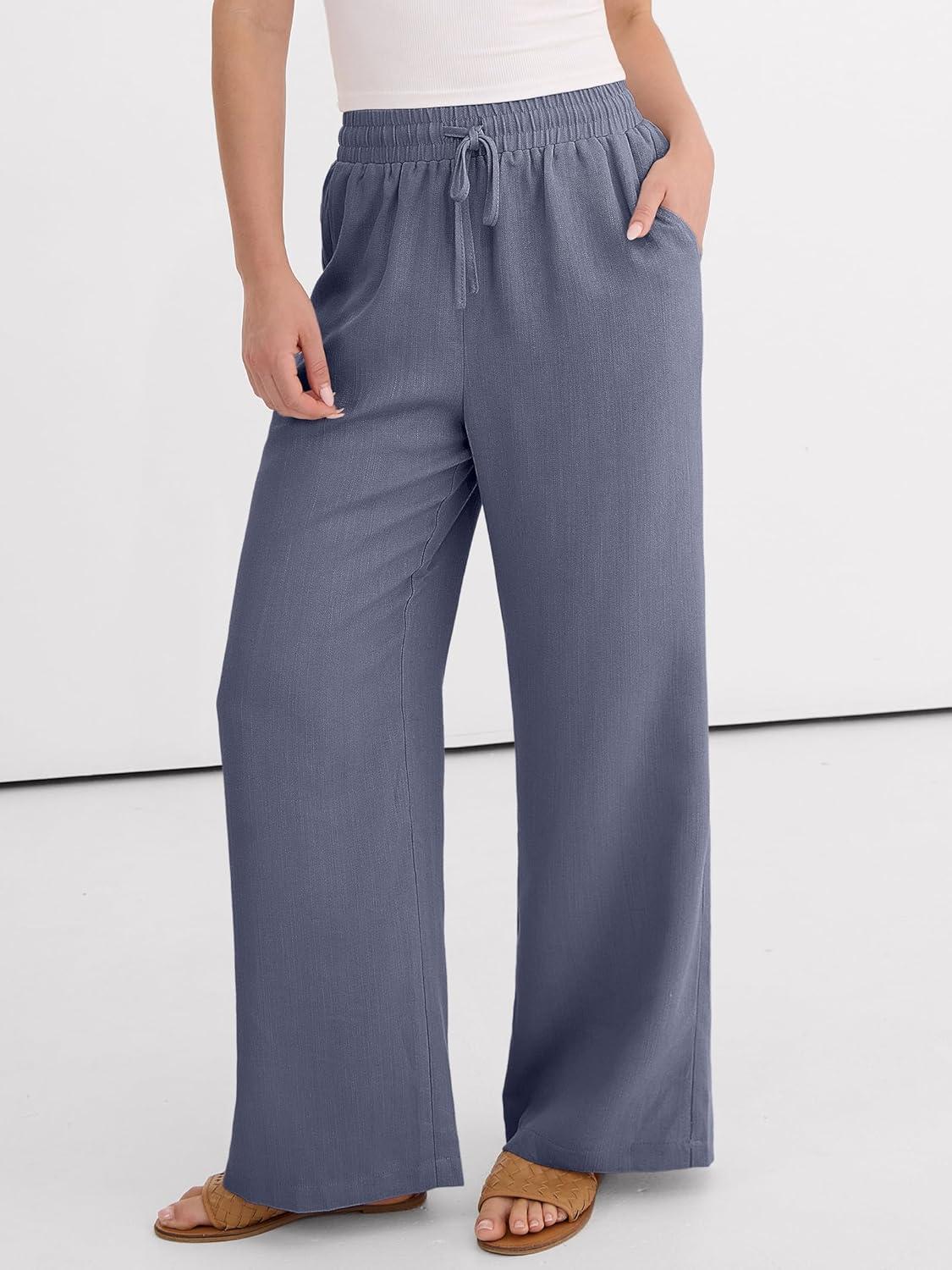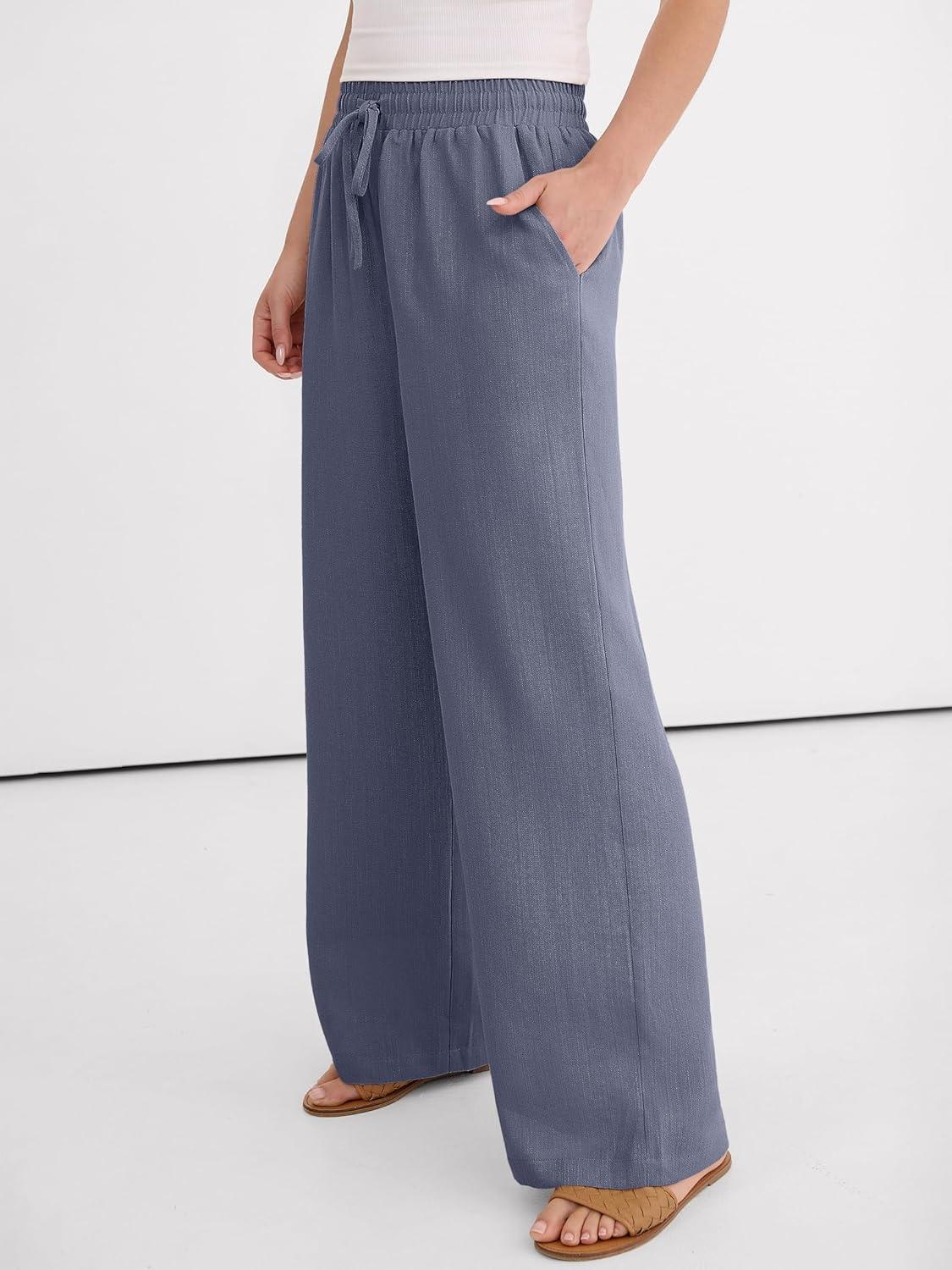ANRABESS Women Wide Leg Palazzo Pants 2026 Summer Casual Loose Elastic High Waisted Flowy Lounge Beach Trousers Work Outfits(Blue Gray)