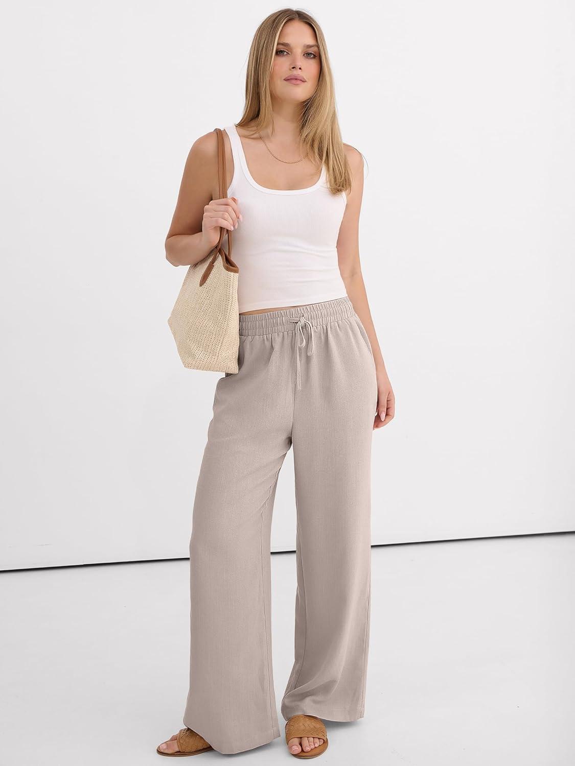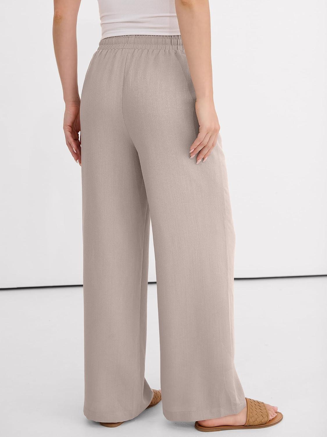 imageANRABESS Women Wide Leg Palazzo Pants 2026 Summer Casual Loose Elastic High Waisted Flowy Lounge Beach Trousers Work OutfitsParchment