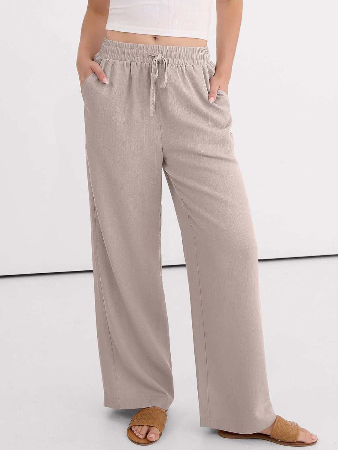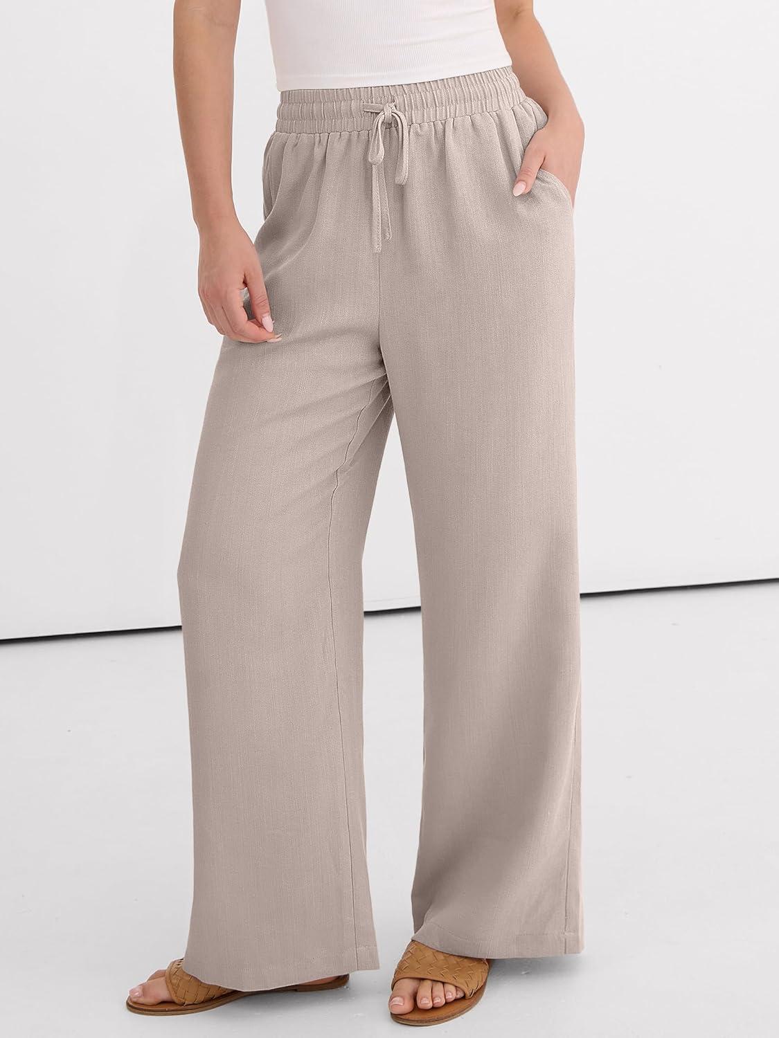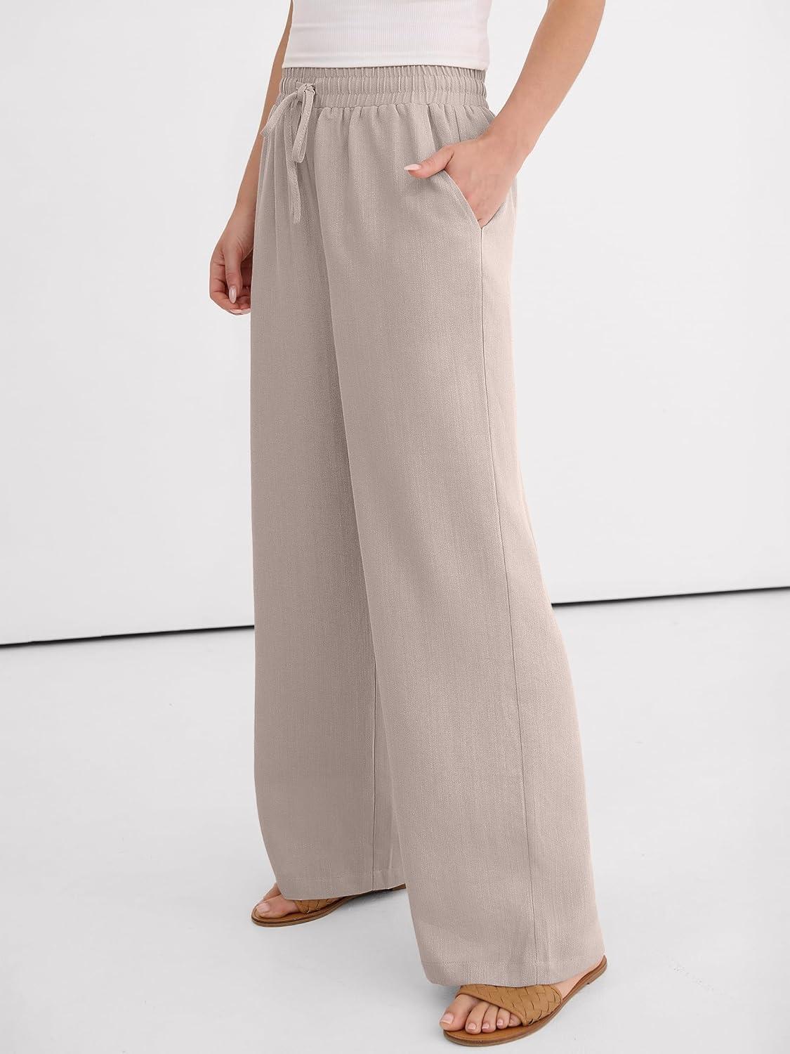 ANRABESS Women Wide Leg Palazzo Pants 2026 Summer Casual Loose Elastic High Waisted Flowy Lounge Beach Trousers Work Outfits(Parchment)