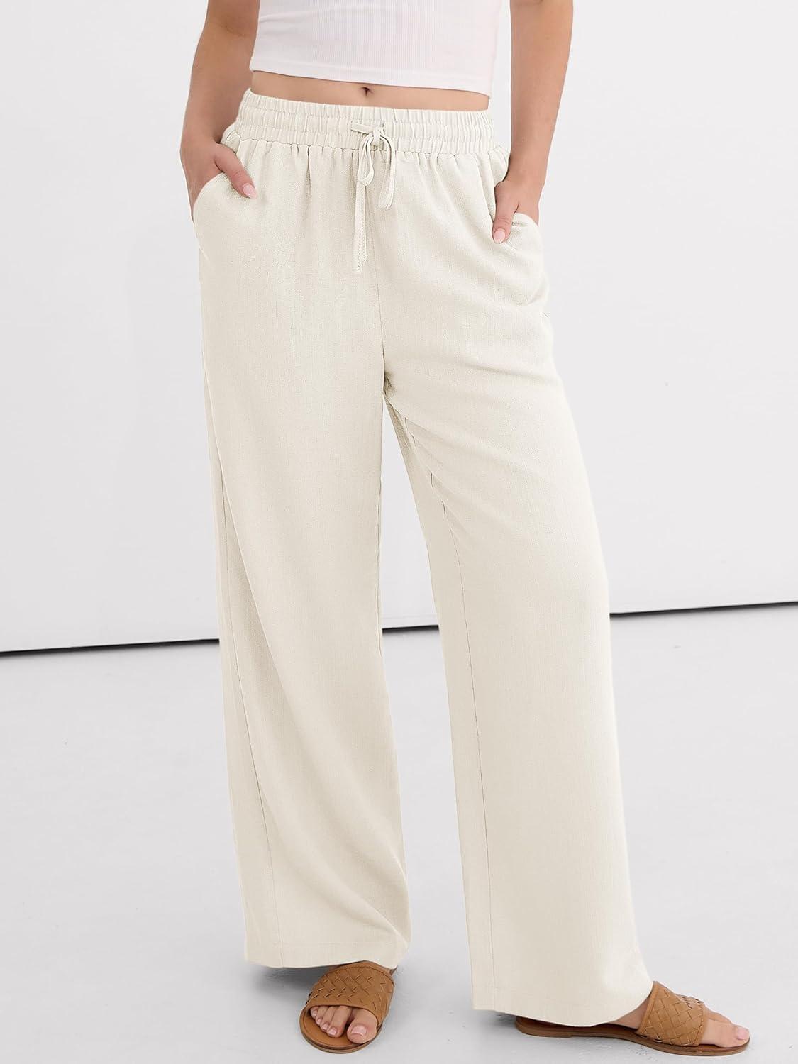 ANRABESS Women Wide Leg Palazzo Pants 2026 Summer Casual Loose Elastic High Waisted Flowy Lounge Beach Trousers Work Outfits(Parchment)