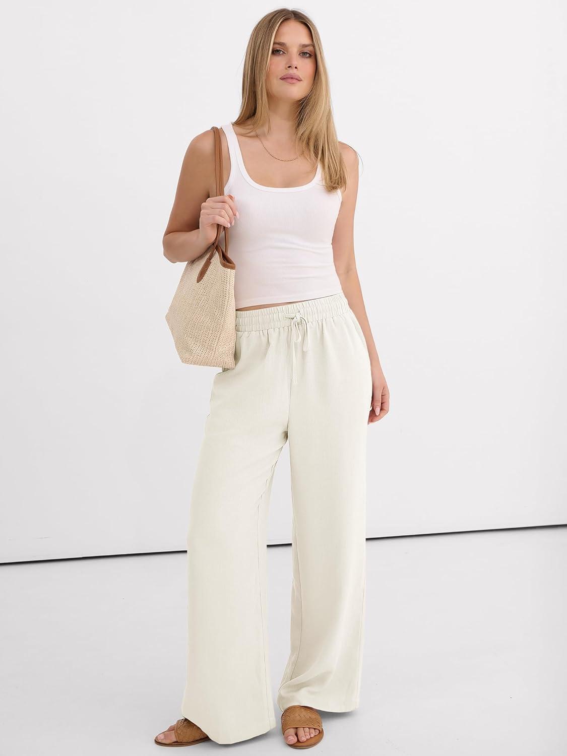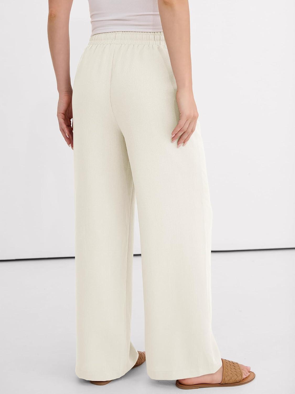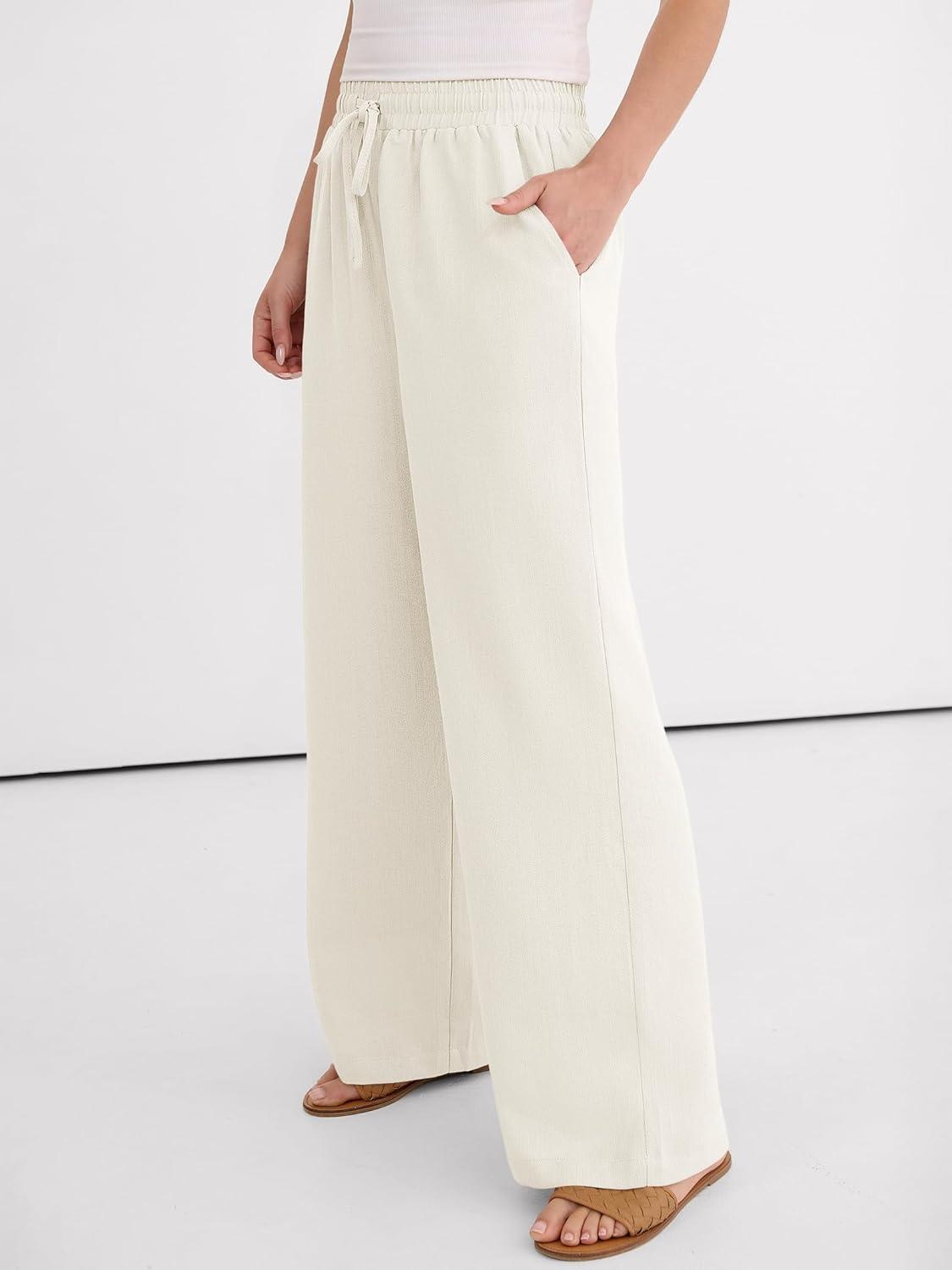 imageANRABESS Women Wide Leg Palazzo Pants 2026 Summer Casual Loose Elastic High Waisted Flowy Lounge Beach Trousers Work OutfitsParchment