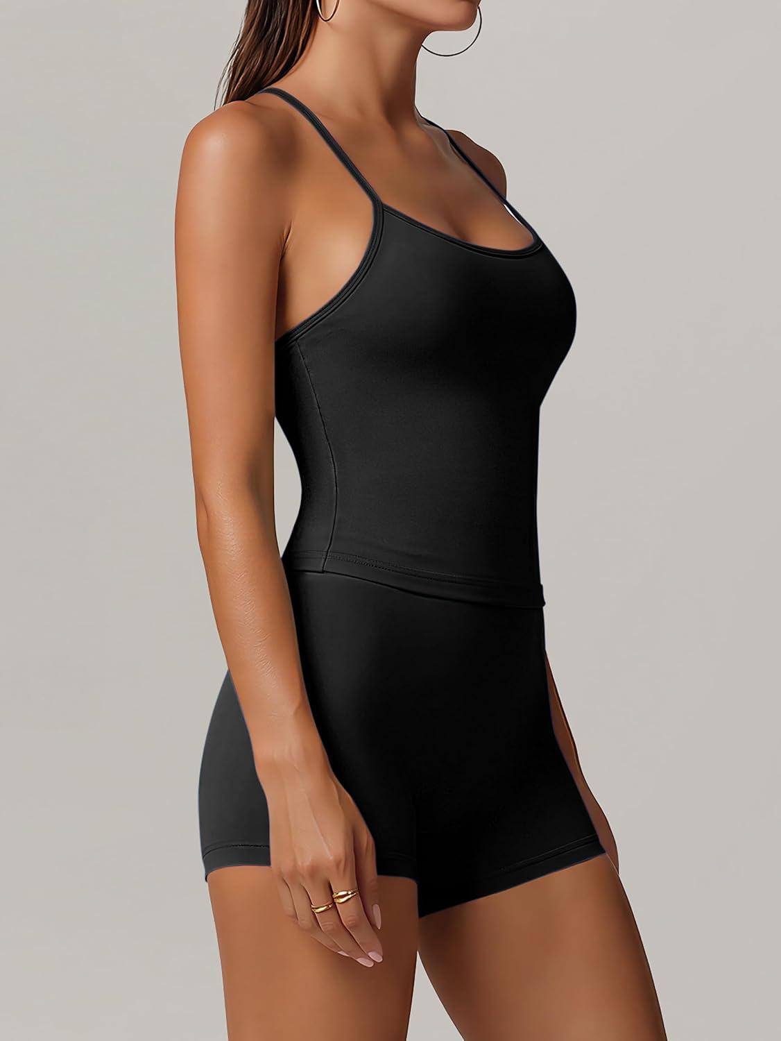 ANRABESS Women Workout Sets Build in Bra 2 Piece Outfits Tank Tops Tummy Control Shorts Yoga Gym Active Wear Clothing Set(Black)