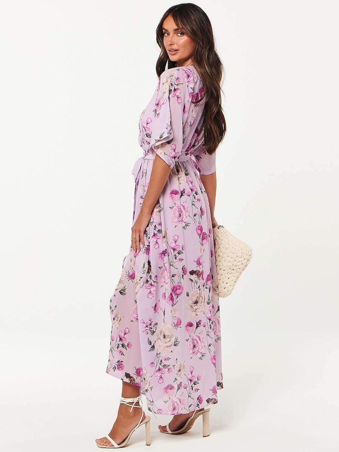 imageANRABESS Womens 12 Sleeve Beach Wedding Guest Maxi Dresses 2025 Fall Wrap V Neck Boho Floral Flowy Slit Long Summer DressesFloral Purple