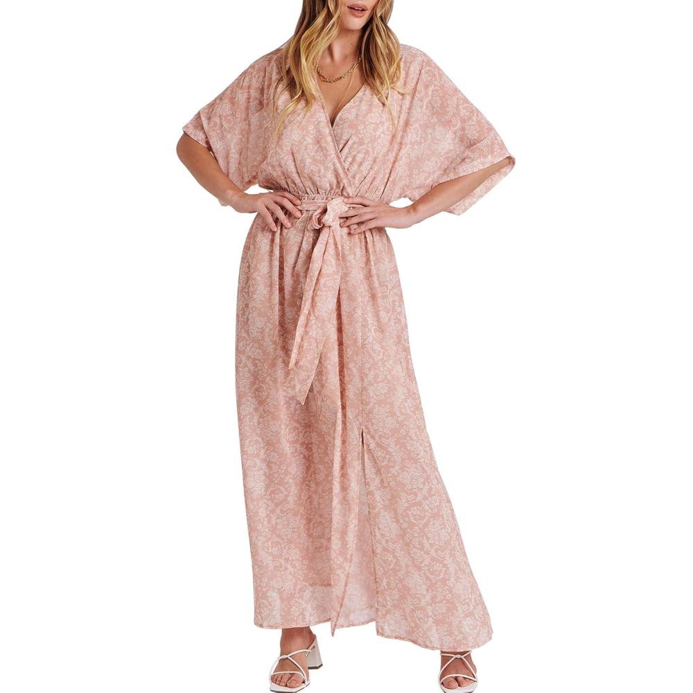 imageANRABESS Womens 12 Sleeve Beach Wedding Guest Maxi Dresses 2025 Fall Wrap V Neck Boho Floral Flowy Slit Long Summer DressesFloral Rose Gold