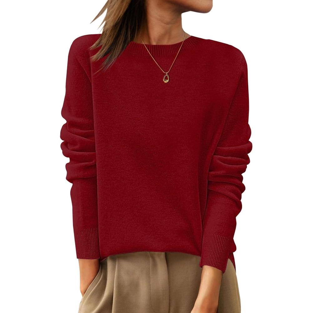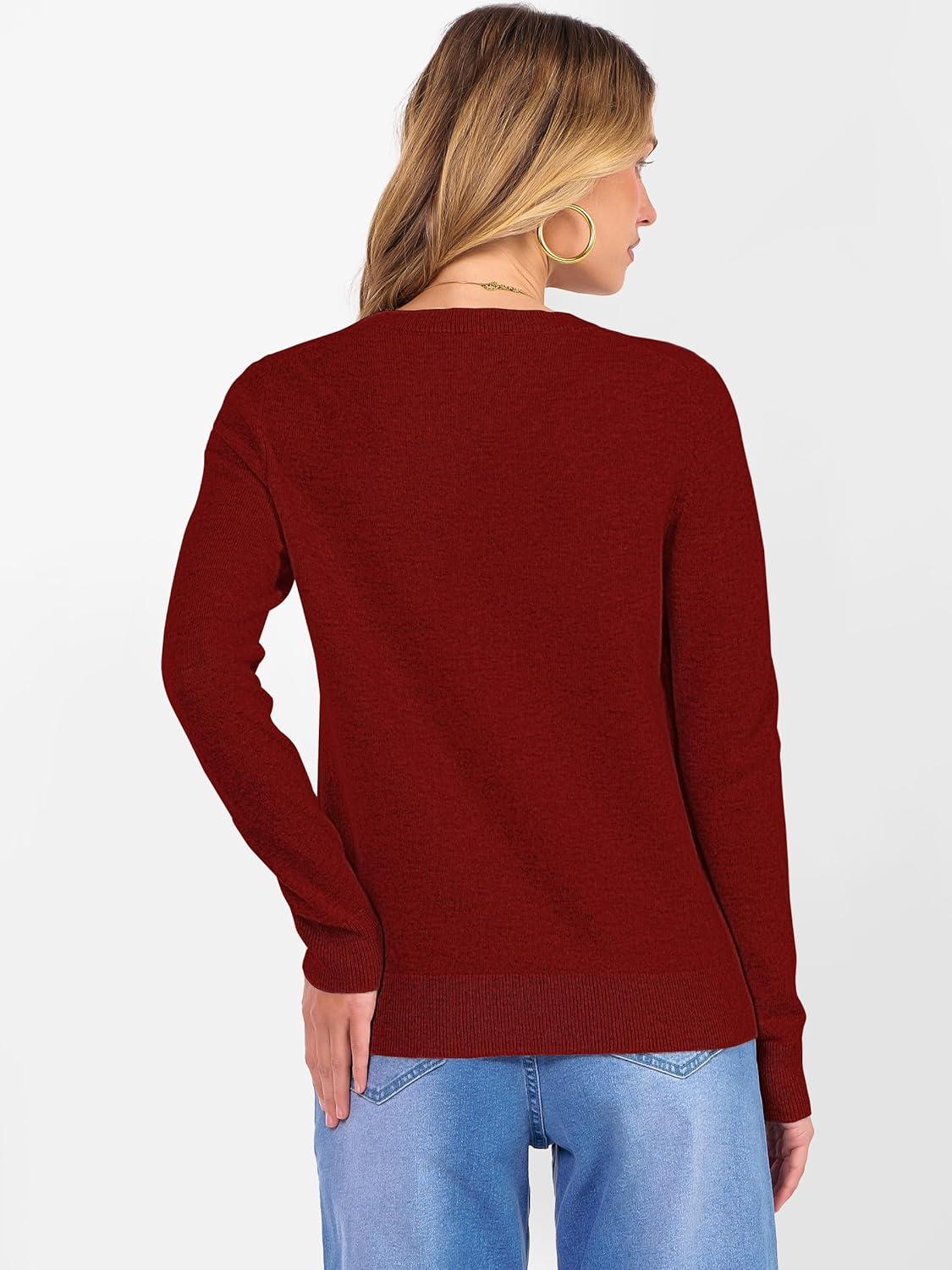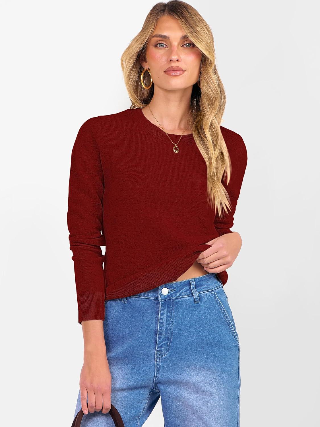 imageANRABESS Womens 100 Wool Sweaters Crewneck Long Sleeve Work Business Casual Basic Sweater Tops 2025 Fall OutfitsRed