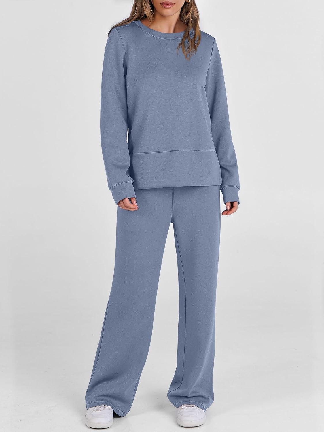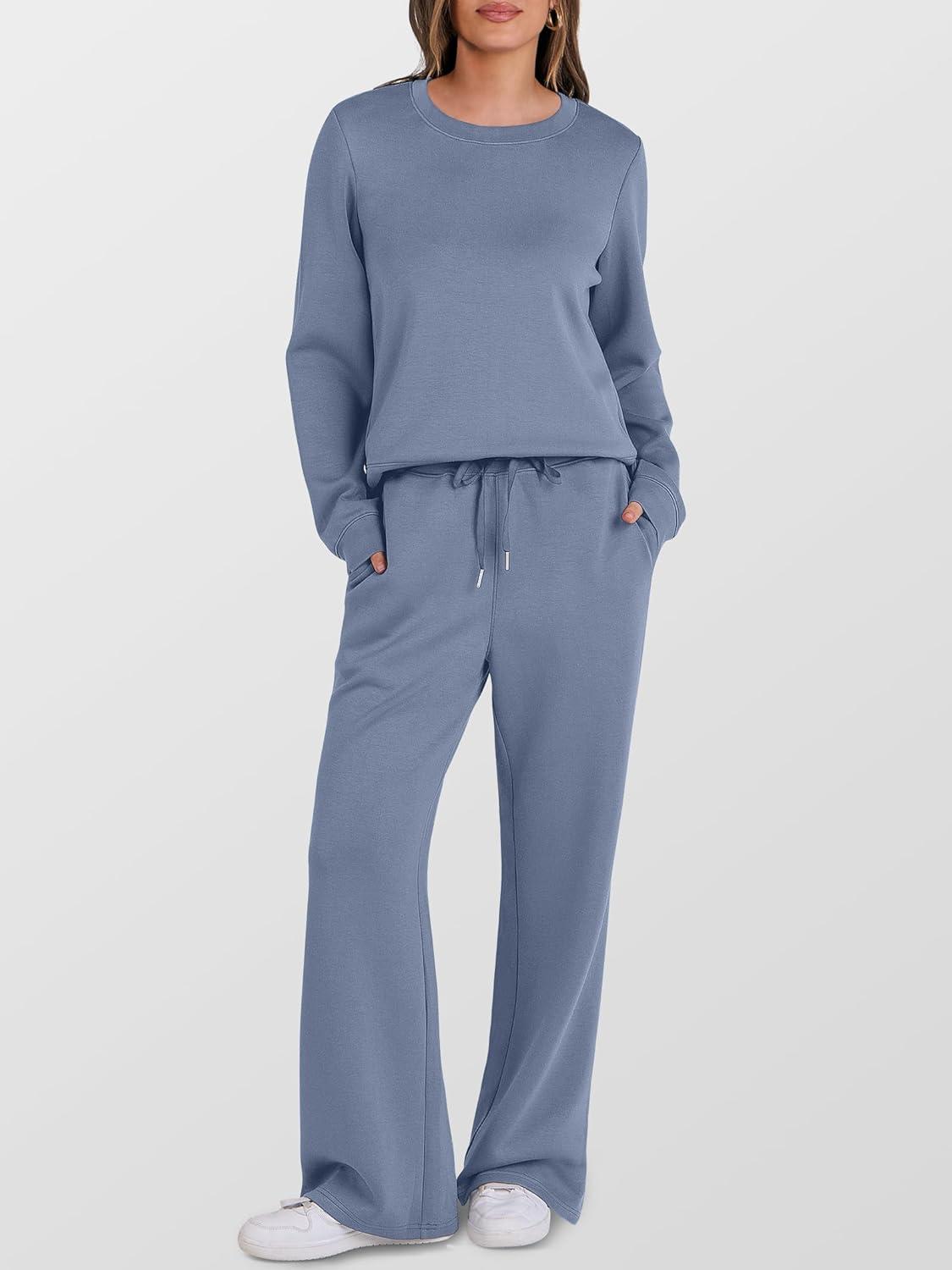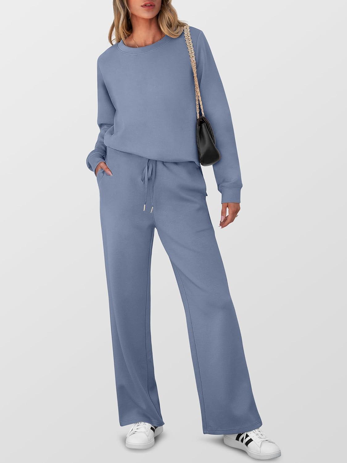 ANRABESS Women’s 2 Piece Lounge Sets Casual Travel Outfits Wide Leg Tracksuit Sweatsuits Matching Set 2026 Fall Clothes(Blue)