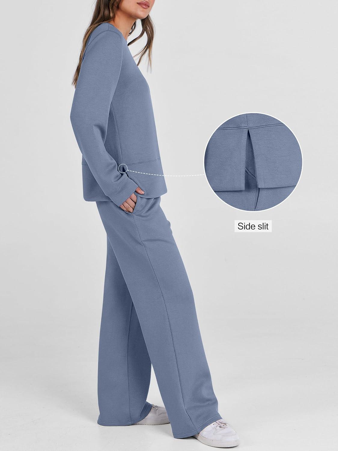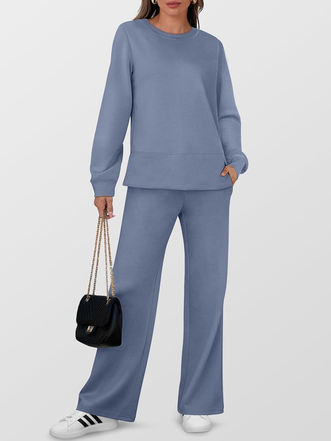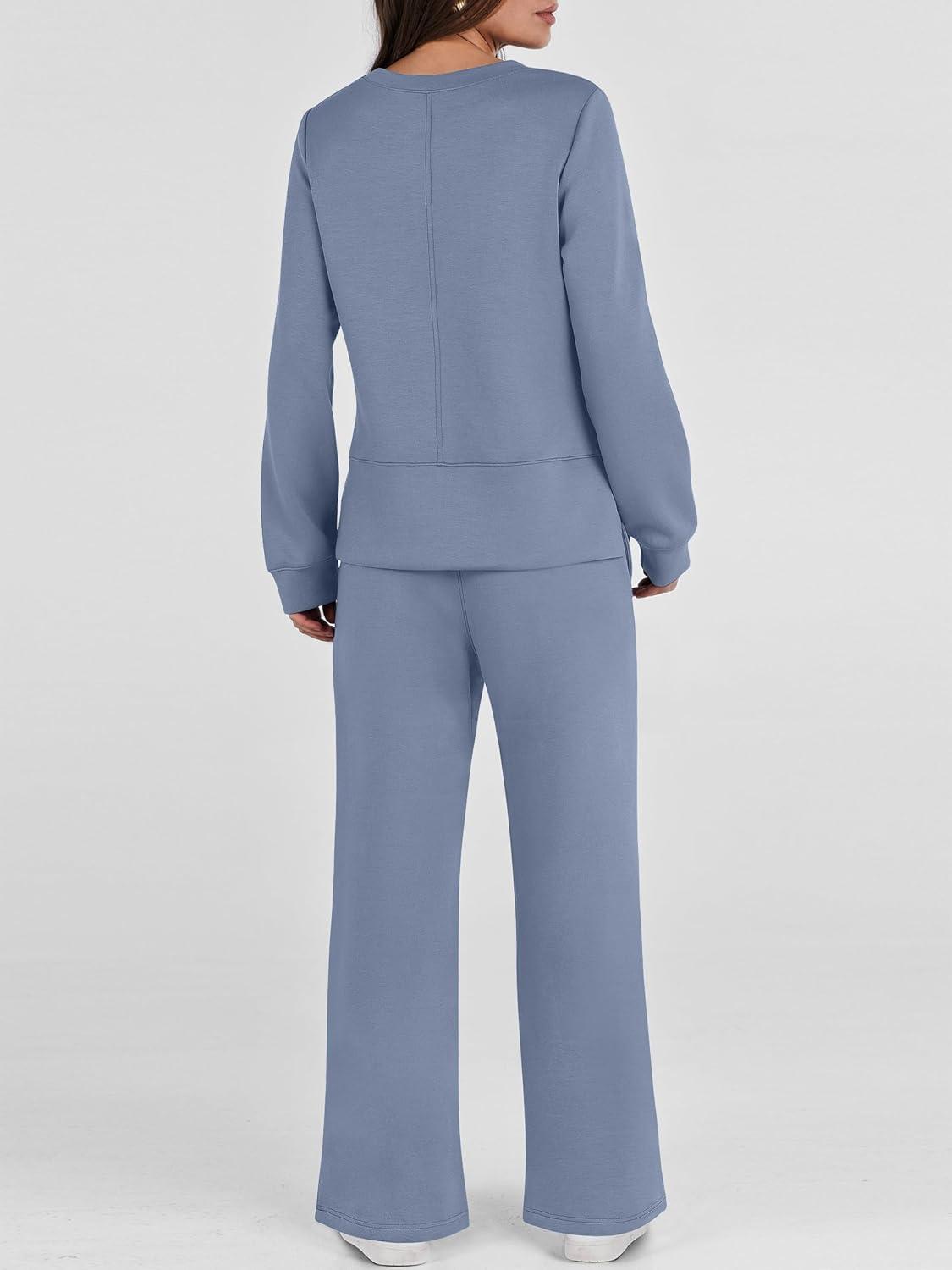 ANRABESS Women’s 2 Piece Lounge Sets Casual Travel Outfits Wide Leg Tracksuit Sweatsuits Matching Set 2026 Fall Clothes(Blue)