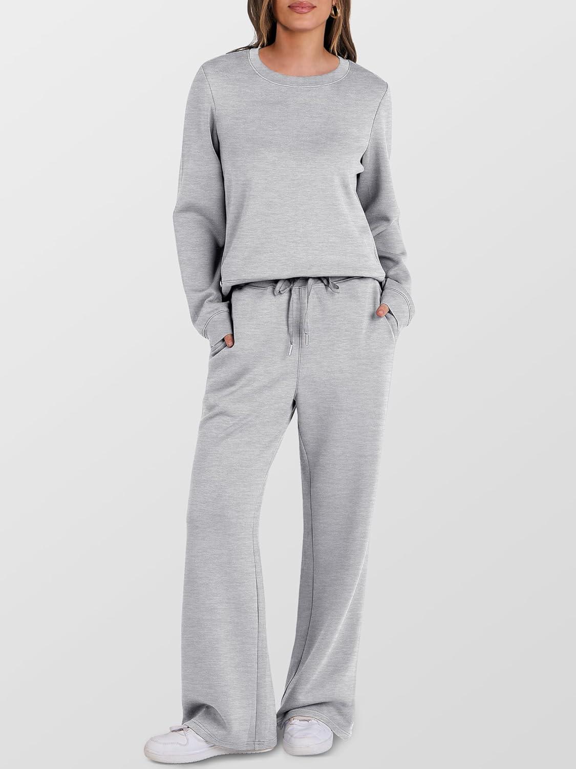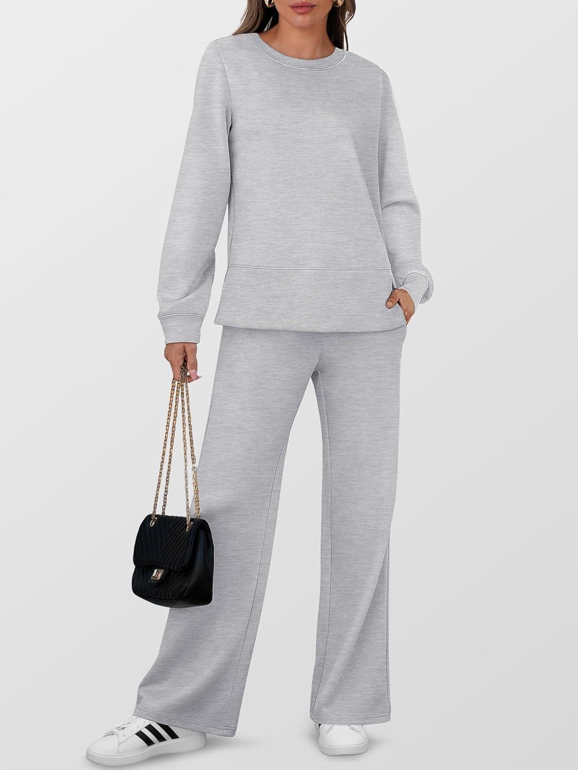 ANRABESS Women’s 2 Piece Lounge Sets Casual Travel Outfits Wide Leg Tracksuit Sweatsuits Matching Set 2026 Fall Clothes(Grey)