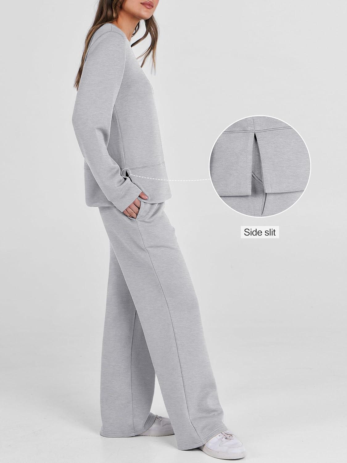 ANRABESS Women's 2 Piece Lounge Sets Casual Travel Outfits Wide Leg Tracksuit Sweatsuits Matching Set 2026 Fall Clothes(Grey)