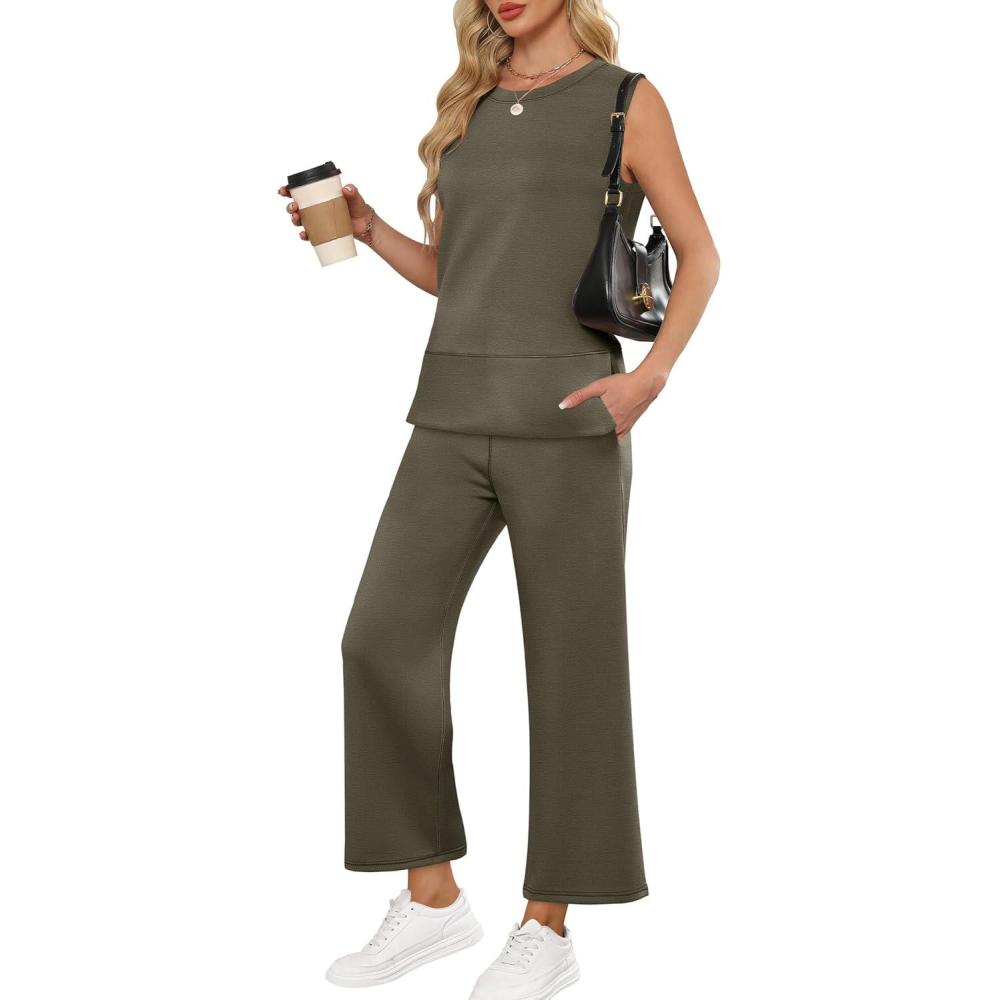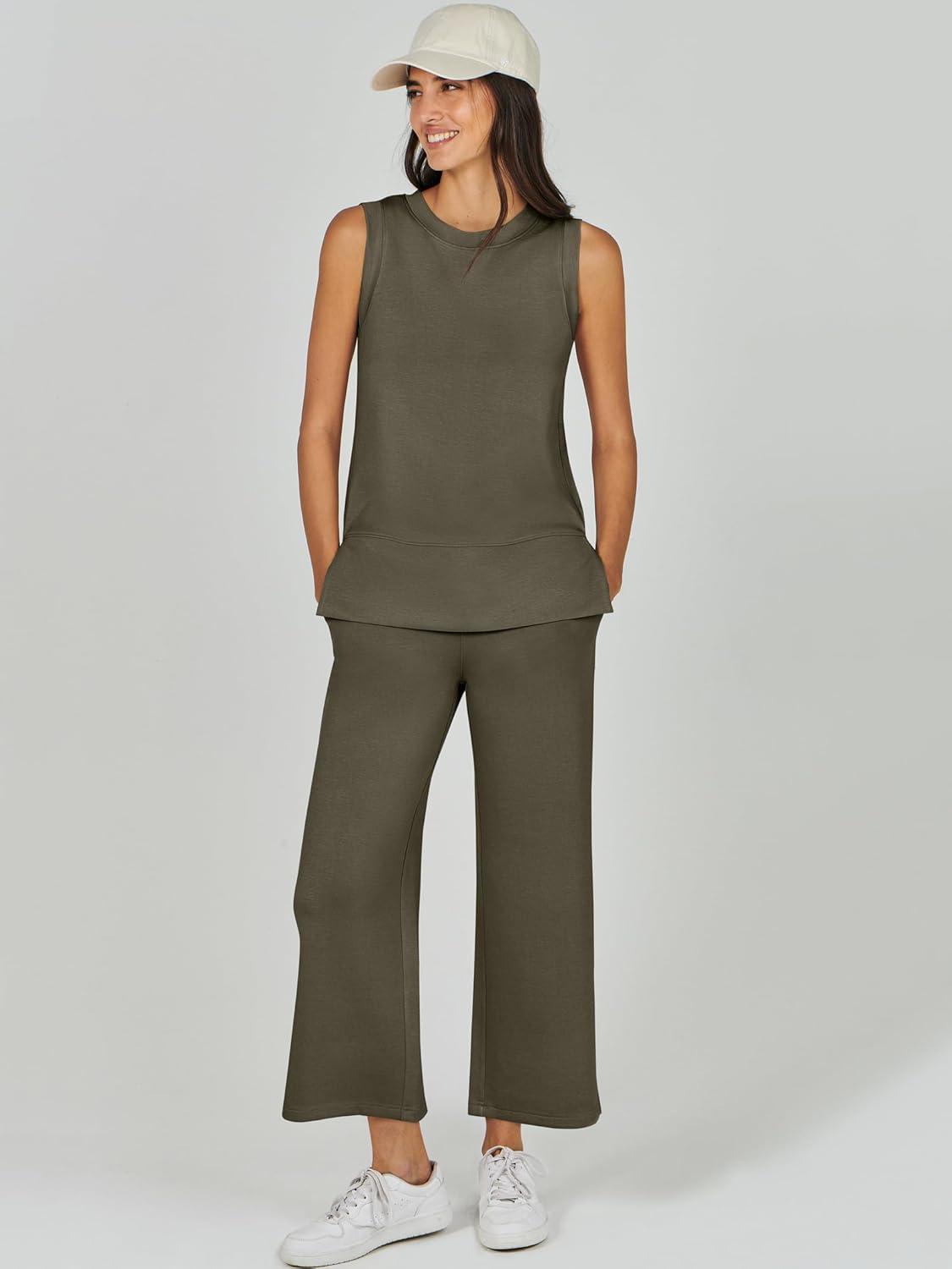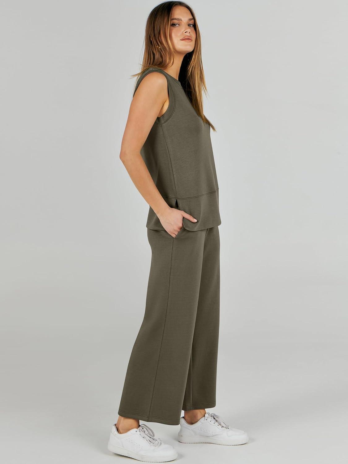 ANRABESS Women’s 2 Piece Outfits 2025 Summer Beach Vacation Clothes Fall Travel Casual Lounge Matching Sets Sweatsuits(Army Green)