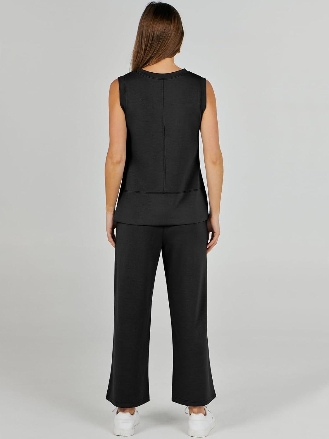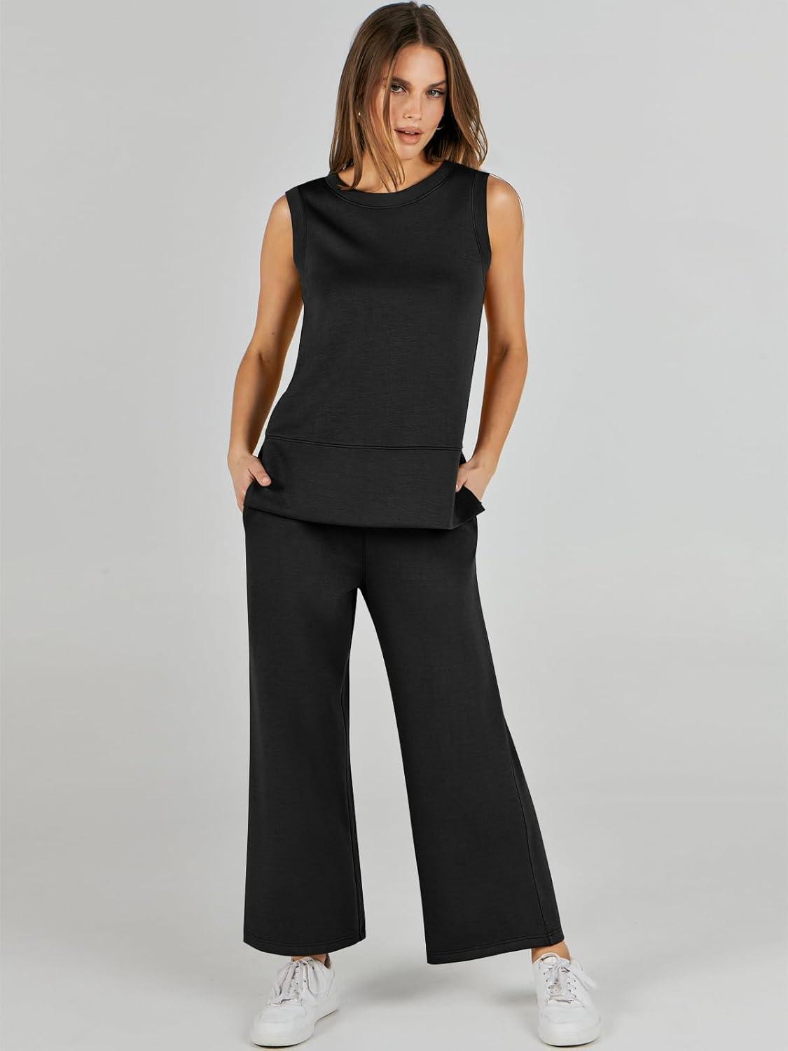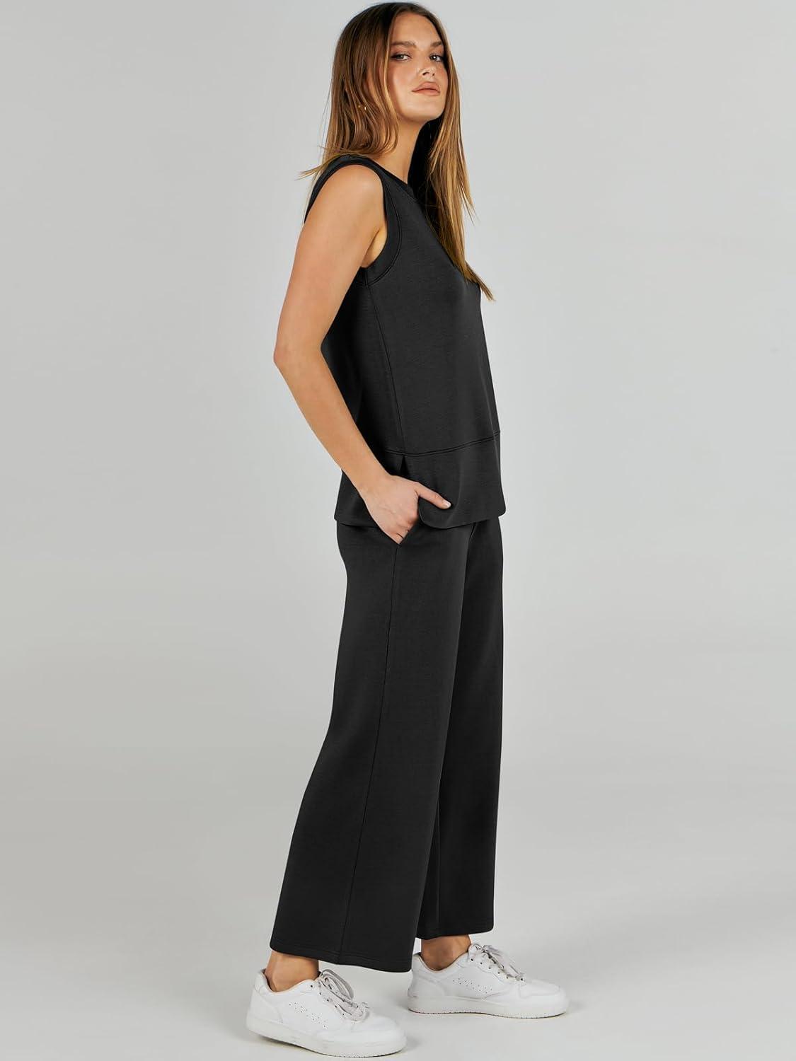 ANRABESS Women’s 2 Piece Outfits 2025 Summer Beach Vacation Clothes Fall Travel Casual Lounge Matching Sets Sweatsuits(Black)