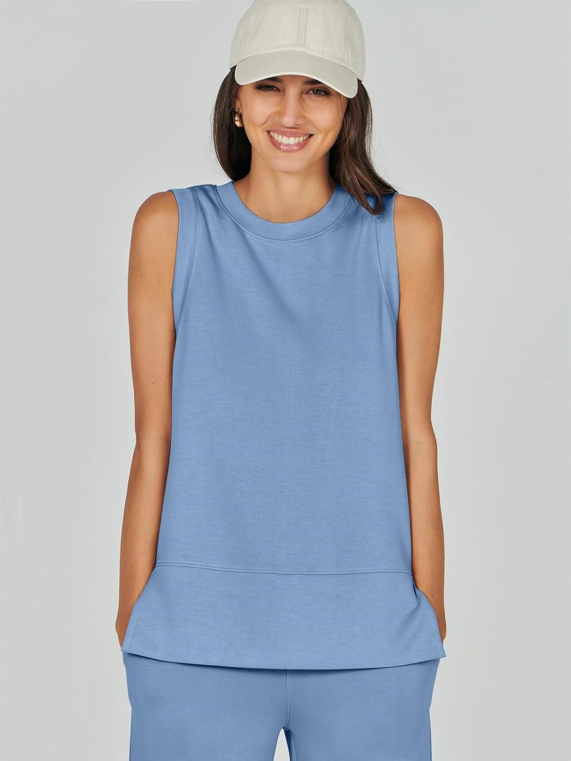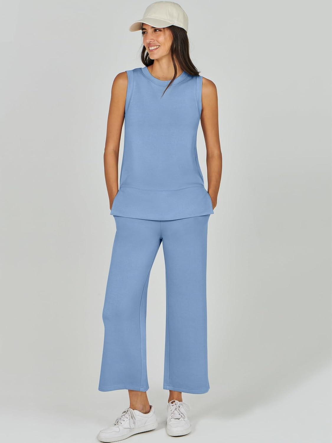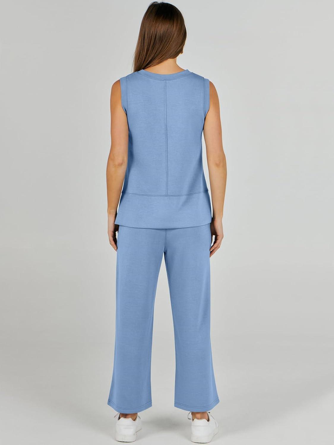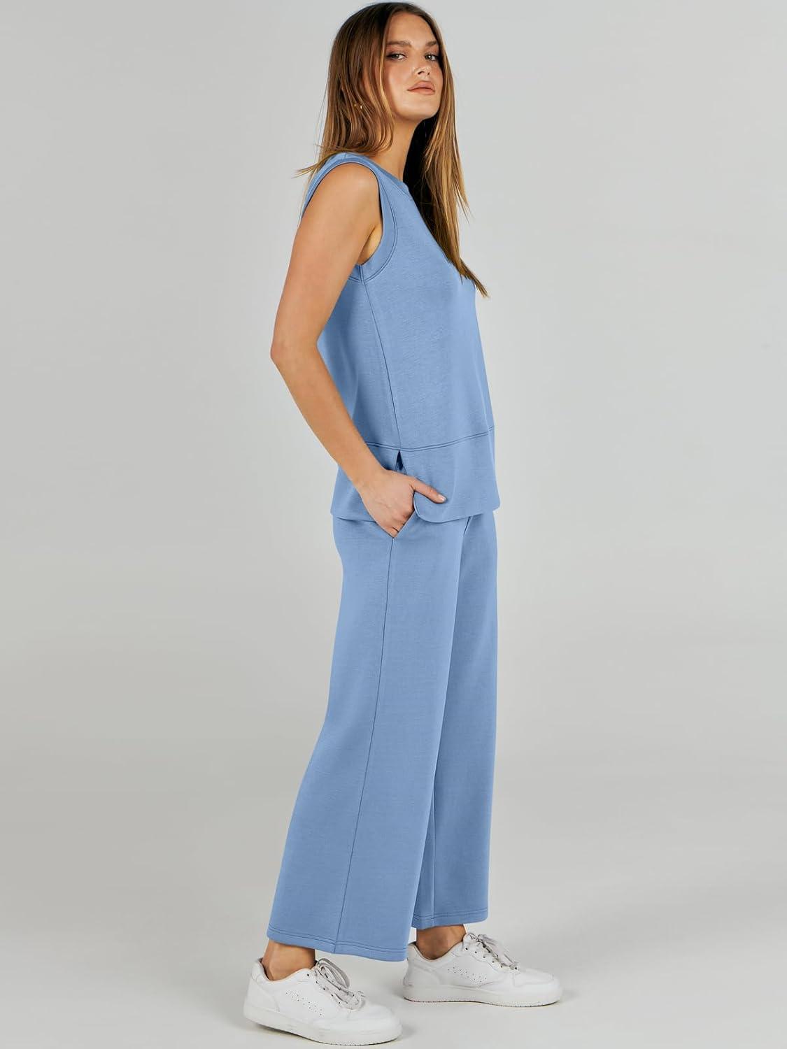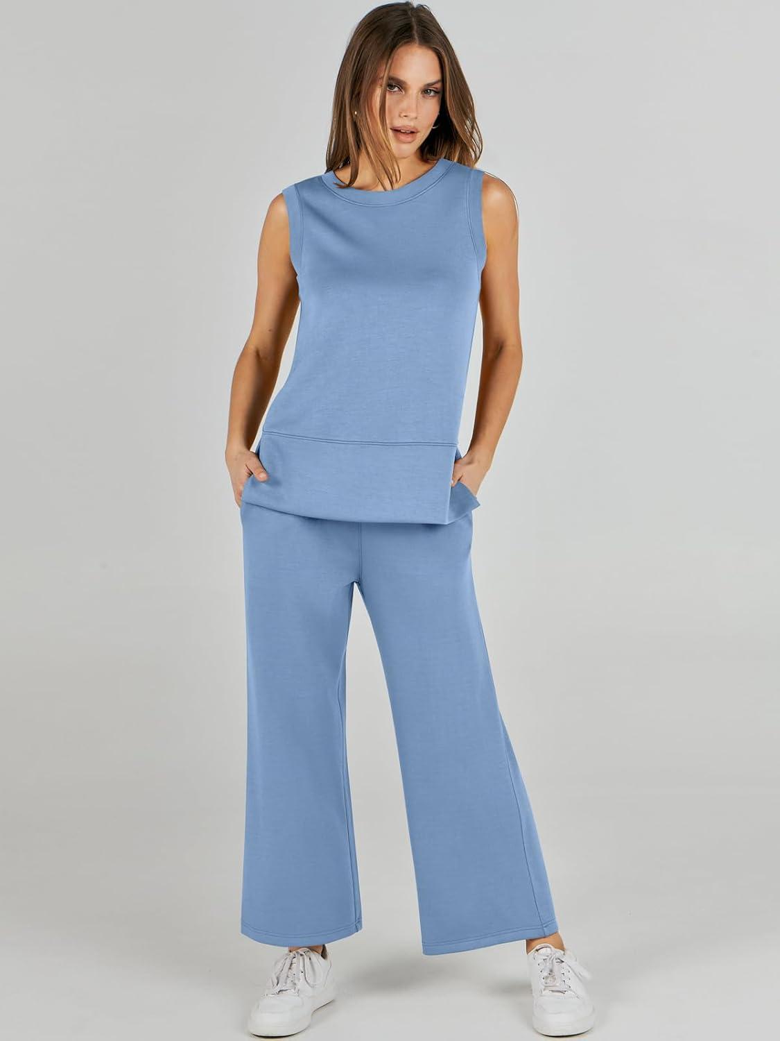ANRABESS Women’s 2 Piece Outfits 2025 Summer Beach Vacation Clothes Fall Travel Casual Lounge Matching Sets Sweatsuits(Blue)