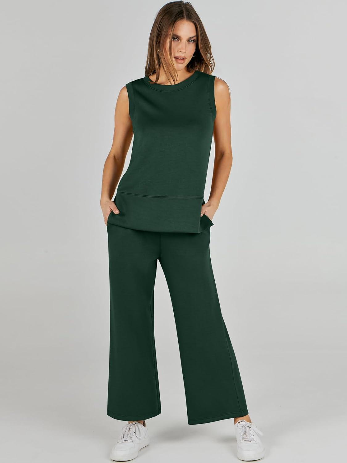 ANRABESS Women’s 2 Piece Outfits 2025 Summer Beach Vacation Clothes Fall Travel Casual Lounge Matching Sets Sweatsuits(Deep Green)