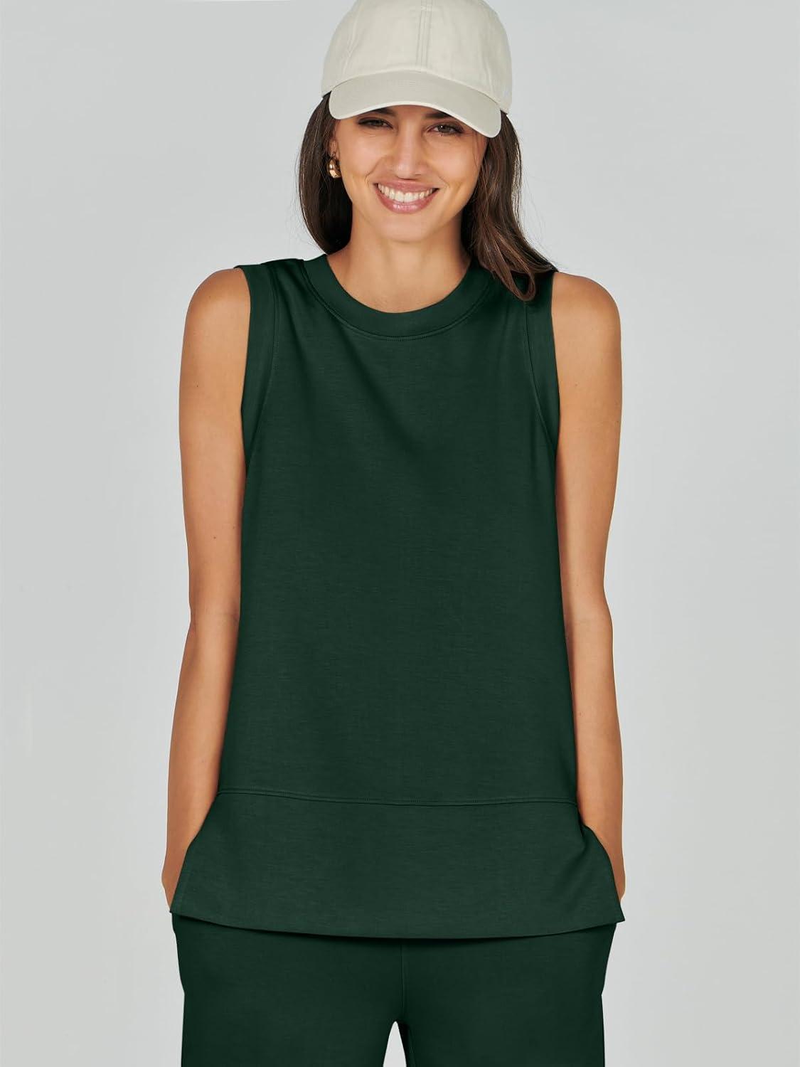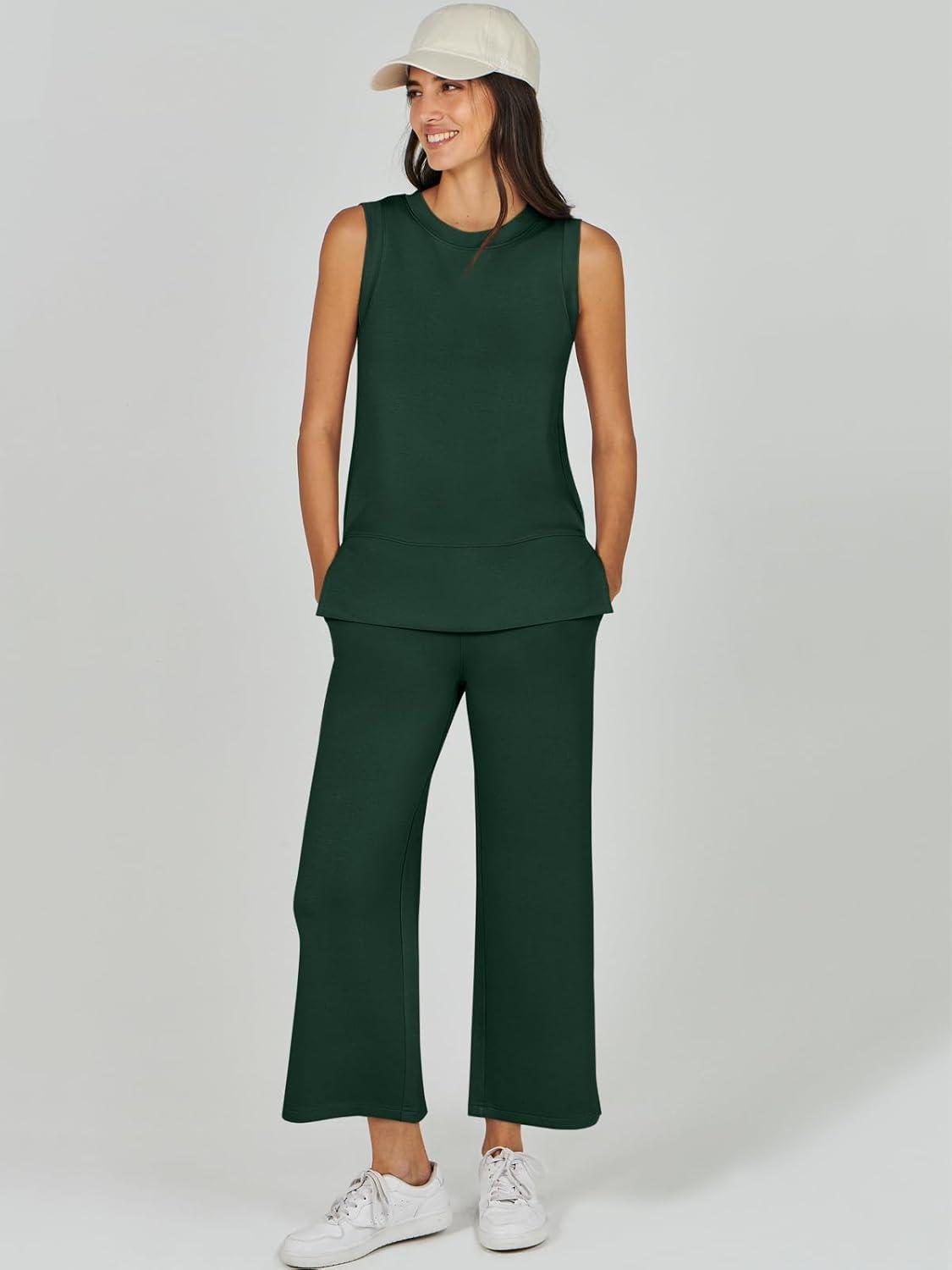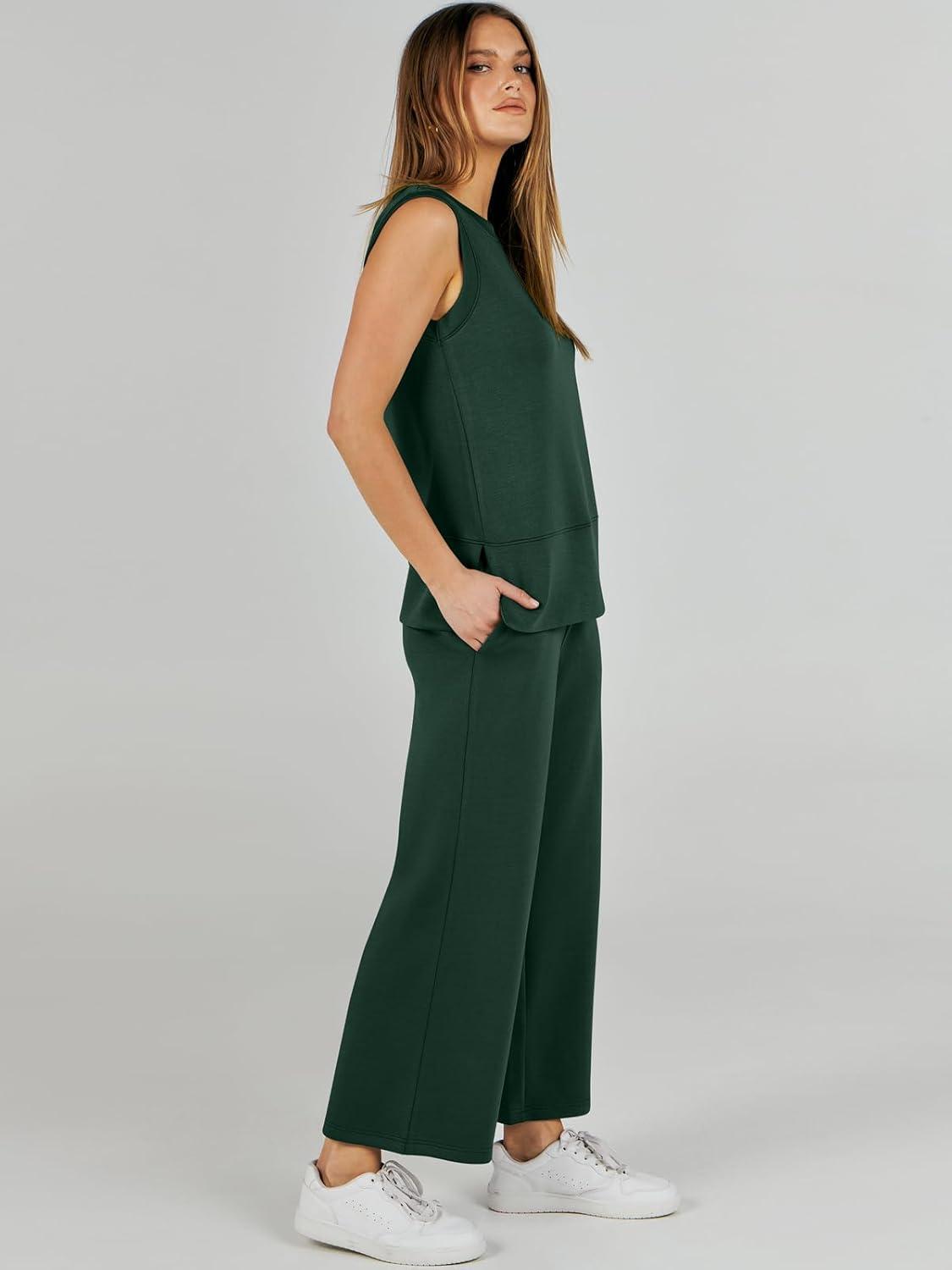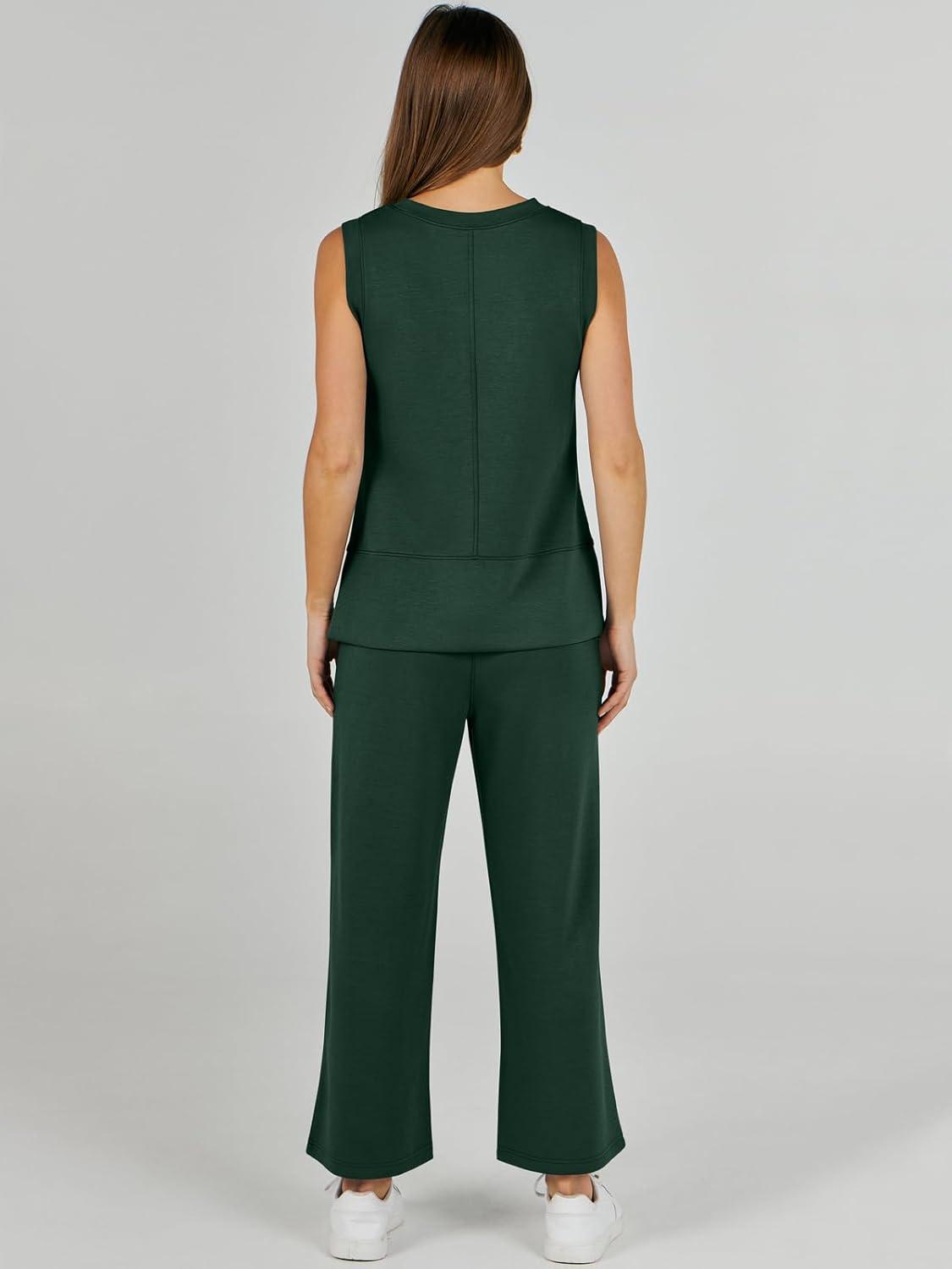 ANRABESS Women's 2 Piece Outfits 2025 Summer Beach Vacation Clothes Fall Travel Casual Lounge Matching Sets Sweatsuits(Deep Green)