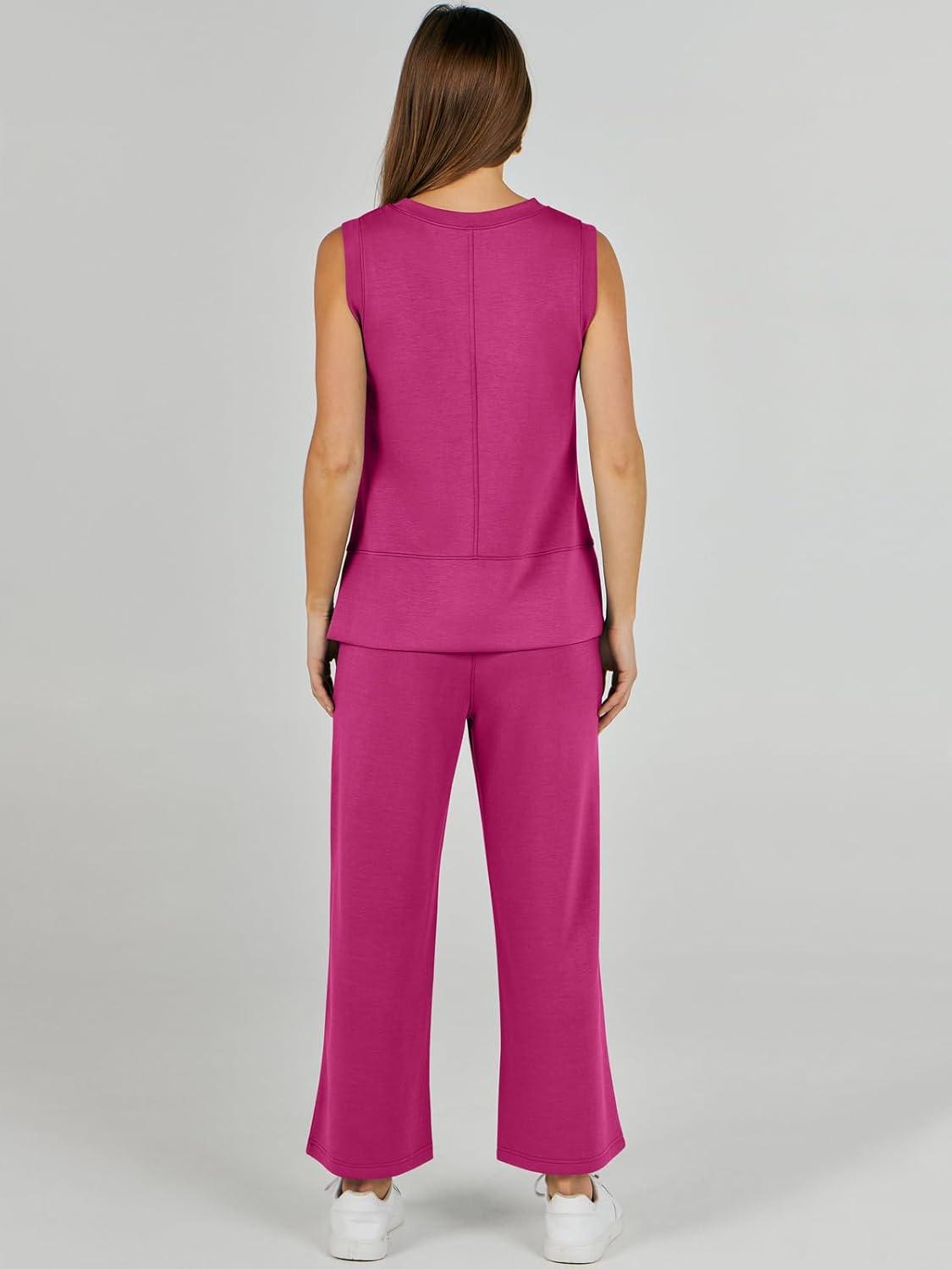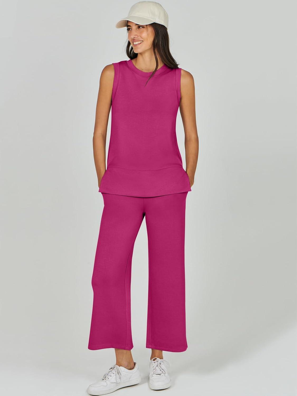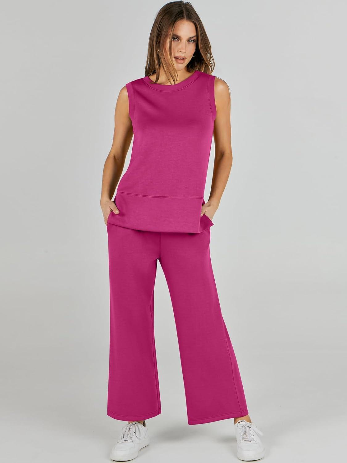 ANRABESS Women’s 2 Piece Outfits 2025 Summer Beach Vacation Clothes Fall Travel Casual Lounge Matching Sets Sweatsuits(Rose Red)