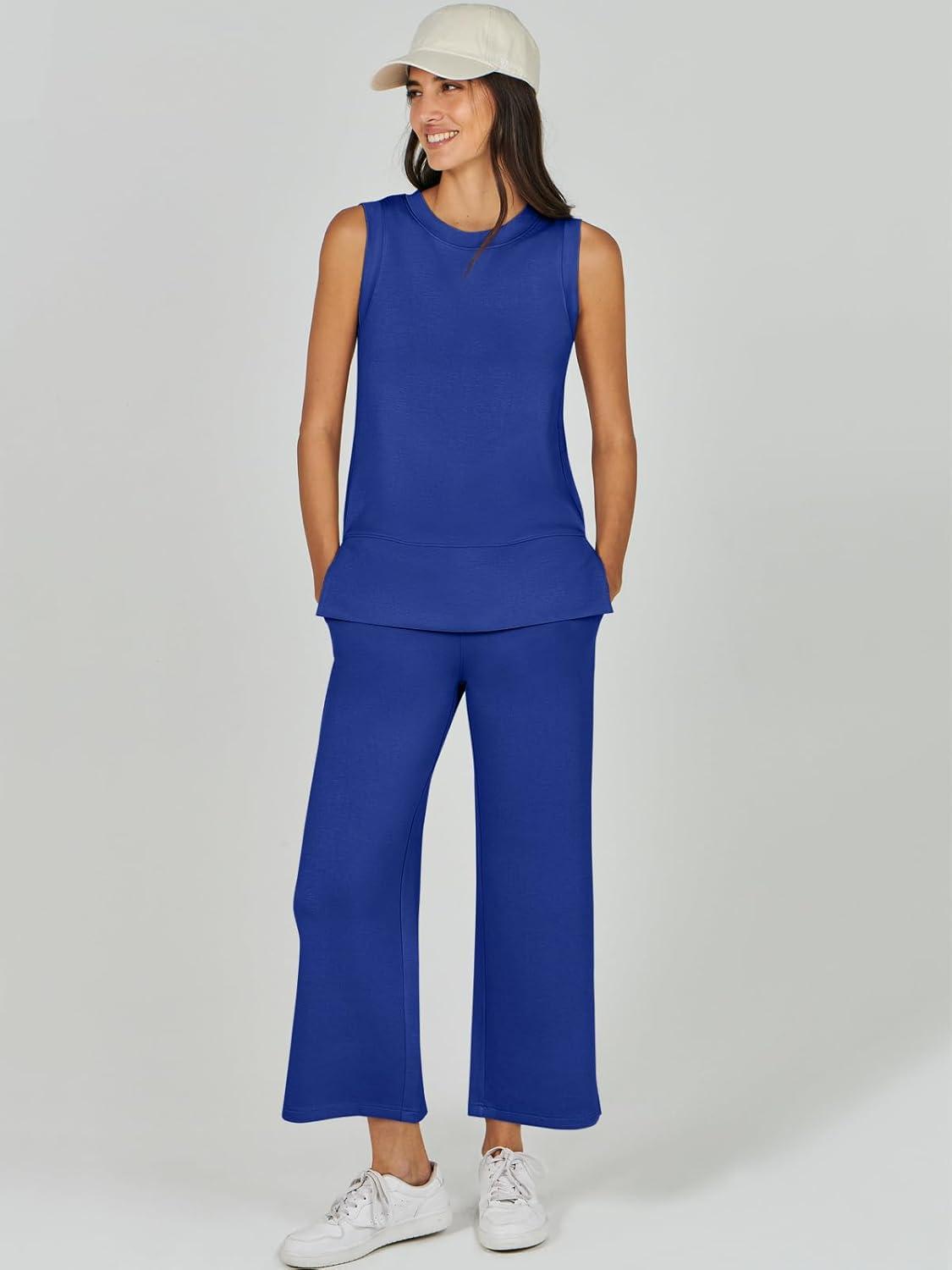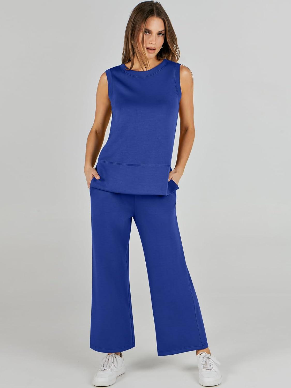 ANRABESS Women’s 2 Piece Outfits 2025 Summer Beach Vacation Clothes Fall Travel Casual Lounge Matching Sets Sweatsuits(Royal Blue)