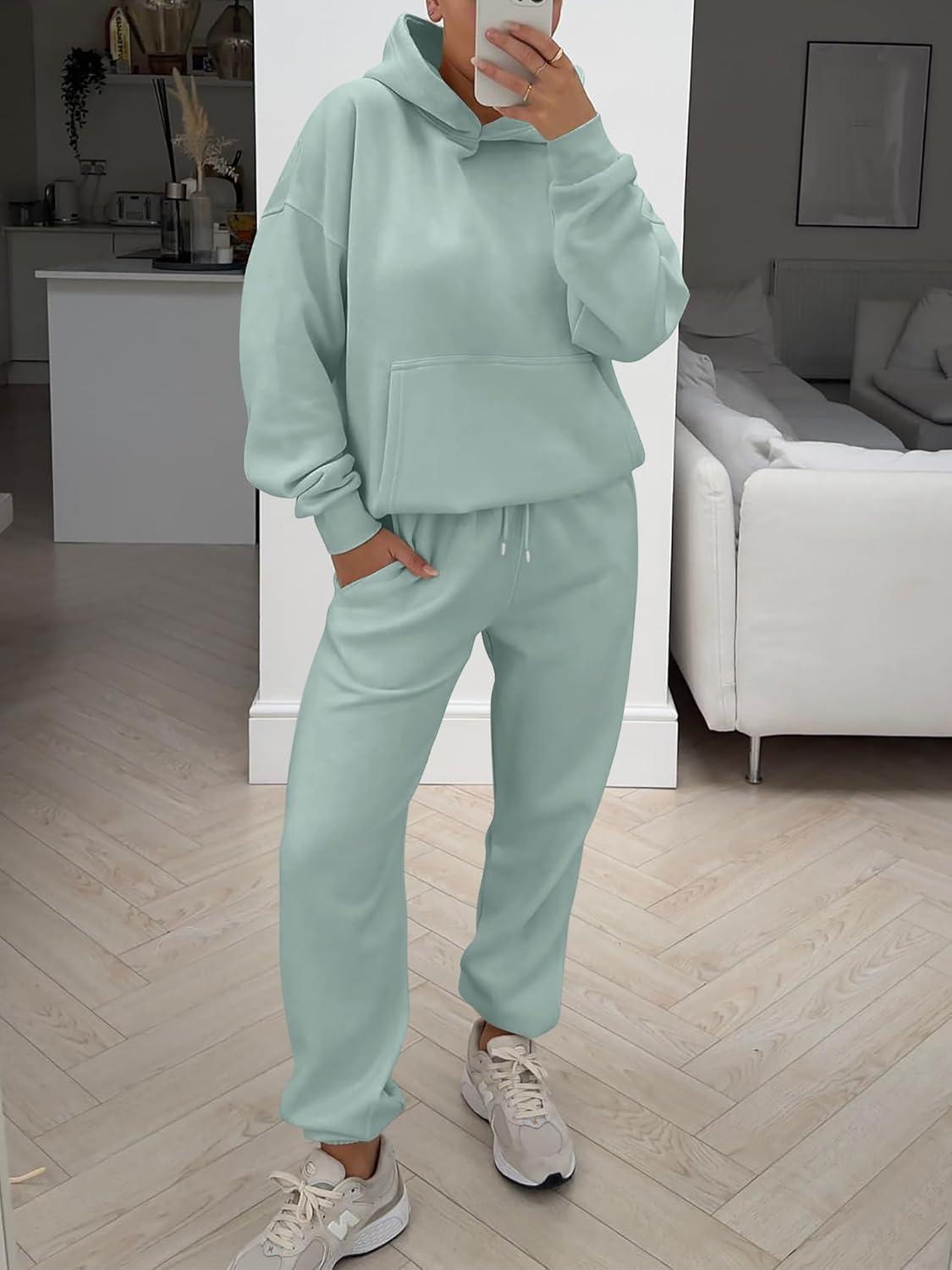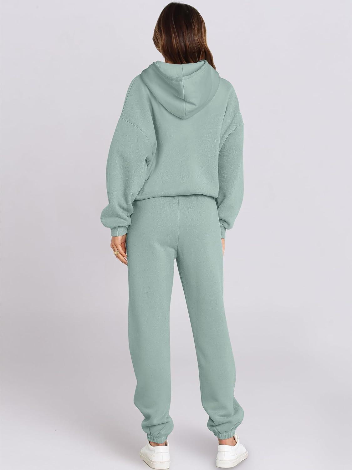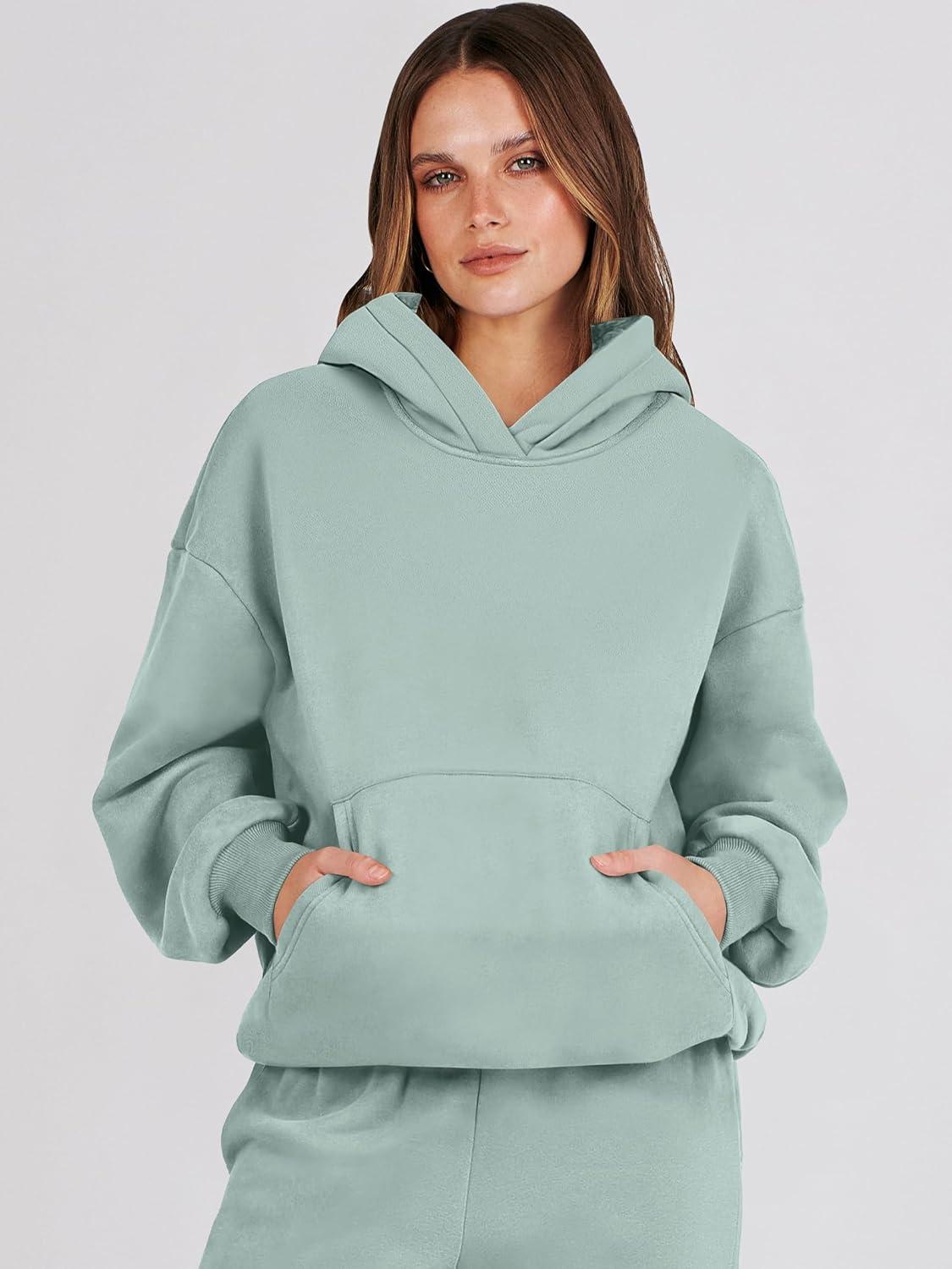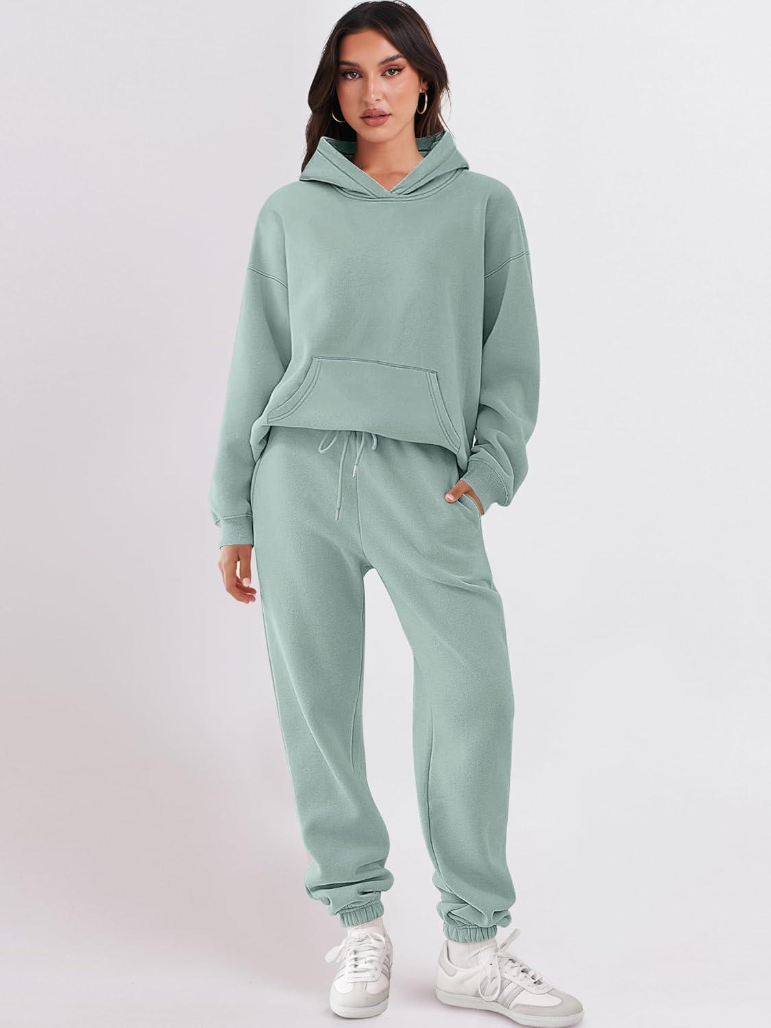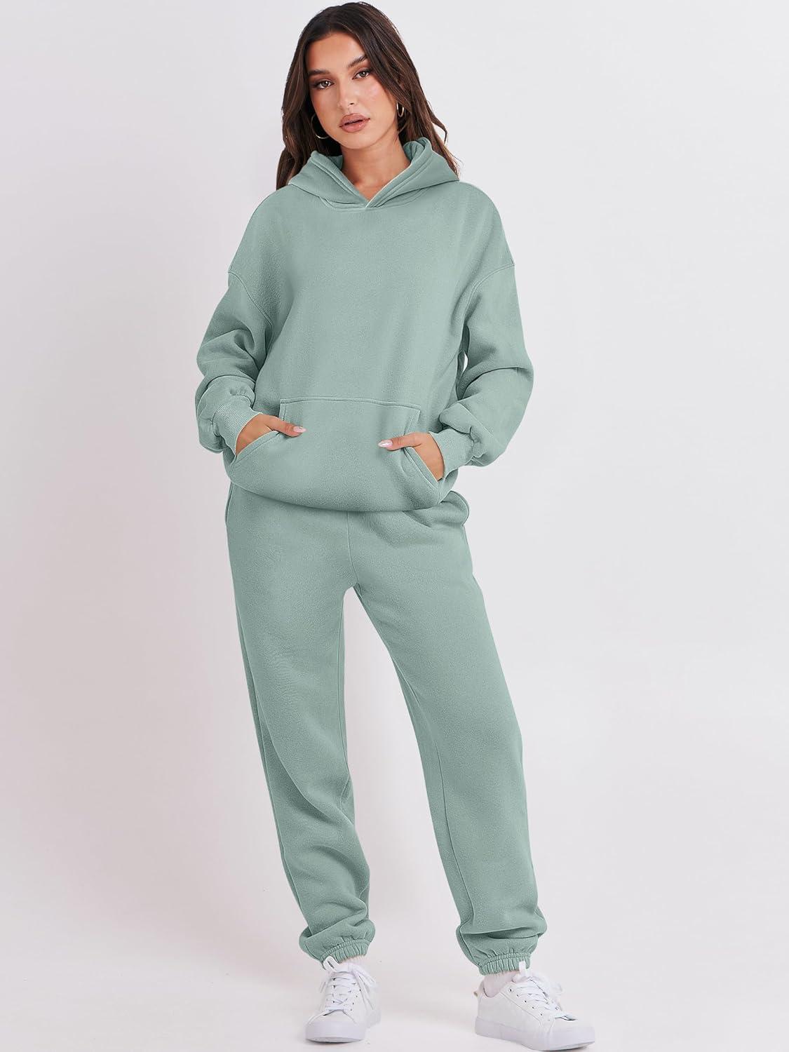 ANRABESS Womens 2 Piece Outfits Lounge Hoodie Oversized Sweatshirt Jogger Sweatpants Y2K Tracksuit Sweatsuit Set Fall Clothes(Lake)