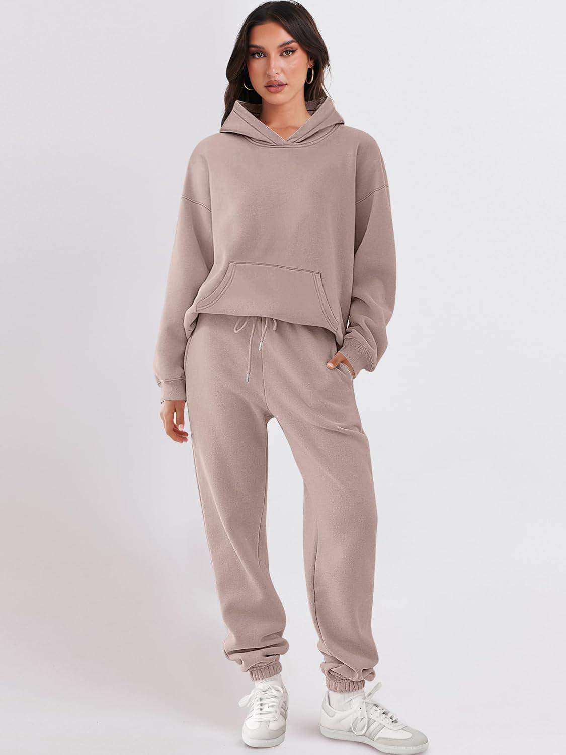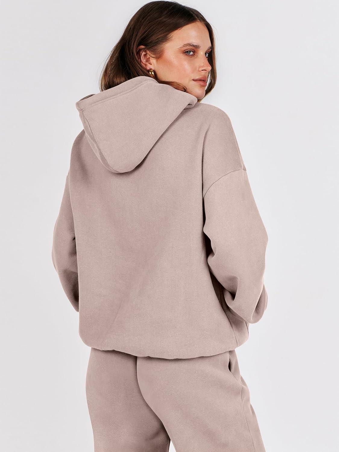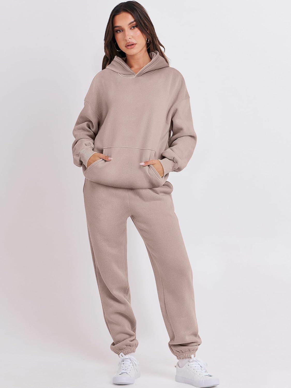 ANRABESS Womens 2 Piece Outfits Lounge Hoodie Oversized Sweatshirt Jogger Sweatpants Y2K Tracksuit Sweatsuit Set Fall Clothes(Light Khaki)