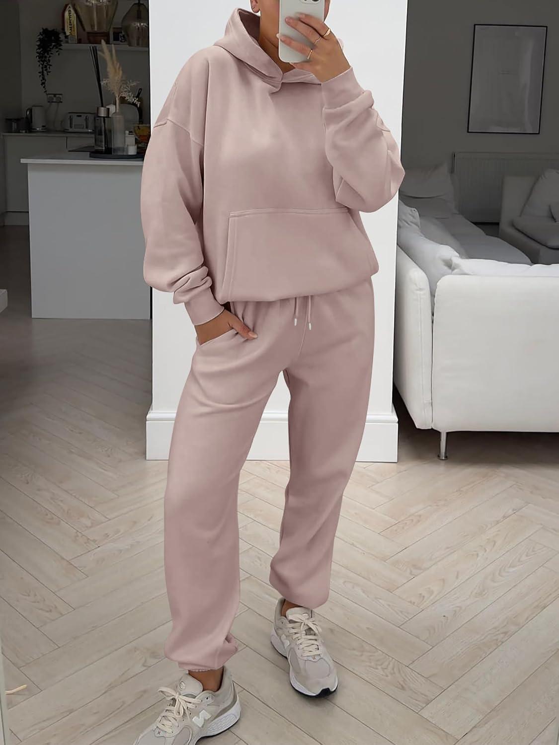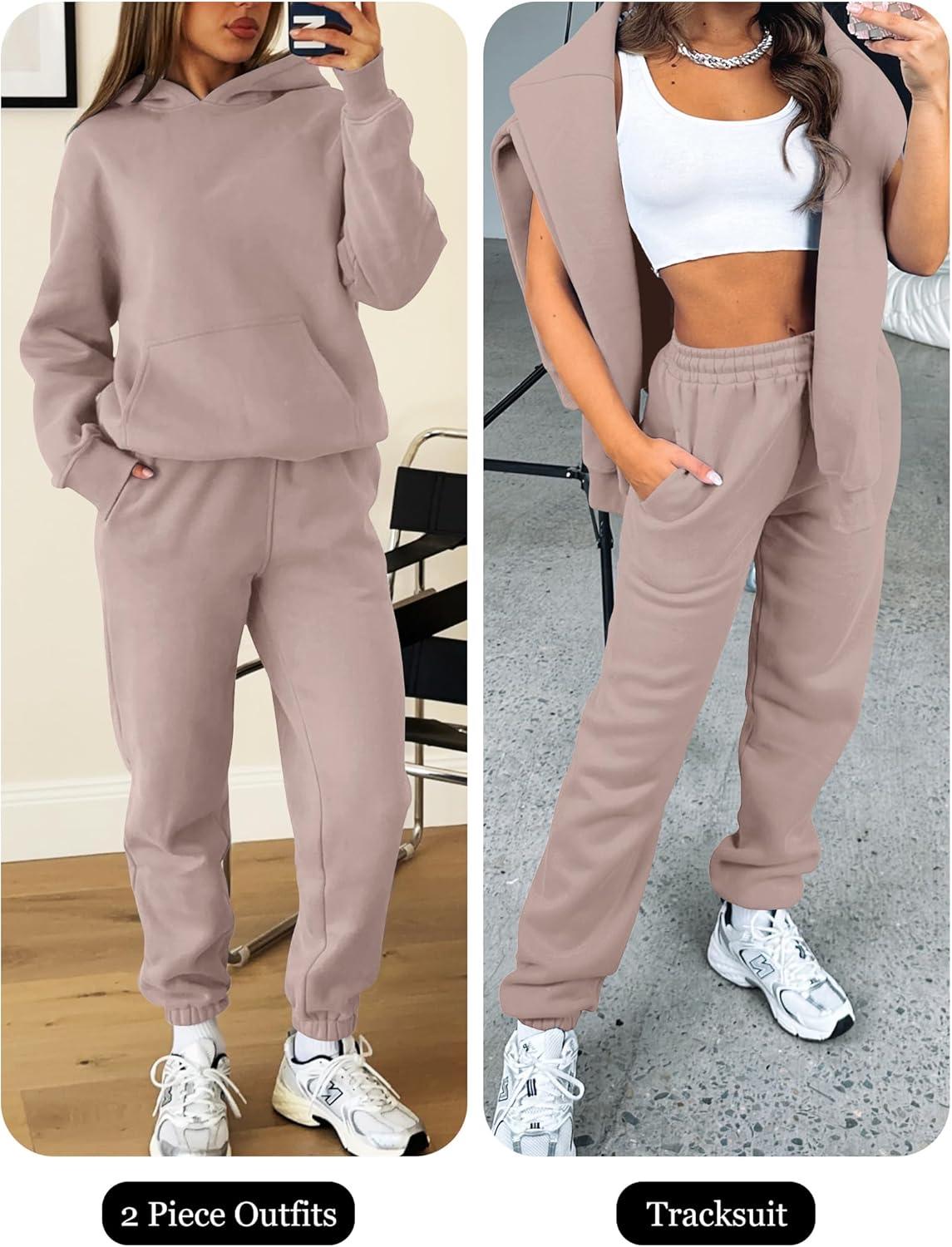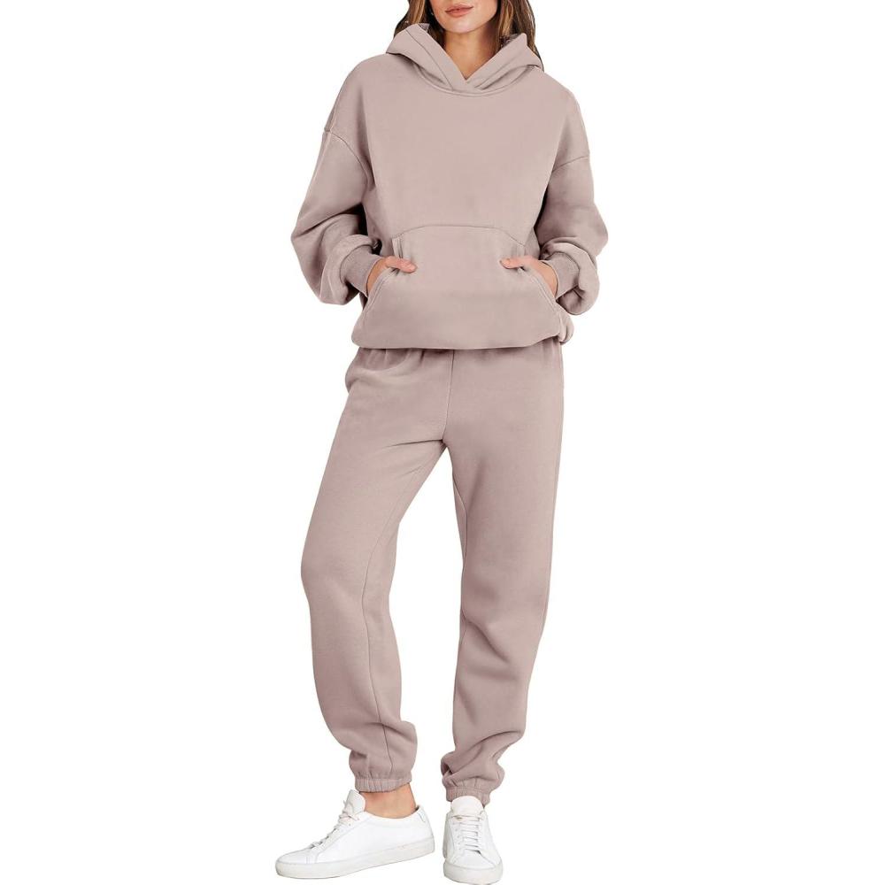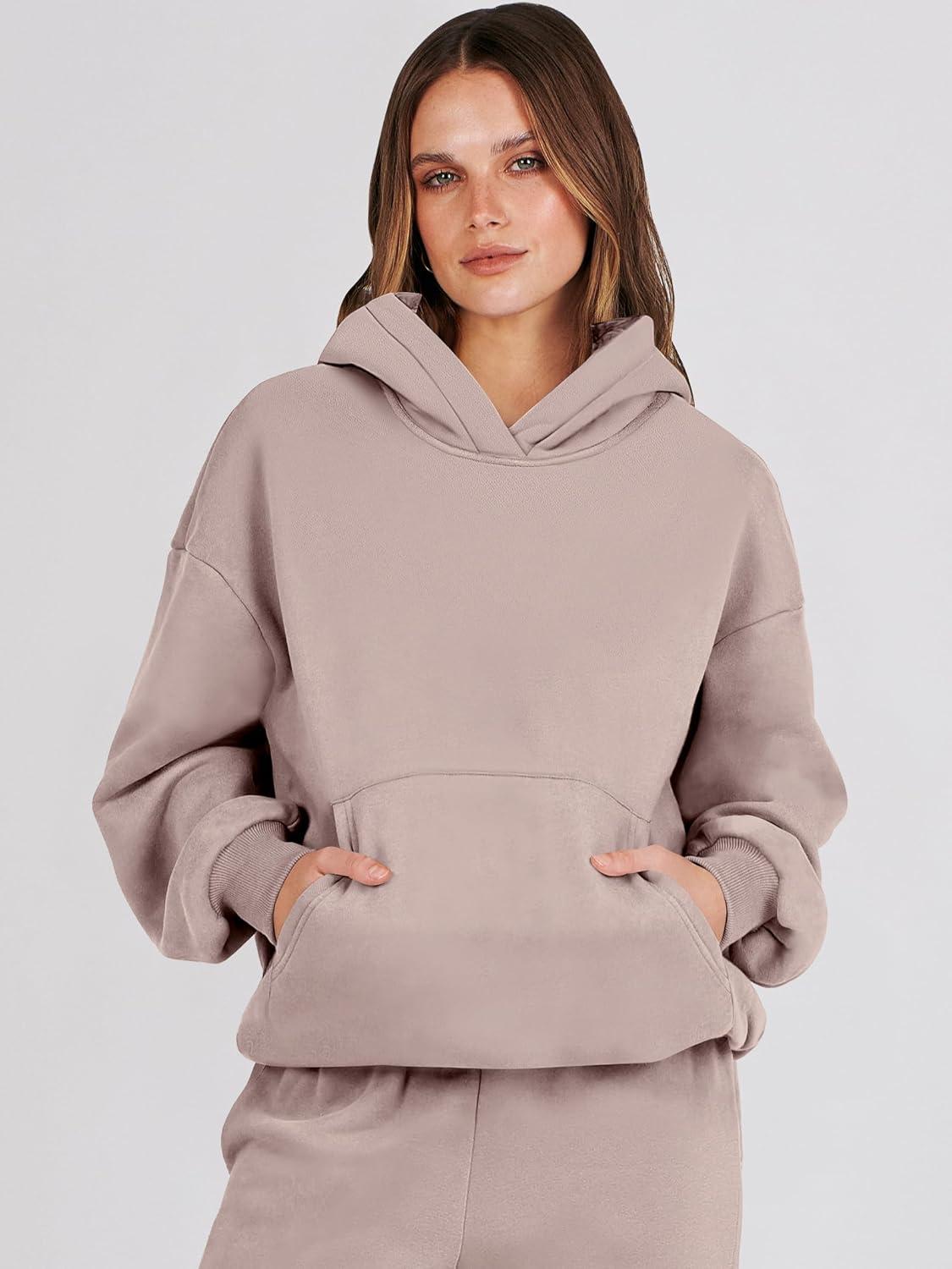 ANRABESS Womens 2 Piece Outfits Lounge Hoodie Oversized Sweatshirt Jogger Sweatpants Y2K Tracksuit Sweatsuit Set Fall Clothes(Light Khaki)