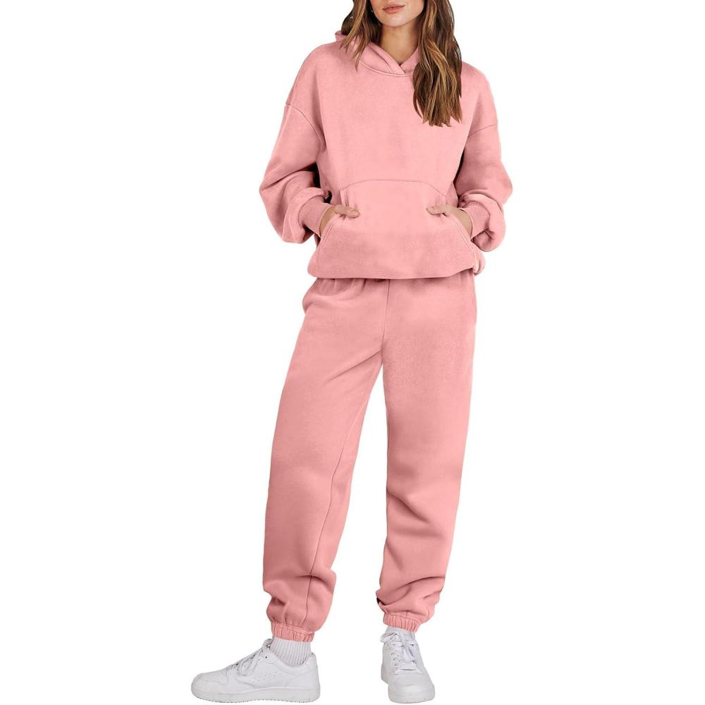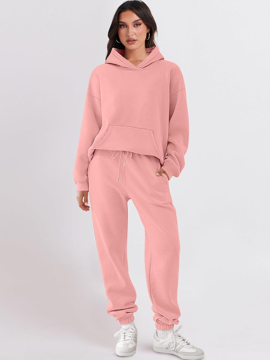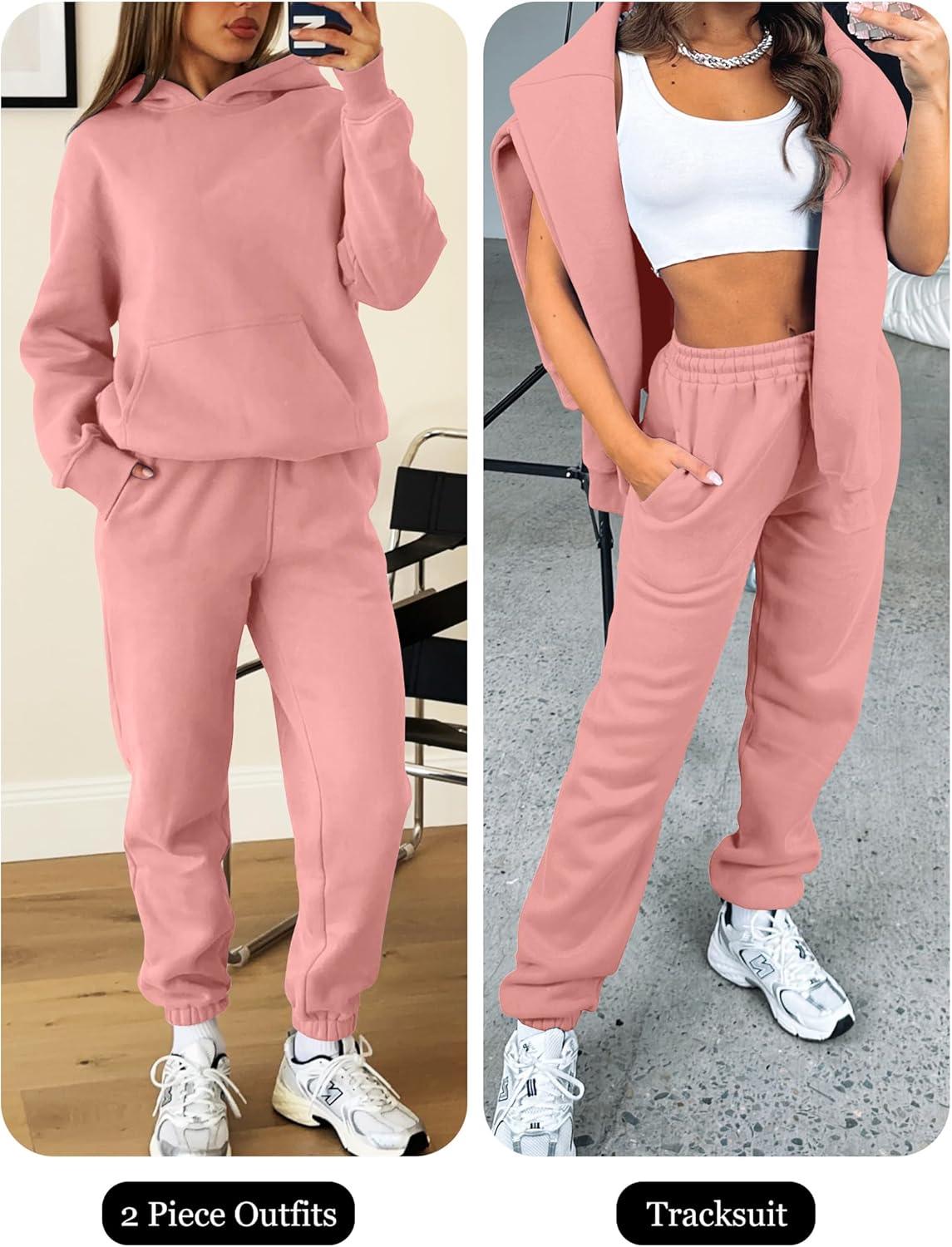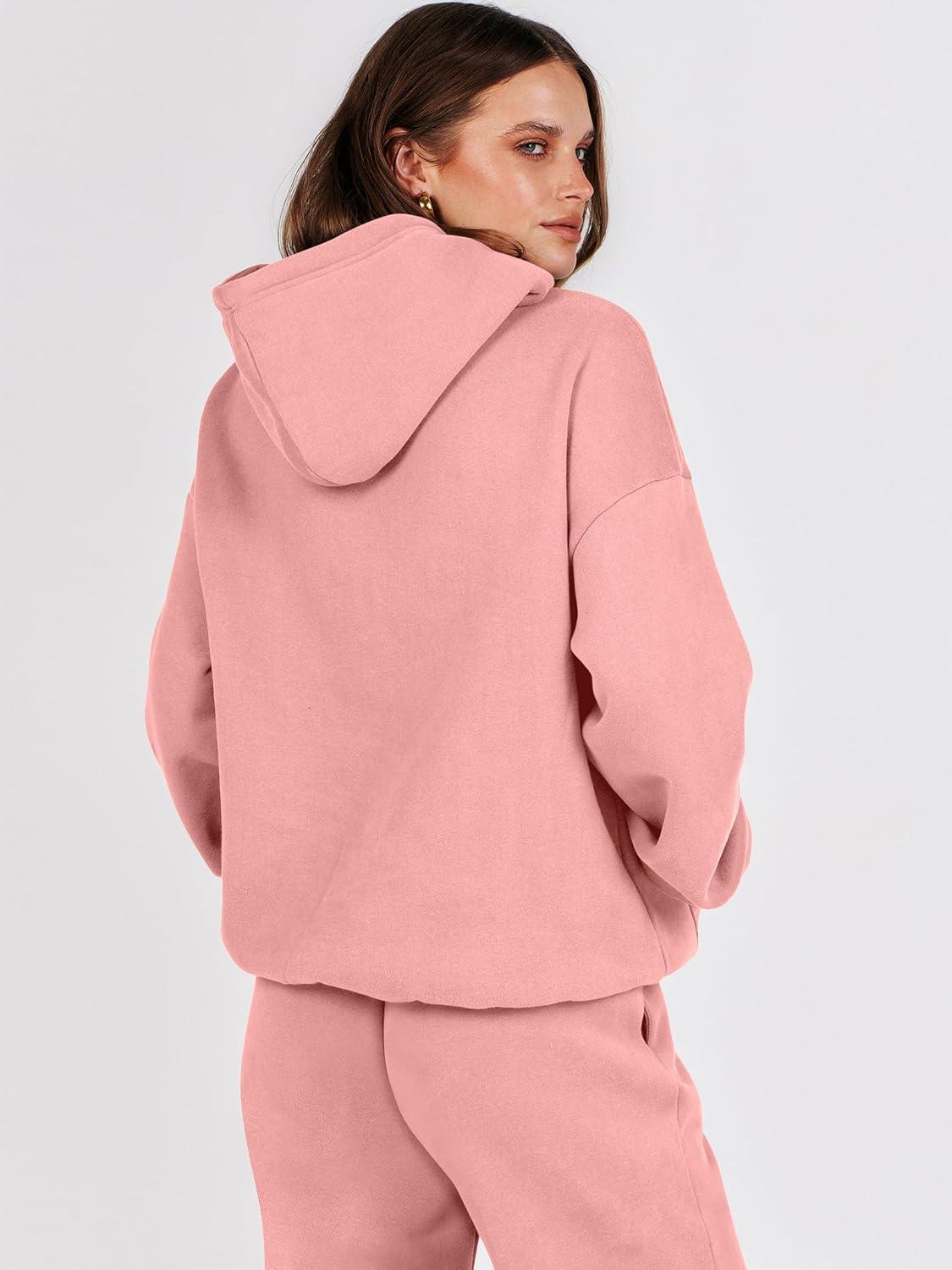ANRABESS Womens 2 Piece Outfits Lounge Hoodie Oversized Sweatshirt Jogger Sweatpants Y2K Tracksuit Sweatsuit Set Fall Clothes(Pink)