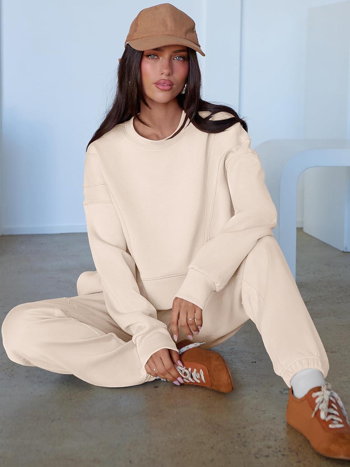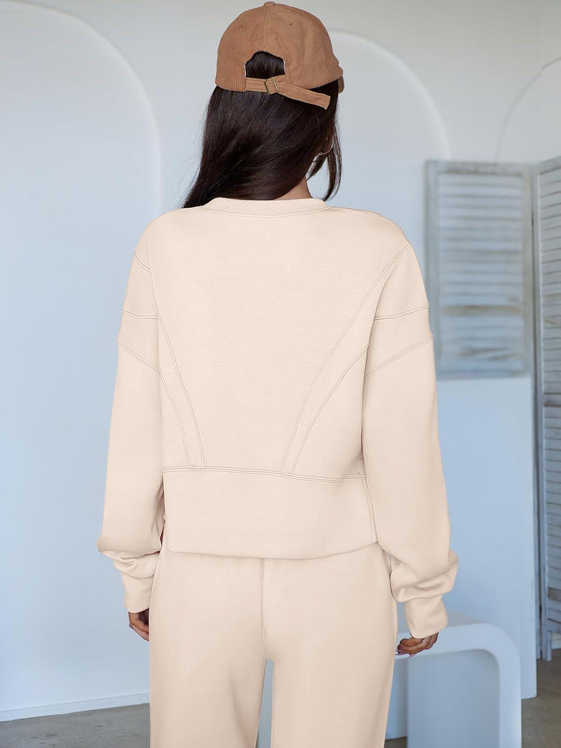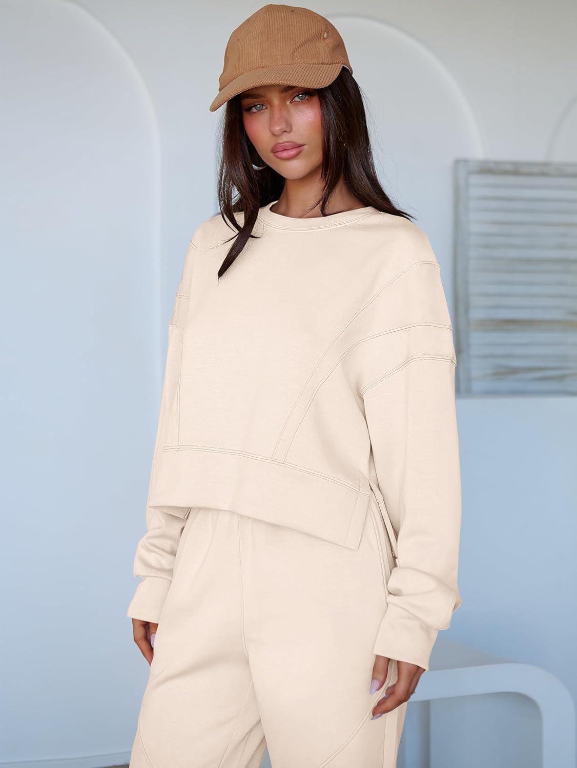 ANRABESS Womens 2 Piece Outfits Lounge Sets Cropped Sweatshirt & Joggers Fashion Sweatsuit Sweat Set 2025 Fall Travel Outfits(Apricot)