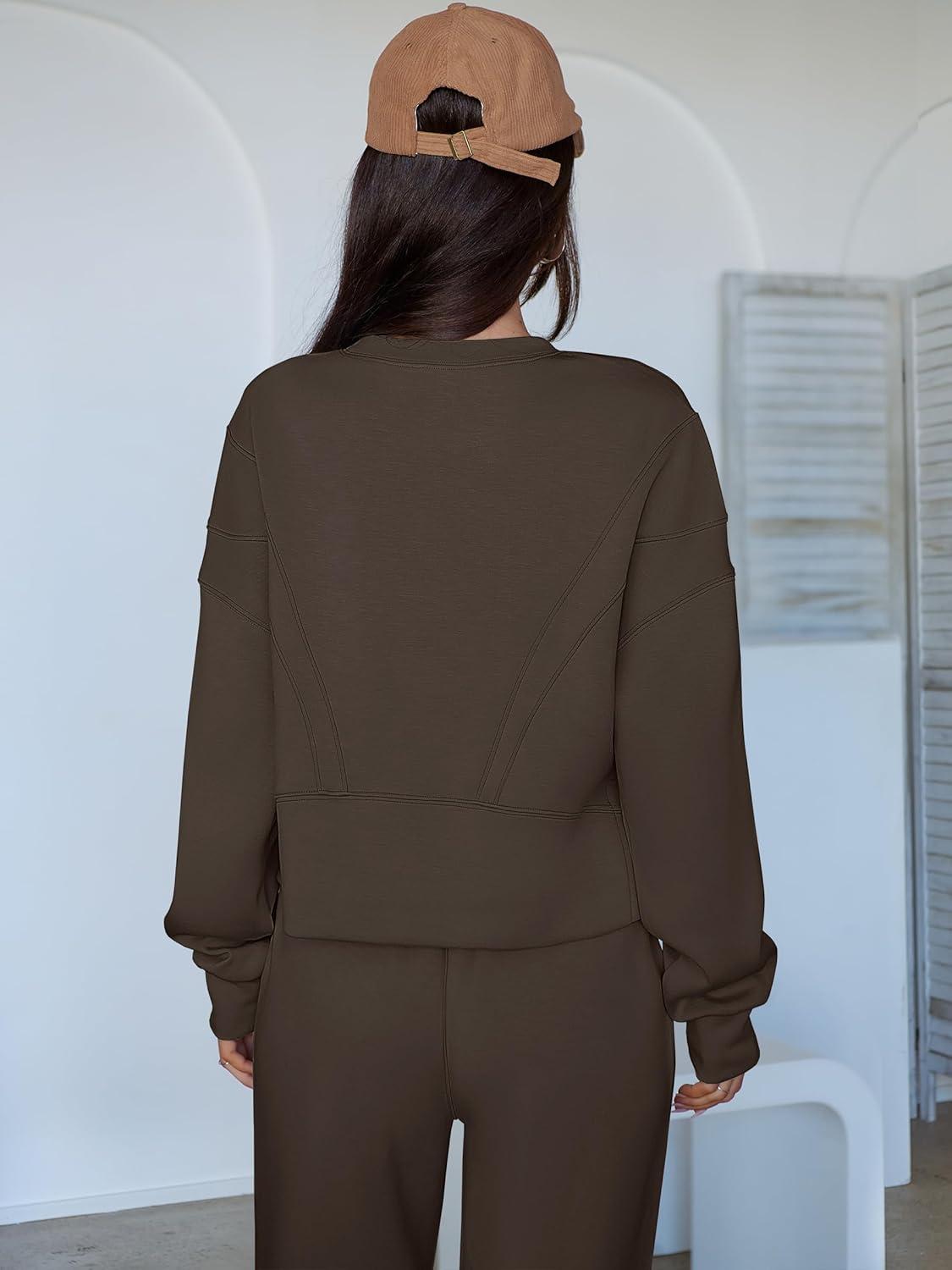 ANRABESS Womens 2 Piece Outfits Lounge Sets Cropped Sweatshirt & Joggers Fashion Sweatsuit Sweat Set 2025 Fall Travel Outfits(Coffee)