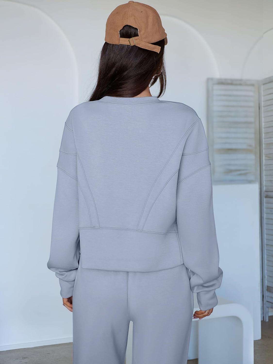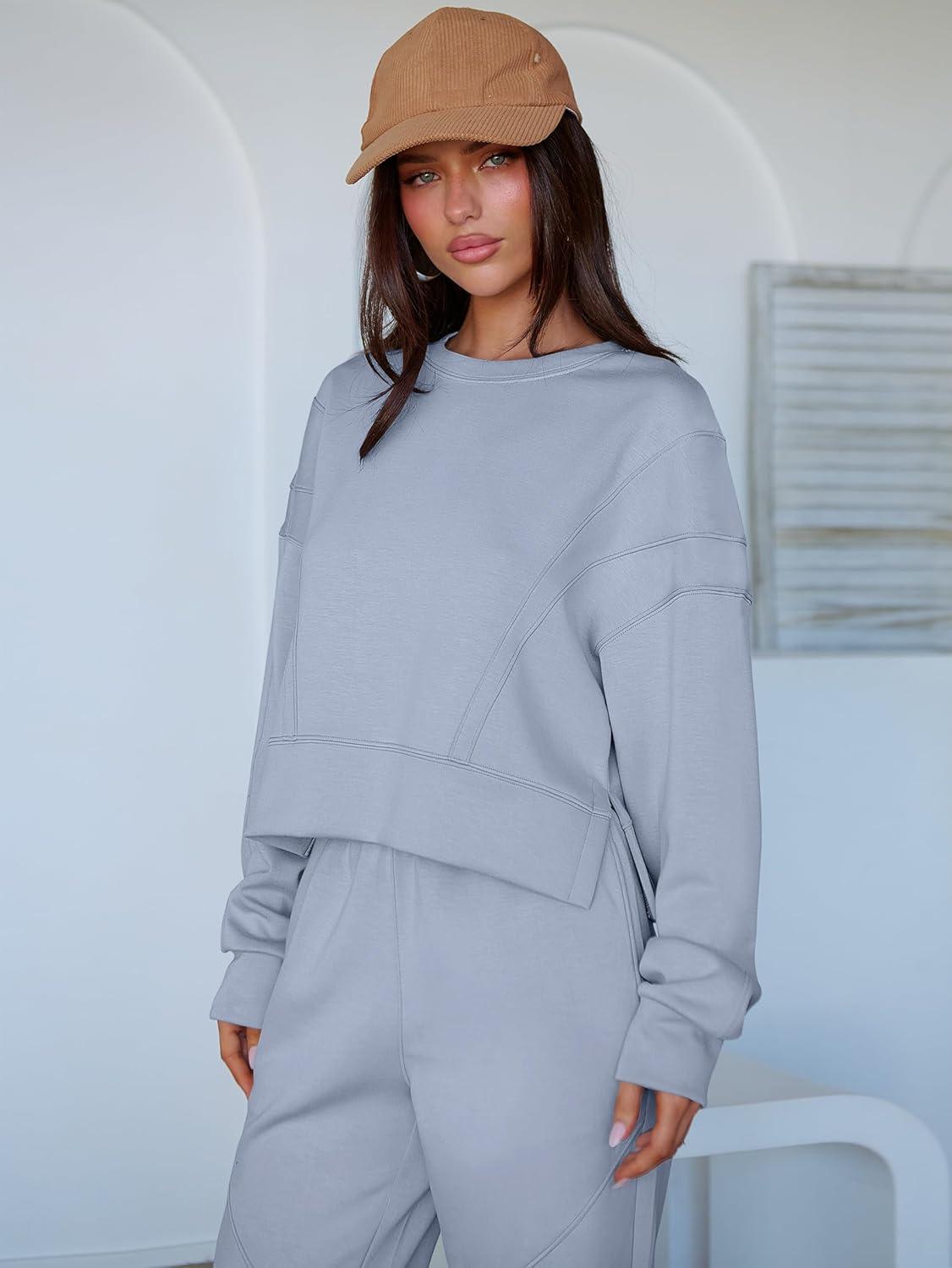 ANRABESS Womens 2 Piece Outfits Lounge Sets Cropped Sweatshirt & Joggers Fashion Sweatsuit Sweat Set 2025 Fall Travel Outfits(Sky Blue)