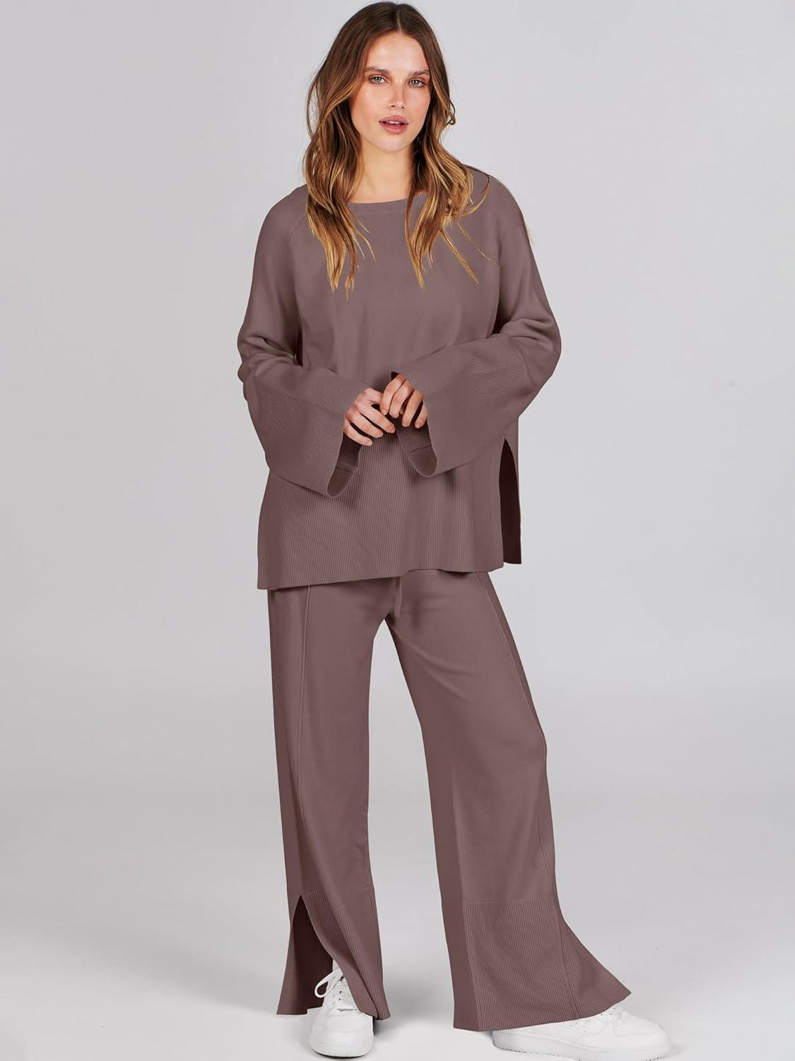 Be the first to review “ANRABESS Womens 2 Piece Outfits Oversized Knit Sweater Set Wide Leg Pant Cozy Lounge Matching Pajama Sets 2025 Trendy Clothes(Coffee)”
