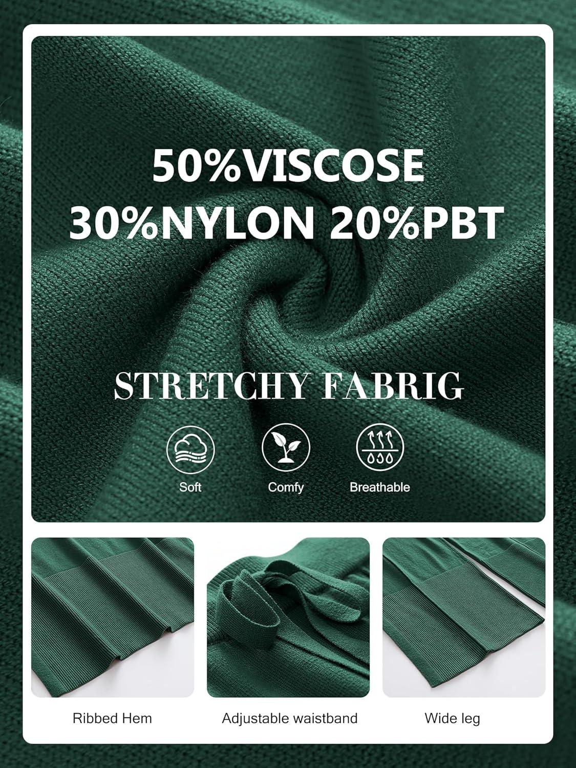 ANRABESS Womens 2 Piece Outfits Oversized Knit Sweater Set Wide Leg Pant Cozy Lounge Matching Pajama Sets 2025 Trendy Clothes(Grass Green)