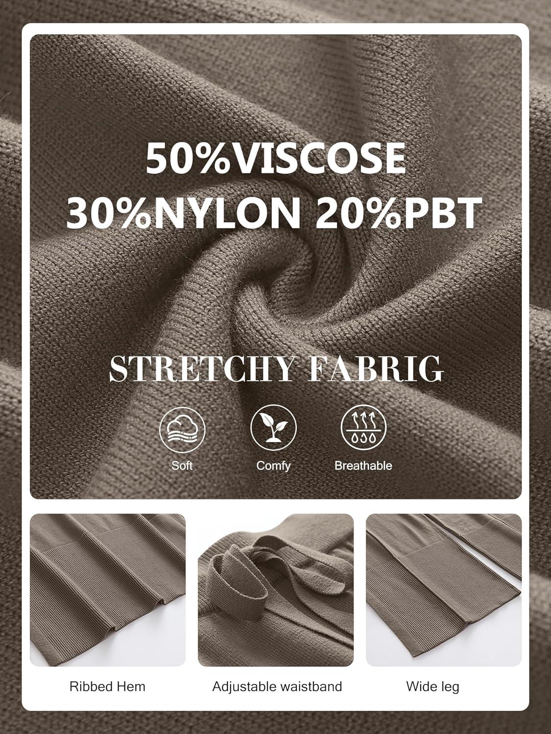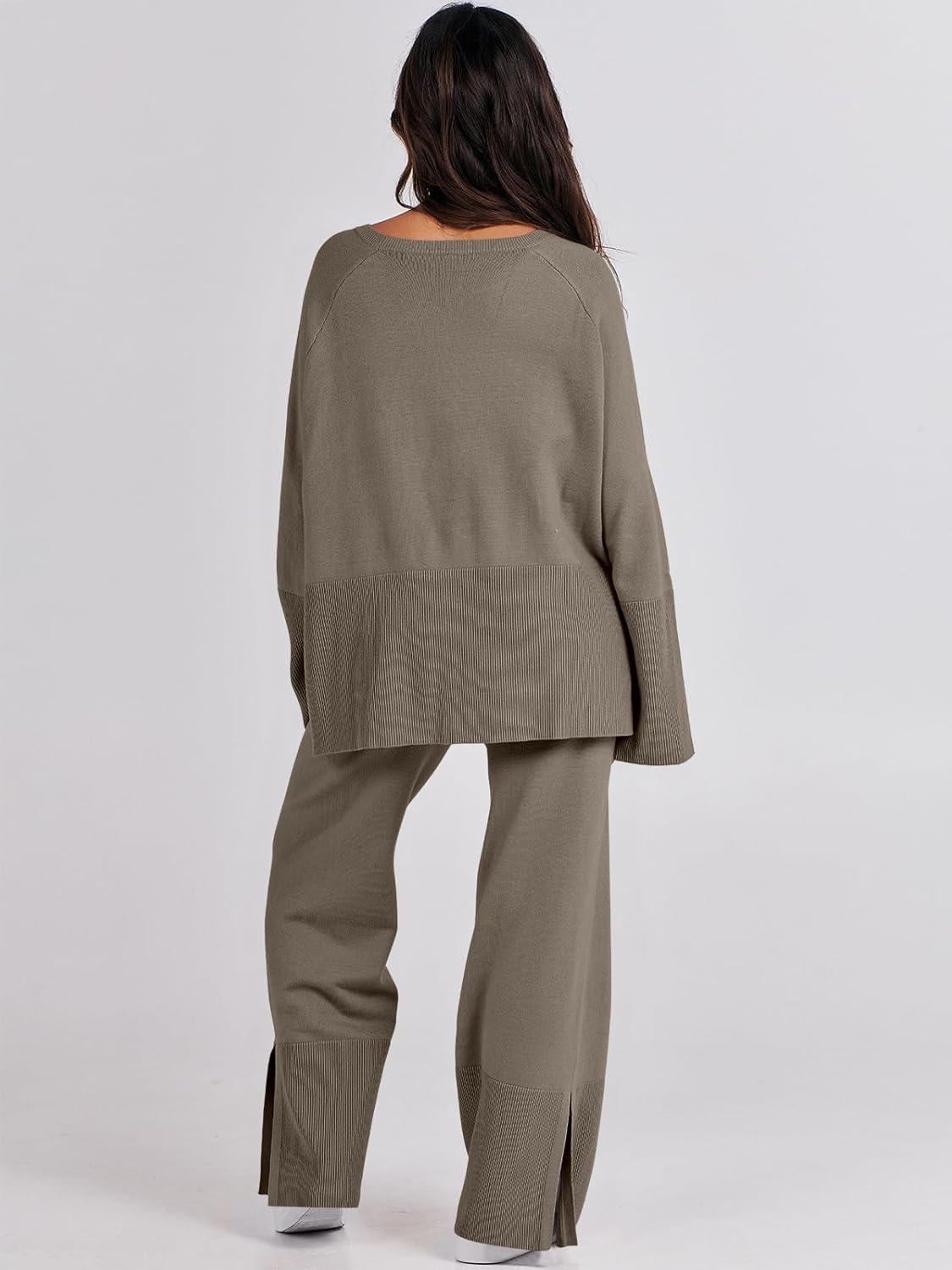 ANRABESS Womens 2 Piece Outfits Oversized Knit Sweater Set Wide Leg Pant Cozy Lounge Matching Pajama Sets 2025 Trendy Clothes(Grey Apricot)