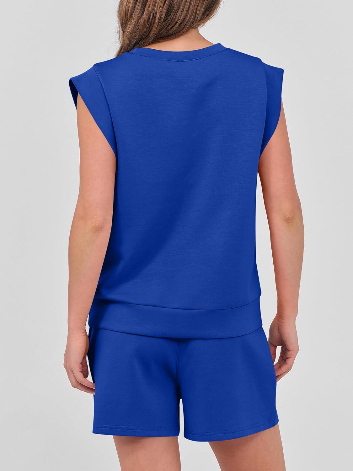 ANRABESS Womens 2 Piece Shorts Sets 2026 Summer Casual Cap Sleeve Top Matching Lounge Outfits Travel Beach Vacation Clothes(Royal Blue)