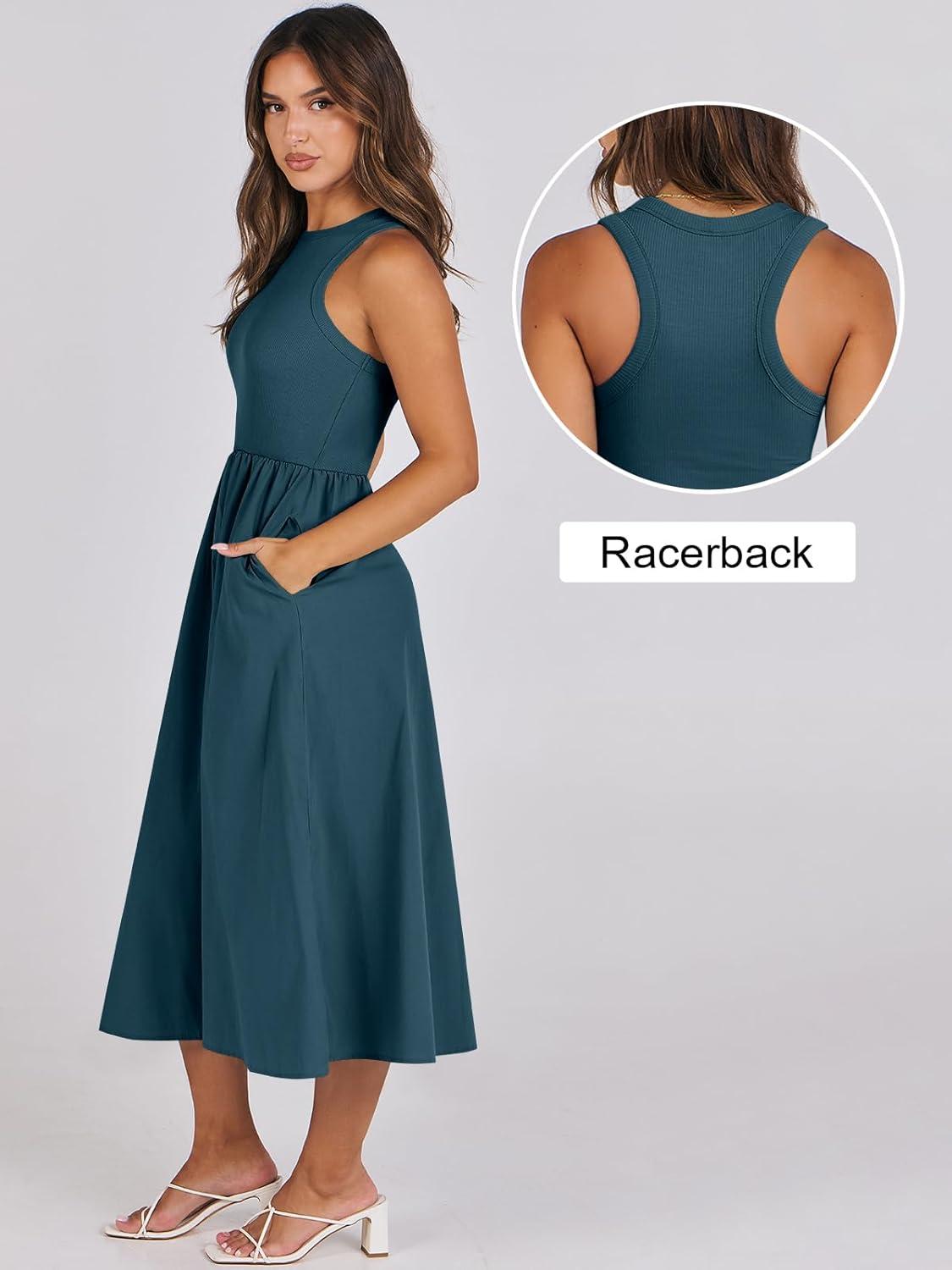 ANRABESS Womens 2026 Summer Casual Maxi Dress A line Tiered Flowy Short Sleeve Crewneck T Shirt Beach Travel Long Dresses(Cyan)
