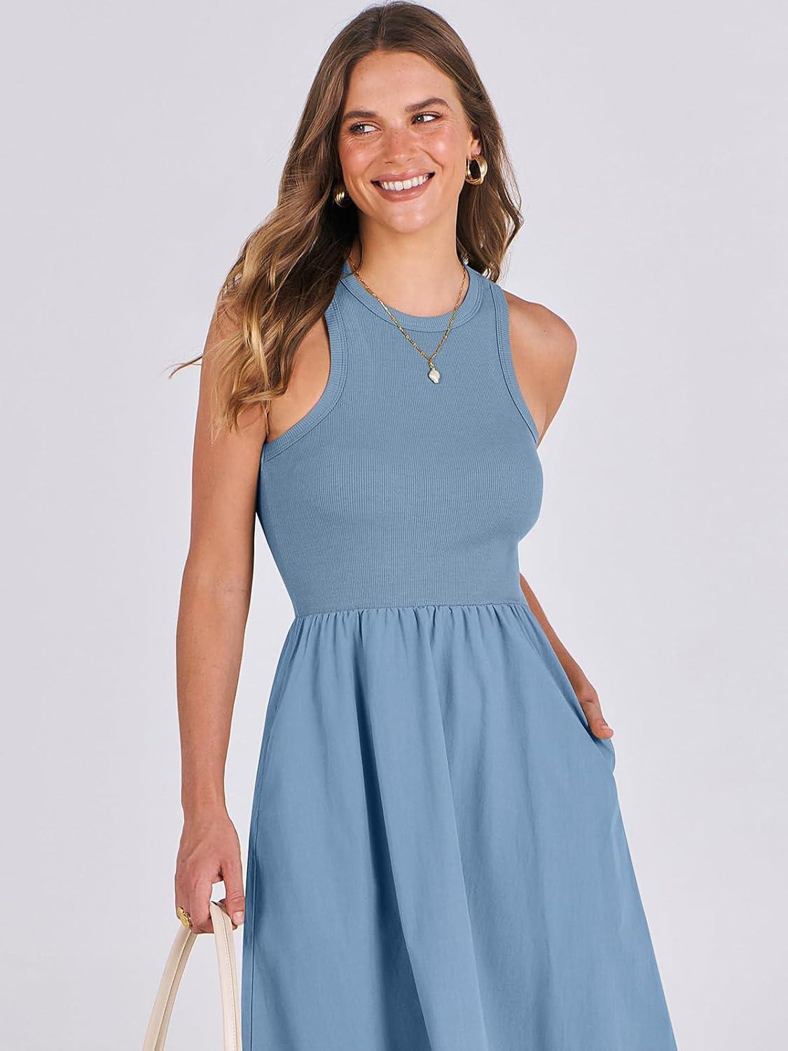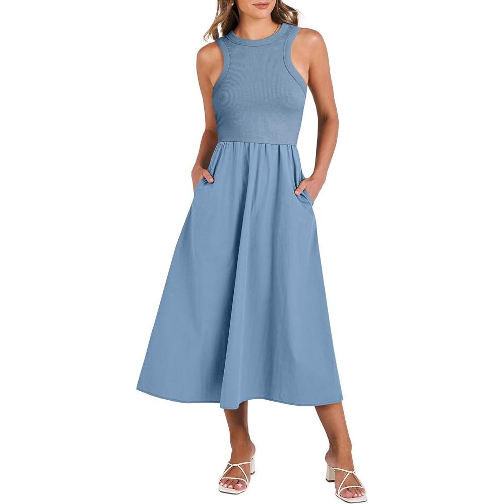 Be the first to review “ANRABESS Womens 2026 Summer Casual Maxi Dress A line Tiered Flowy Short Sleeve Crewneck T Shirt Beach Travel Long Dresses(Gray Blue)”