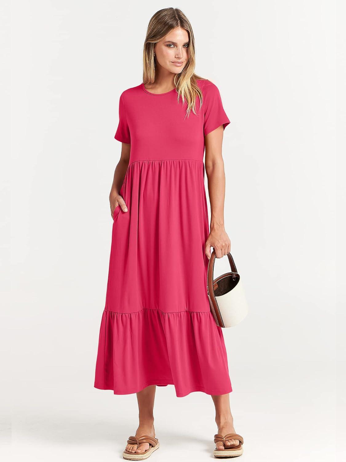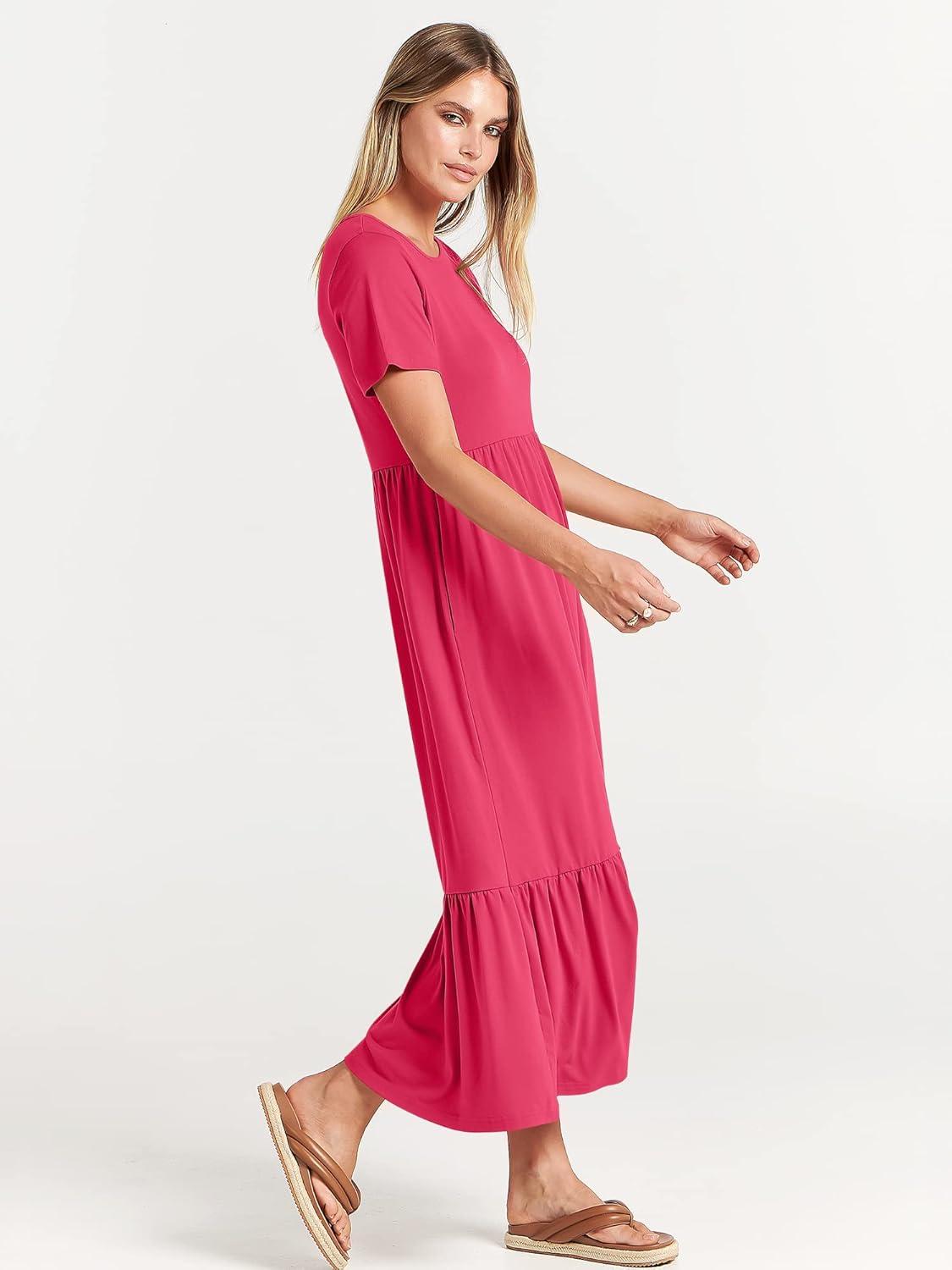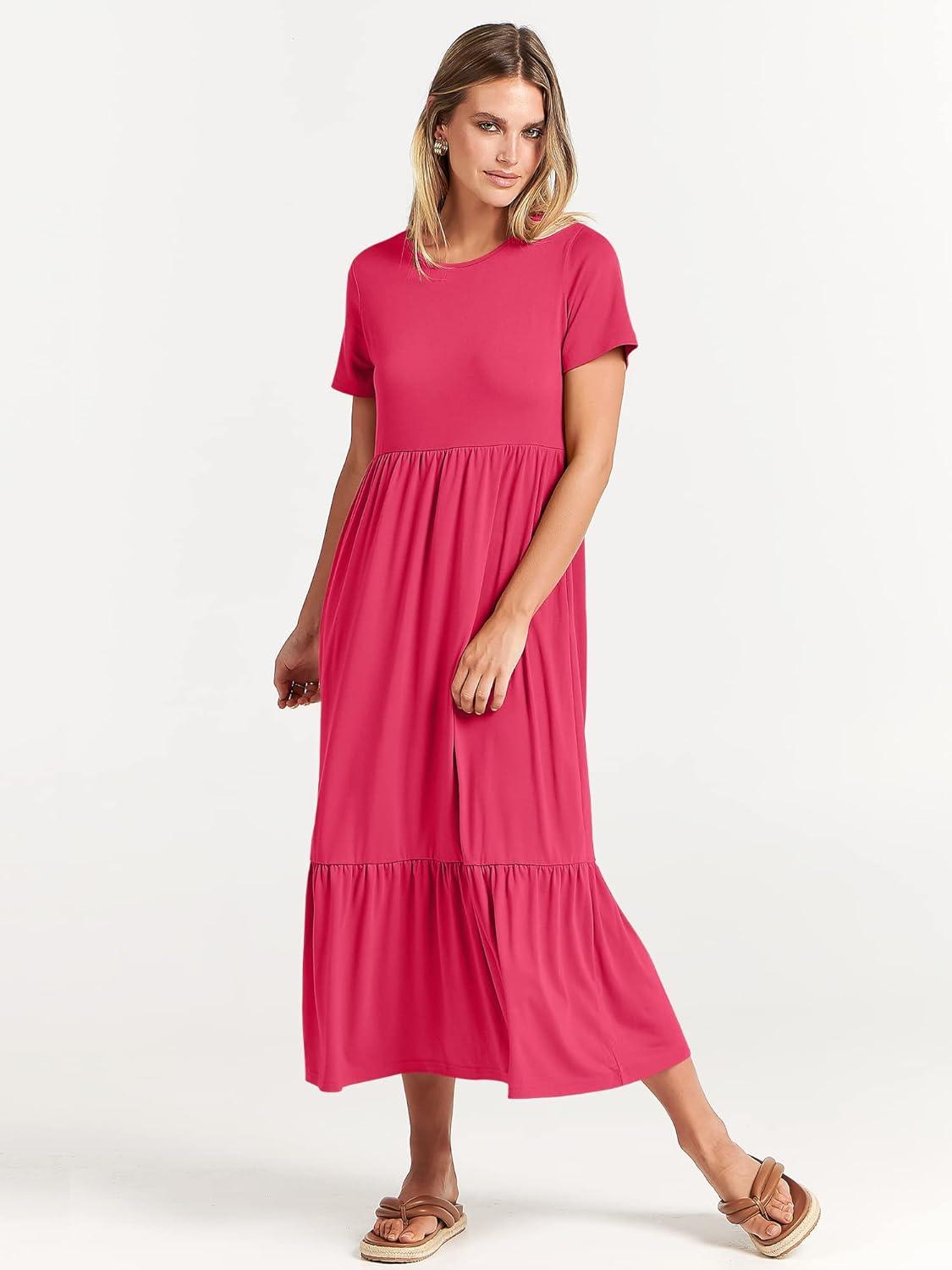 ANRABESS Womens 2026 Summer Casual Maxi Dress A line Tiered Flowy Short Sleeve Crewneck T Shirt Beach Travel Long Dresses(Forest)
