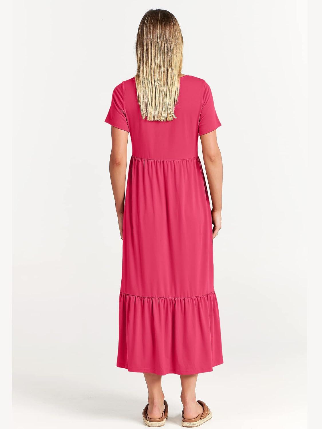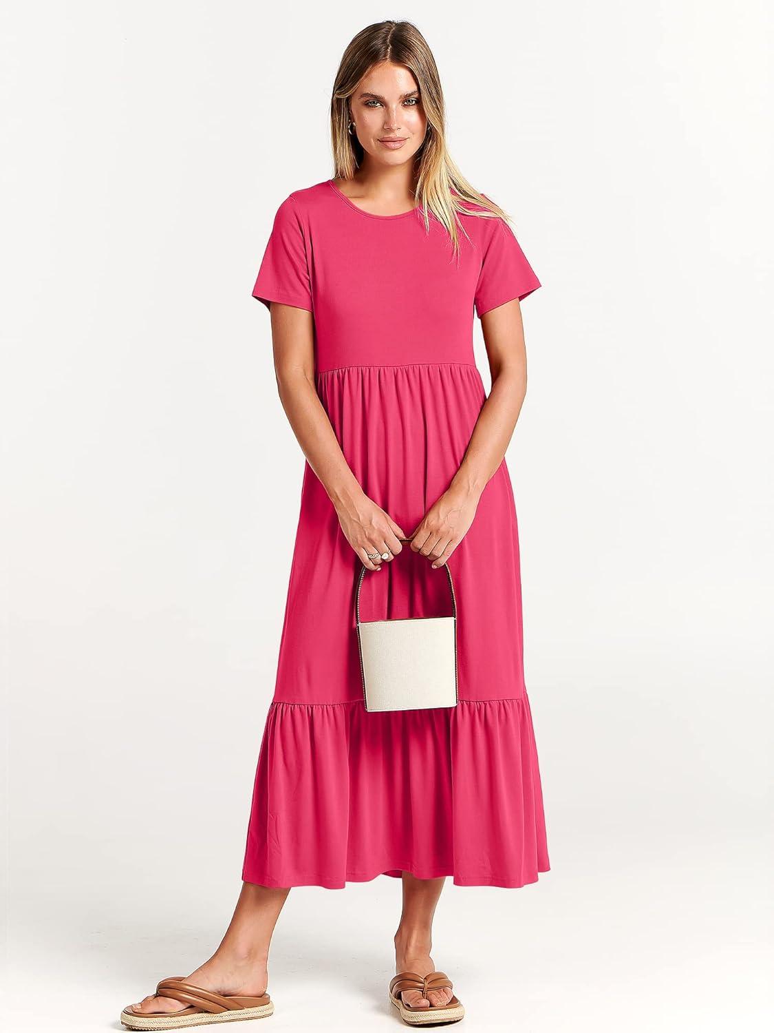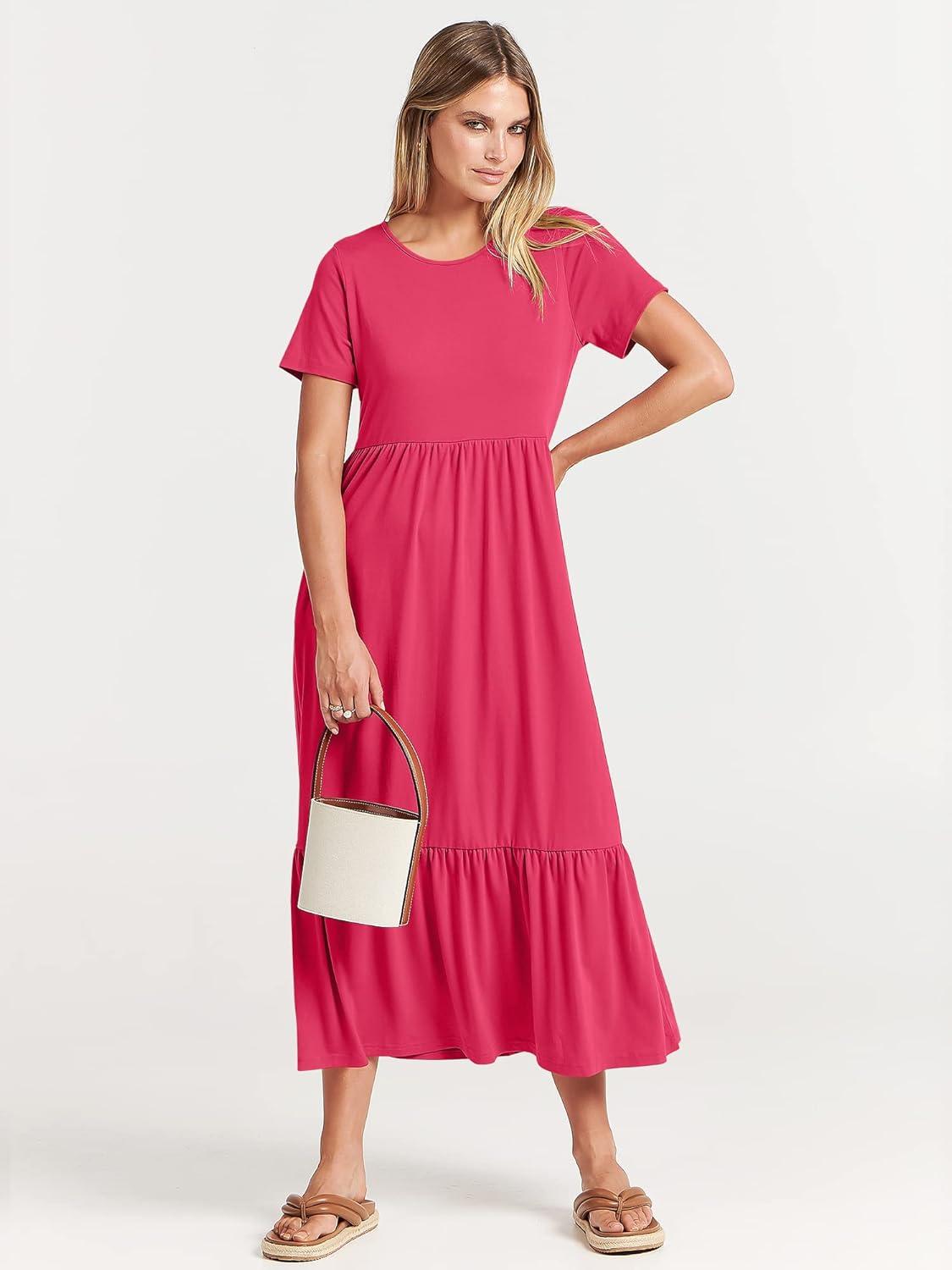 ANRABESS Womens 2026 Summer Casual Maxi Dress A line Tiered Flowy Short Sleeve Crewneck T Shirt Beach Travel Long Dresses(Forest)
