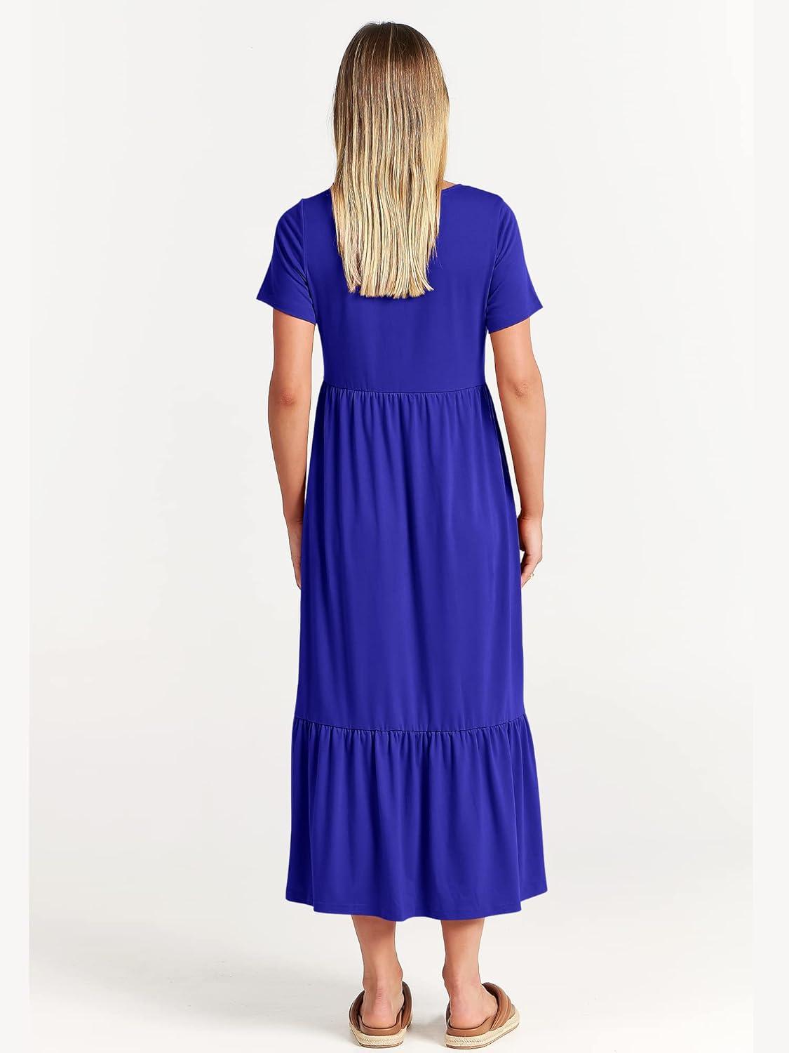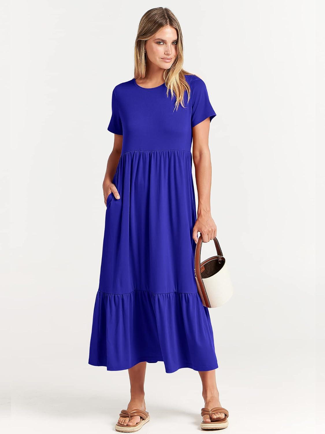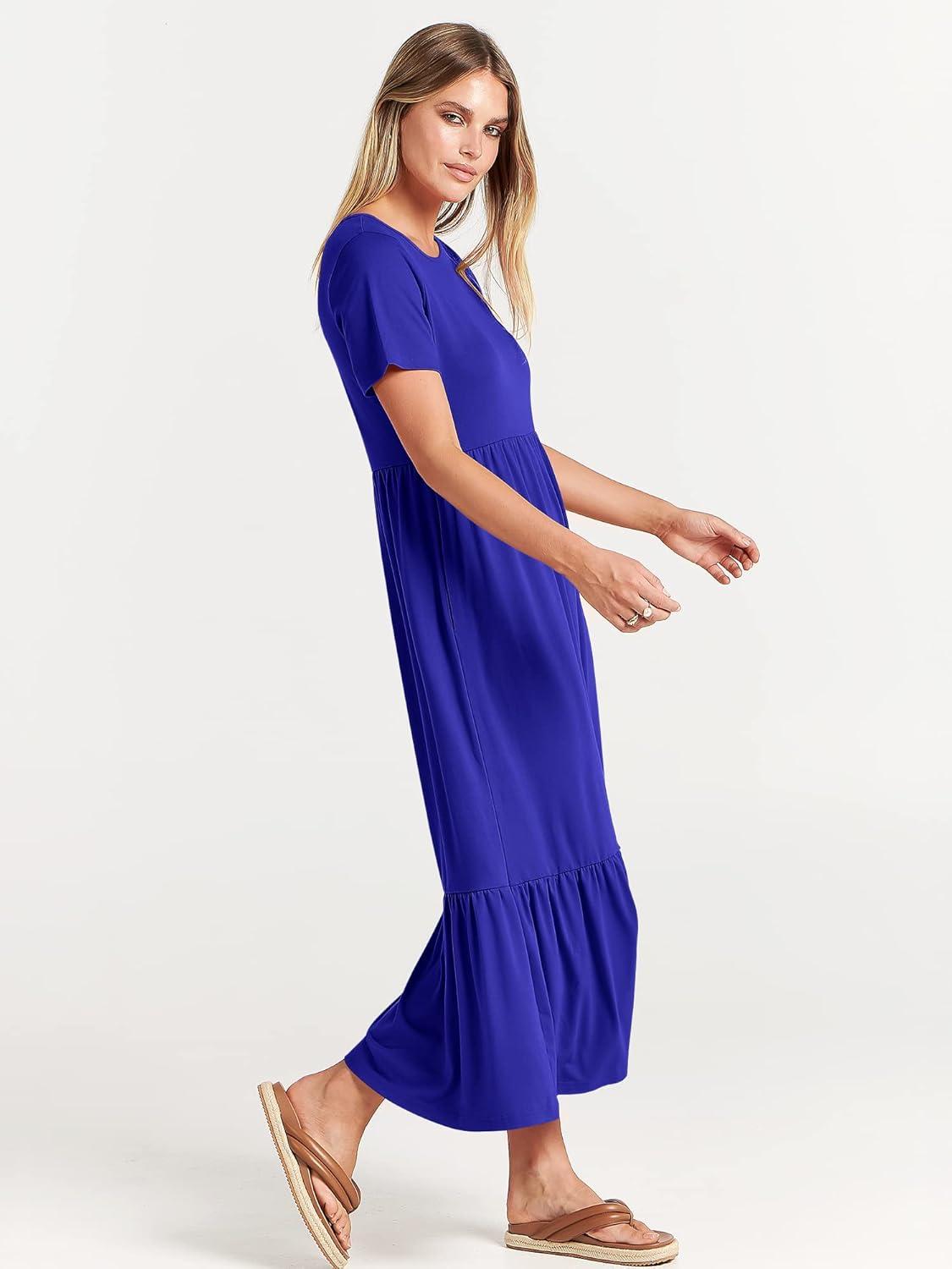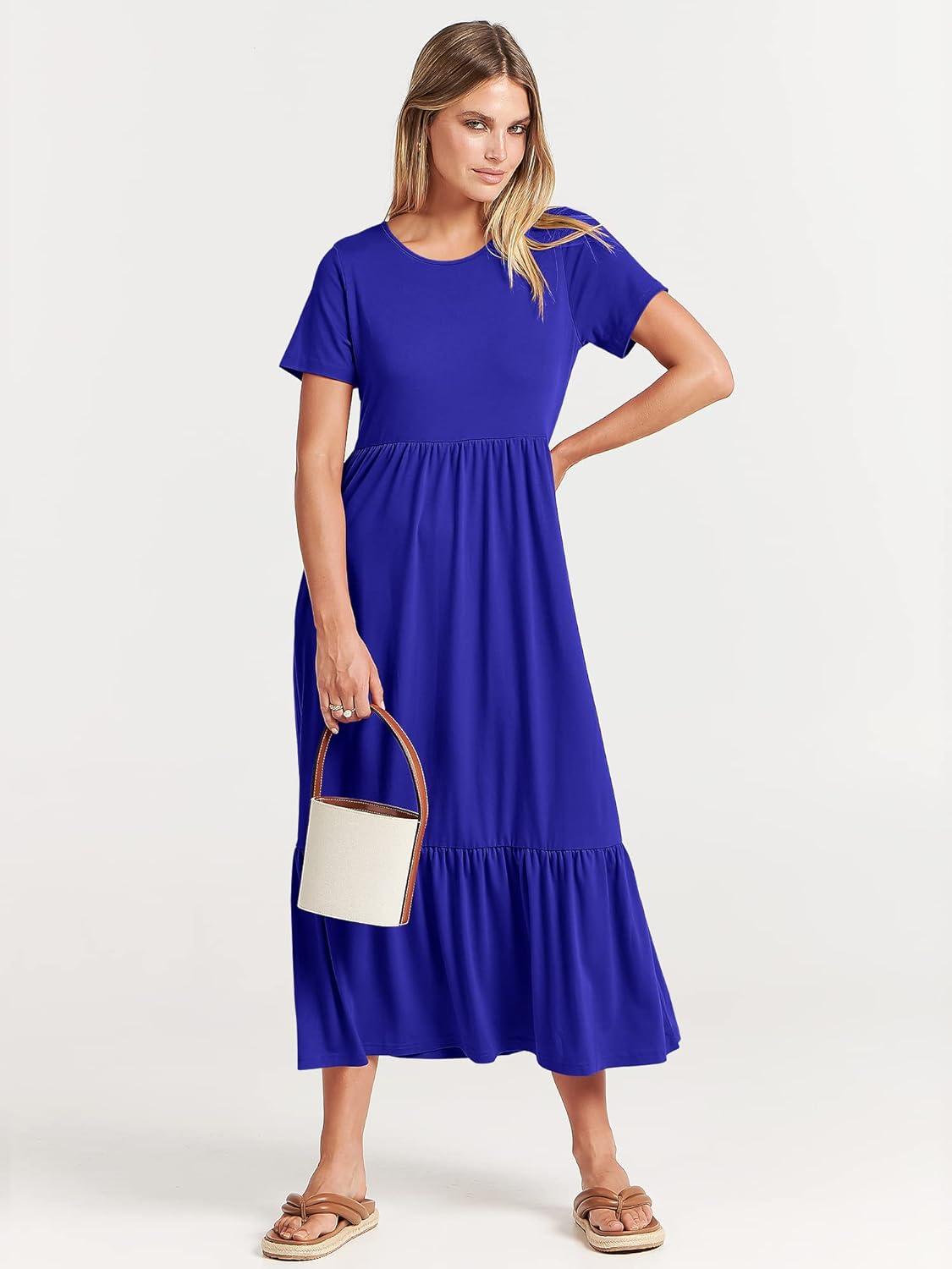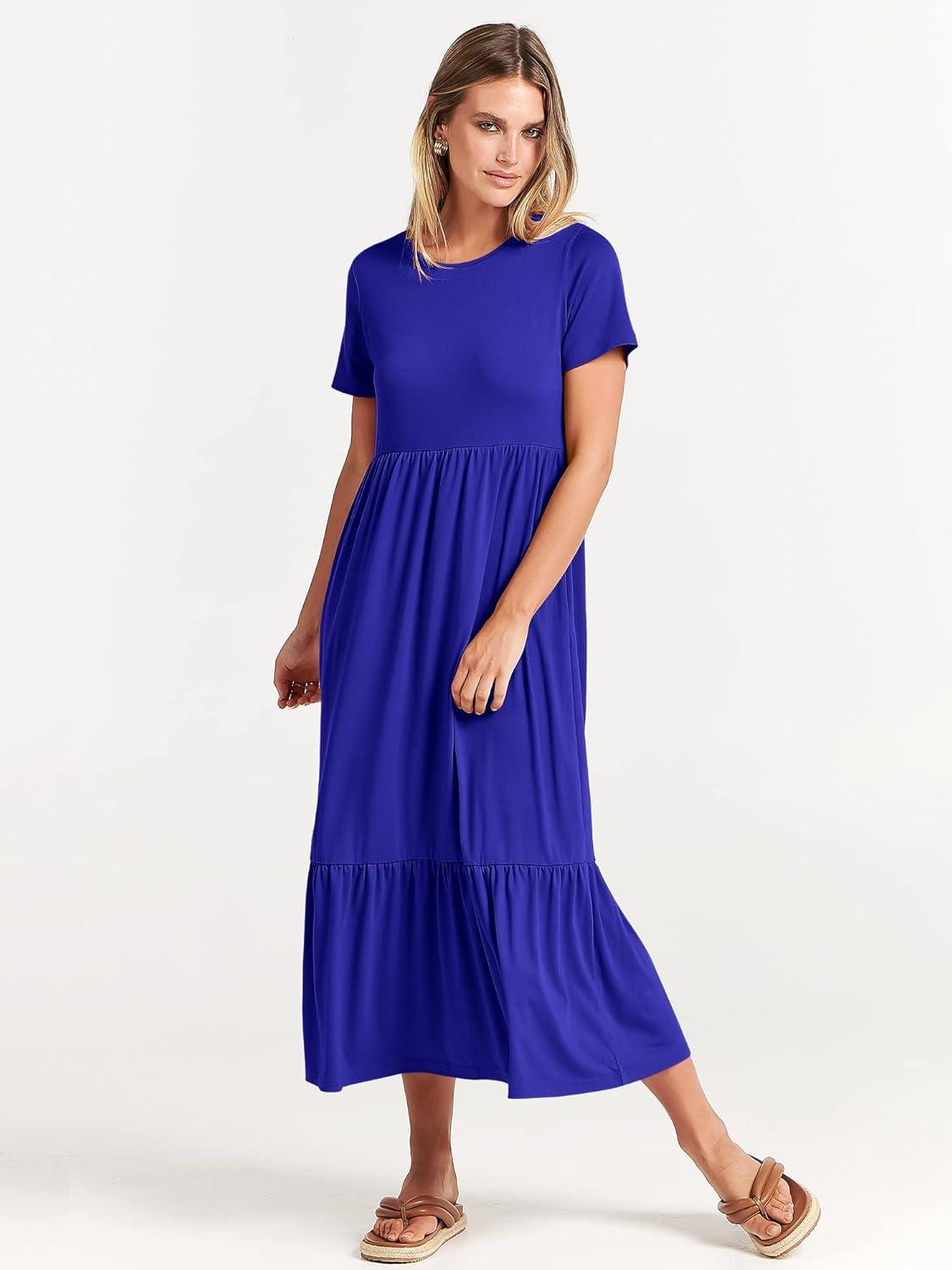 ANRABESS Womens 2026 Summer Casual Maxi Dress A line Tiered Flowy Short Sleeve Crewneck T Shirt Beach Travel Long Dresses(Royal Blue)