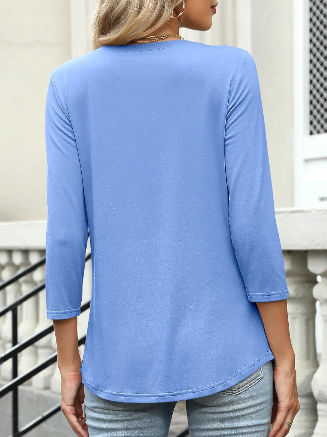 ANRABESS Womens 3/4 Length Sleeve Top V Neck Summer T-Shirts Basic Tee 2025 Fall Casual Loose Fit Tunic Shirts Work Blouse(Light Blue)